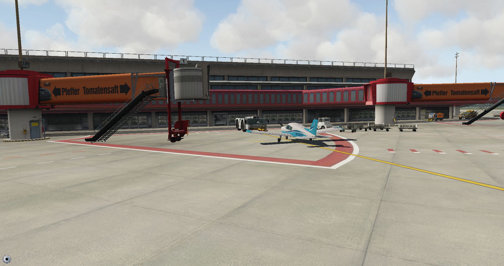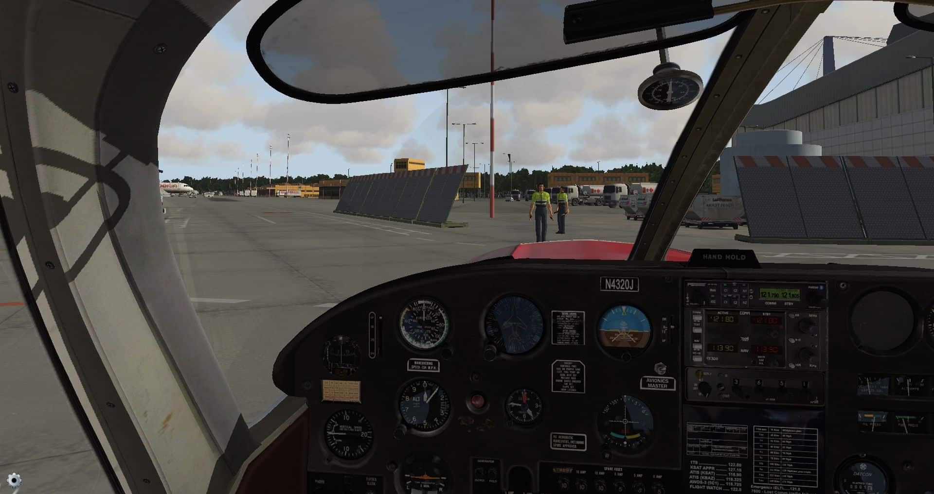 Eine weitere Besonderheit sind die Marshaller die wir inzwischen von vielen Flughäfen in der X-Plane Welt kennen. Die ganze Zeit stehen sie unmotiviert in der Gegend herum um bei ganz bestimmten Abständen ihre Arme zu heben.
