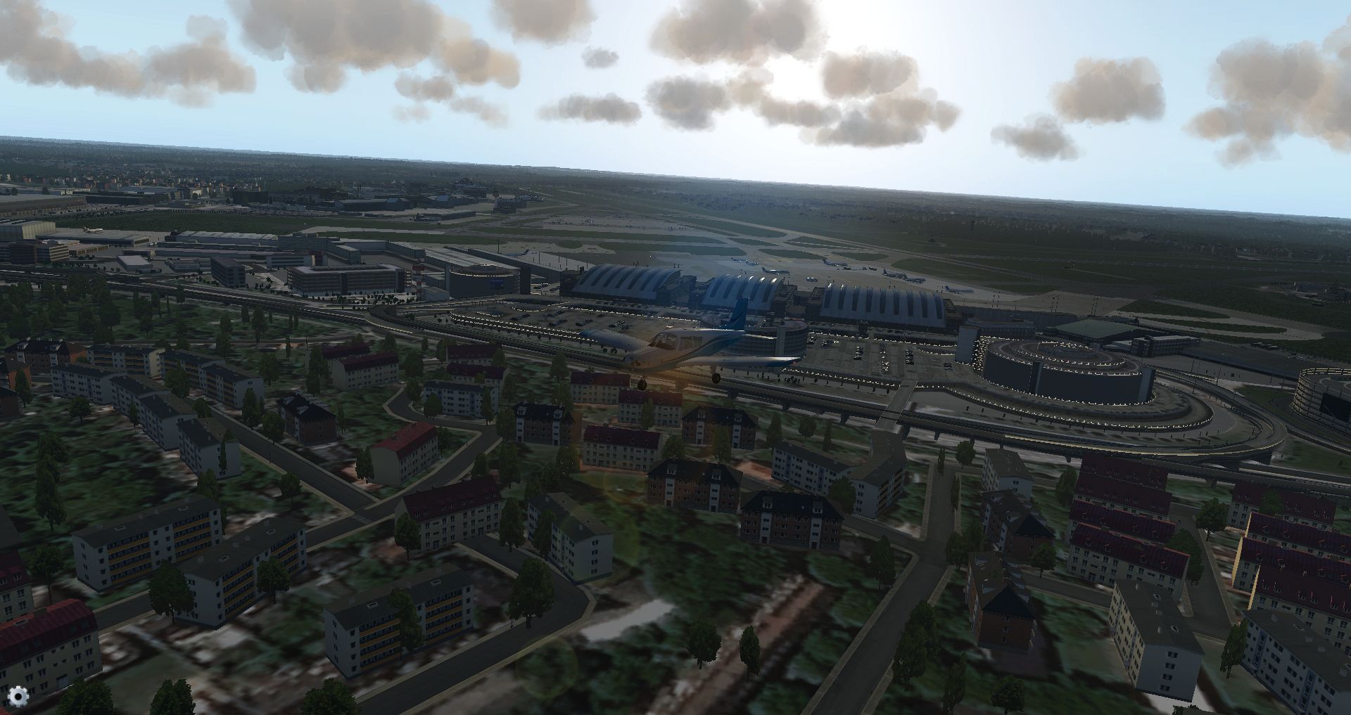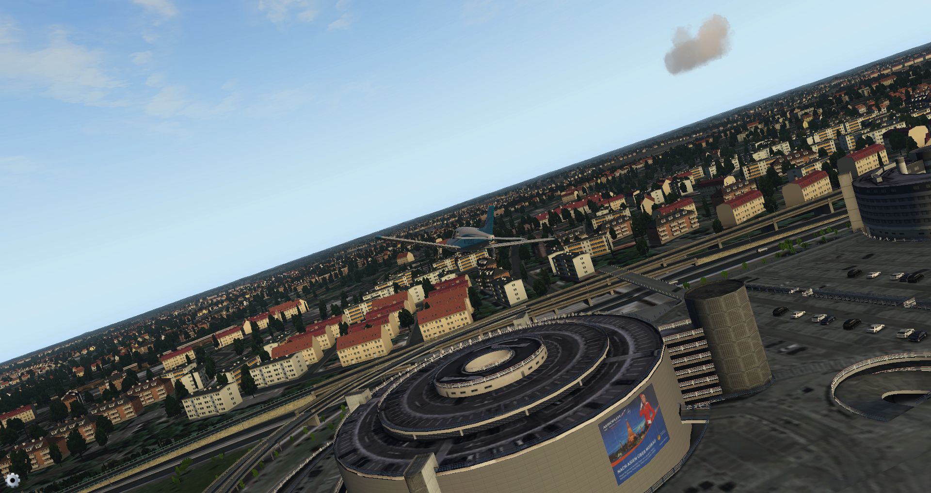 Wenn man mal davon absieht dass die Gebäude, die im Normalfall jeder Nutzer nur aus der Ferne sieht, etwas kastenartig wirken und das man auf den Bodentexturfotos die geparkten Fahrzeuge nicht mit 3D Objekten überdeckt hat (was Rechenzeit kosten würde) sieht man auch hier keine dunklen Geheimnisse.