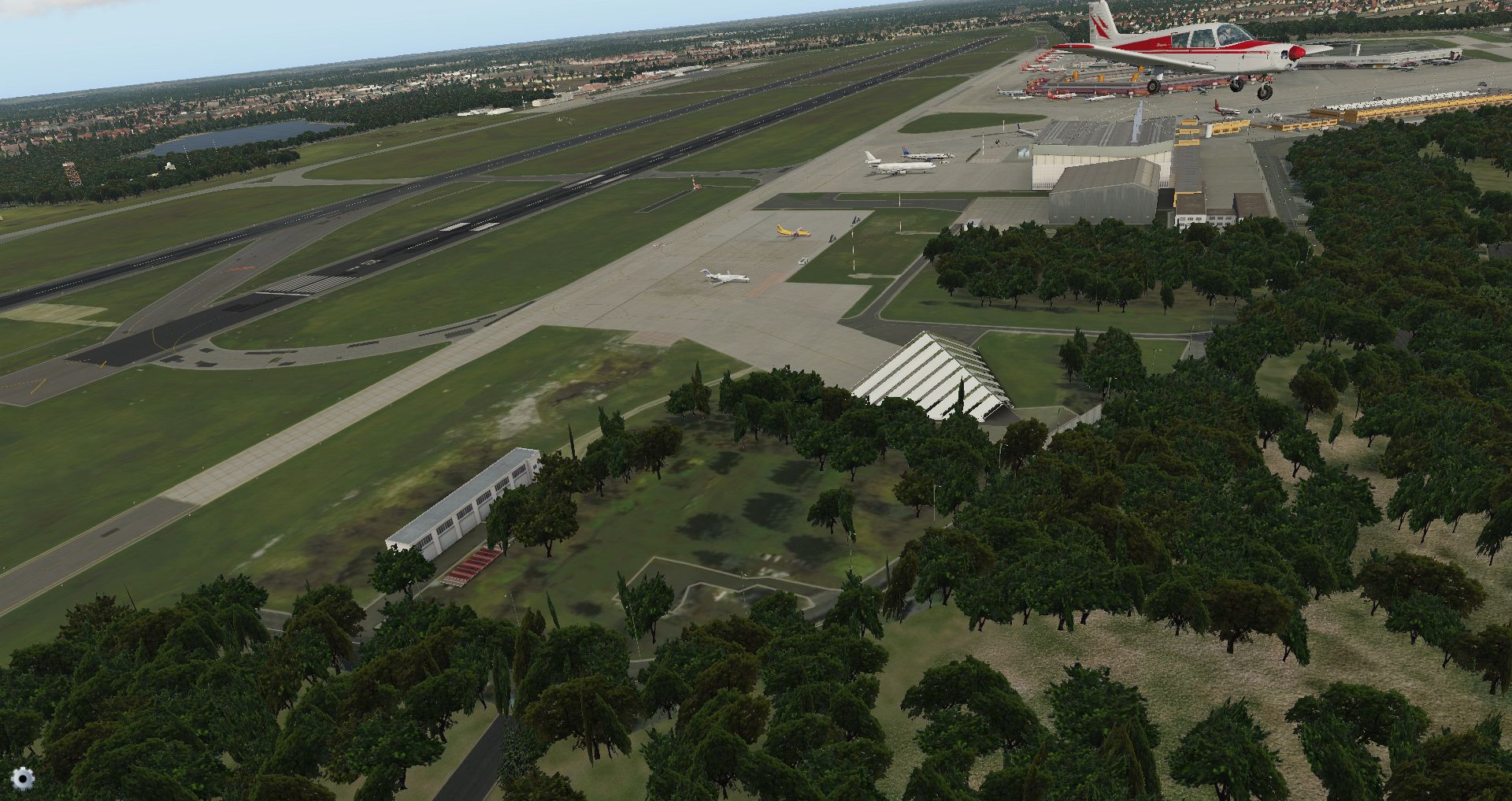Dabei gibt es immer wieder Übungseinsätze der Flughafenfeuerwehr, die Hangartore können mittels Plug-in geöffnet und geschlossen werden. Außerdem kann man wahlweise auf Wintertexturen dazu schalten. Ganz zu schweigen von Autogates.