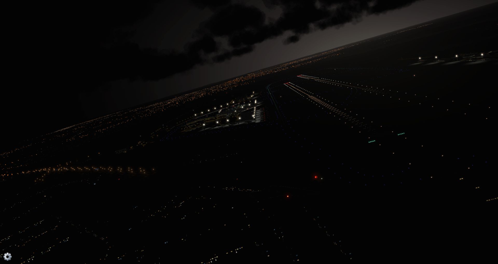 Wir dunkeln ab und halten bei einsetzender Dämmerung auf das Terminal zu: