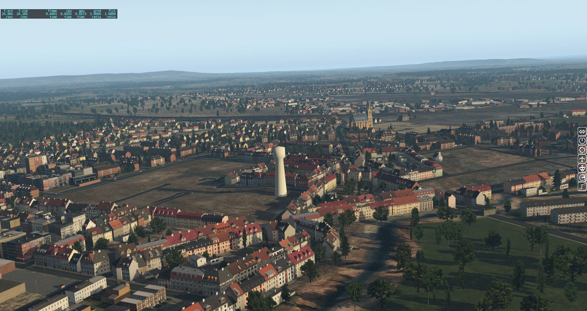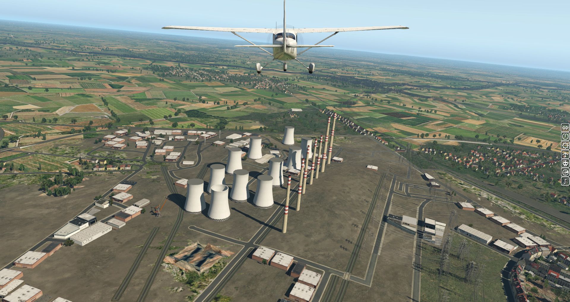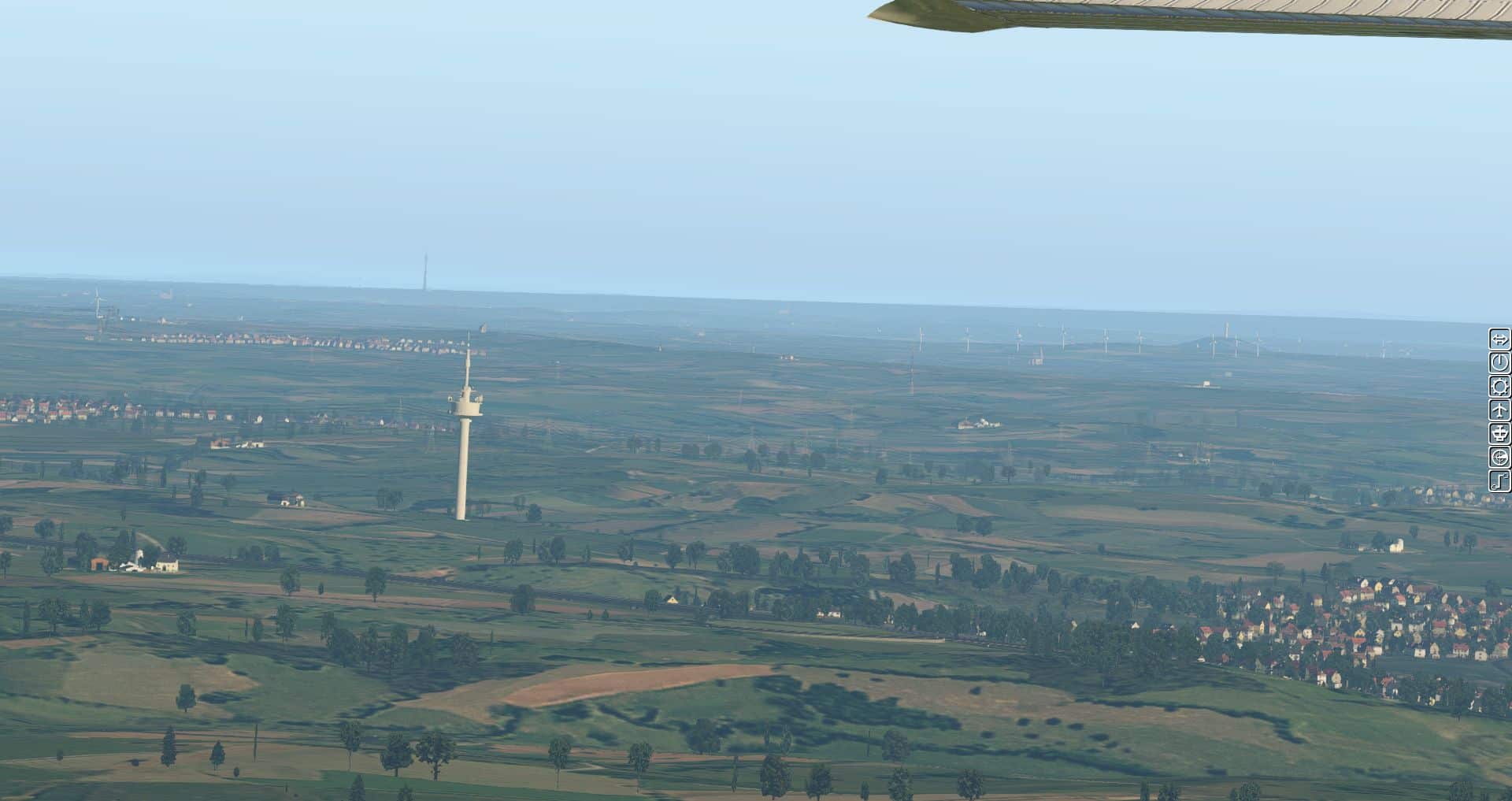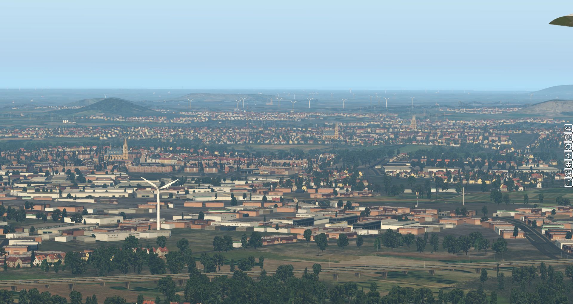 Es ist weitaus performanter diese Gebäude dem AutoGen zu überlassen und statt dessen die typischen Wegpunkte, wie Kirchen, Funktürme, Windkraftanlagen und große Schornsteine und Kühltürme zu erfassen und an den richtigen Stellen in der Landschaft zu platzieren. Das Ergebnis für Teile von Deutschland sehen wir hier.
