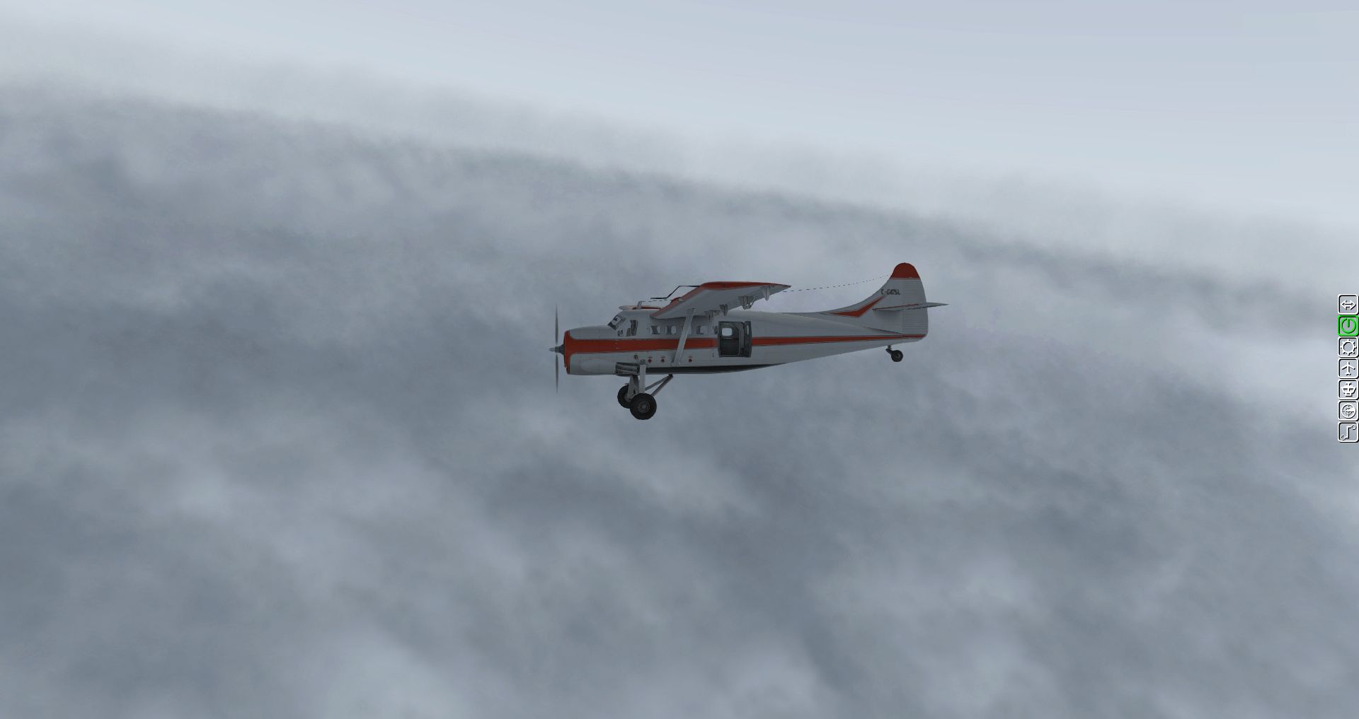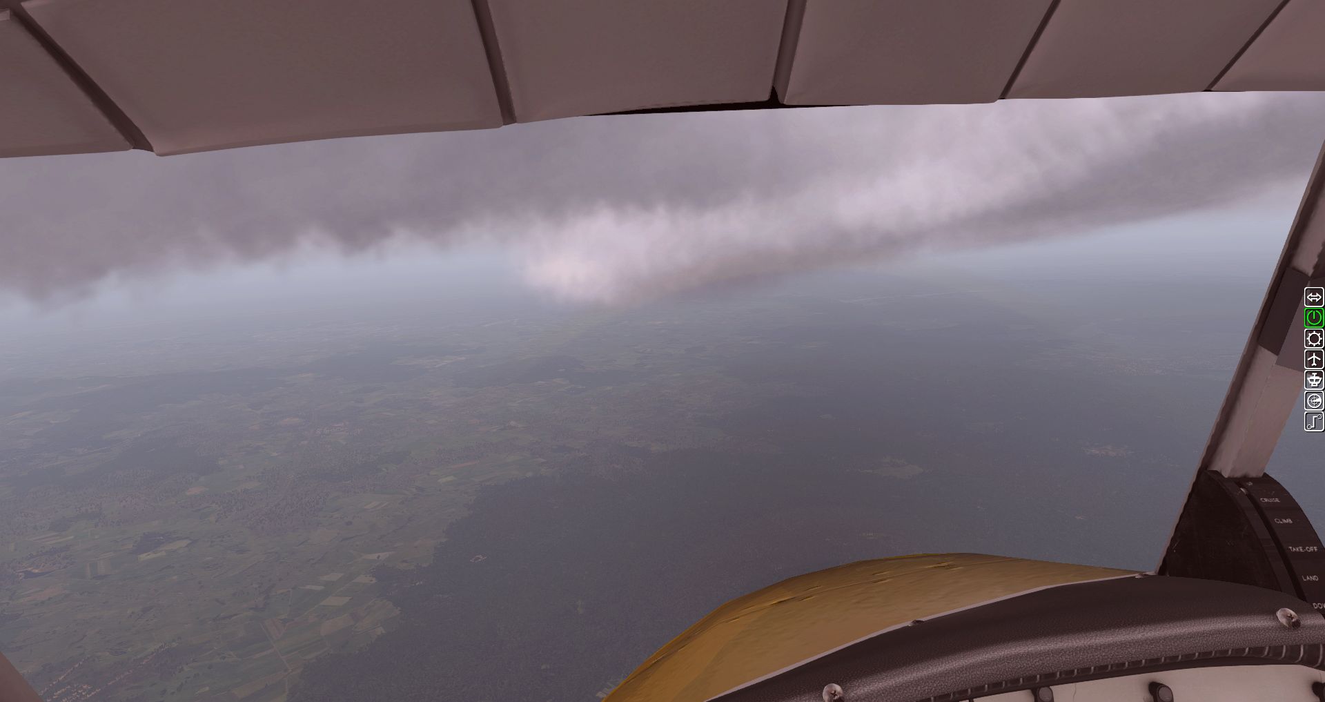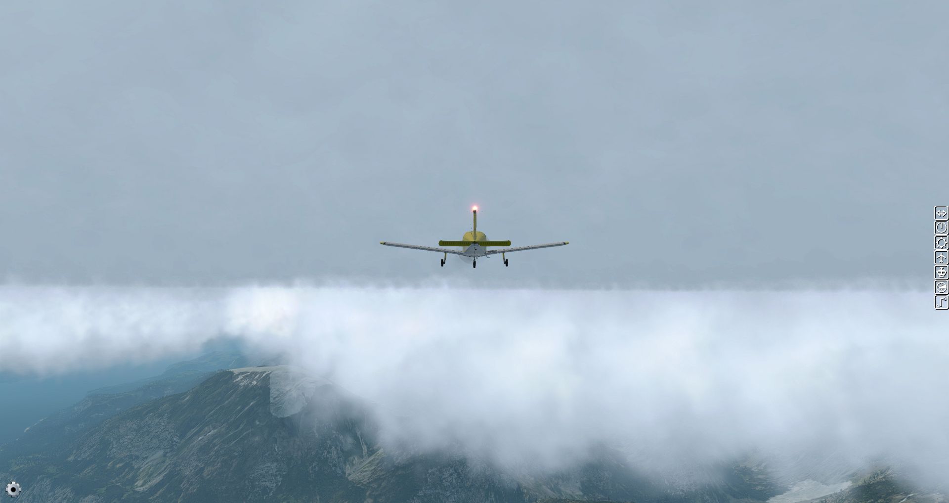 Unterhalb der Wolken ein Meisterwerk, in den Wolken ein wenig Profillos und oberhalb der Wolken etwas rätselhaft. Hier macht sich immer noch das Fehlen einer vernünftigen Wetterengine bemerkbar.