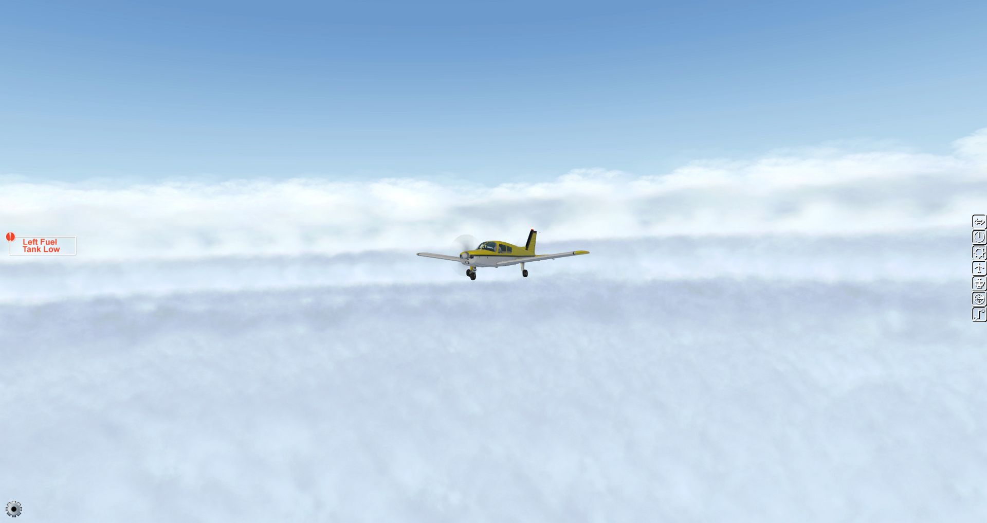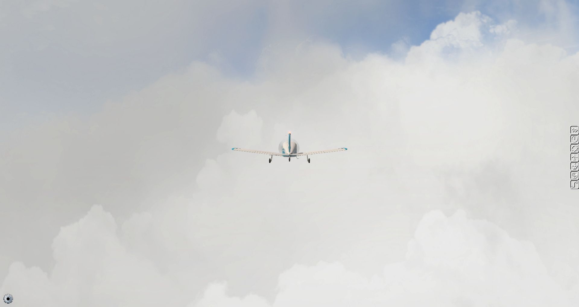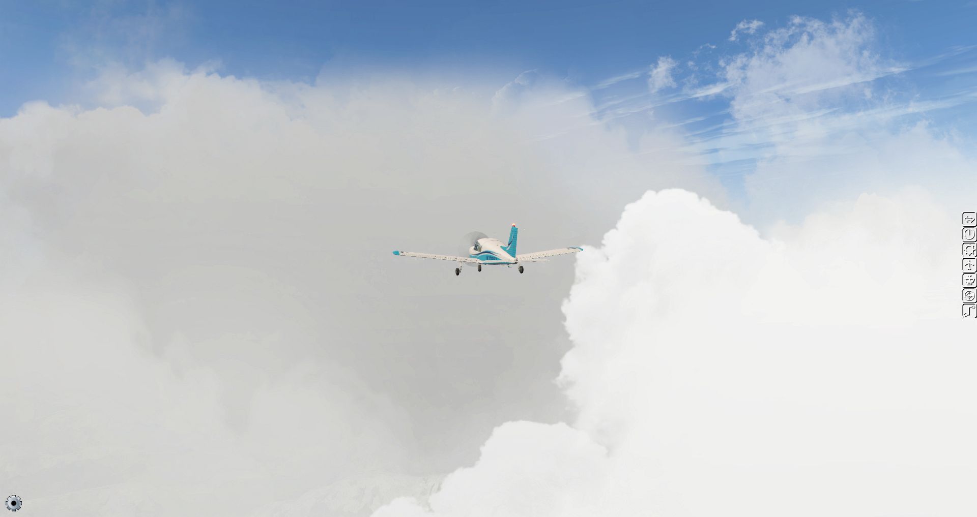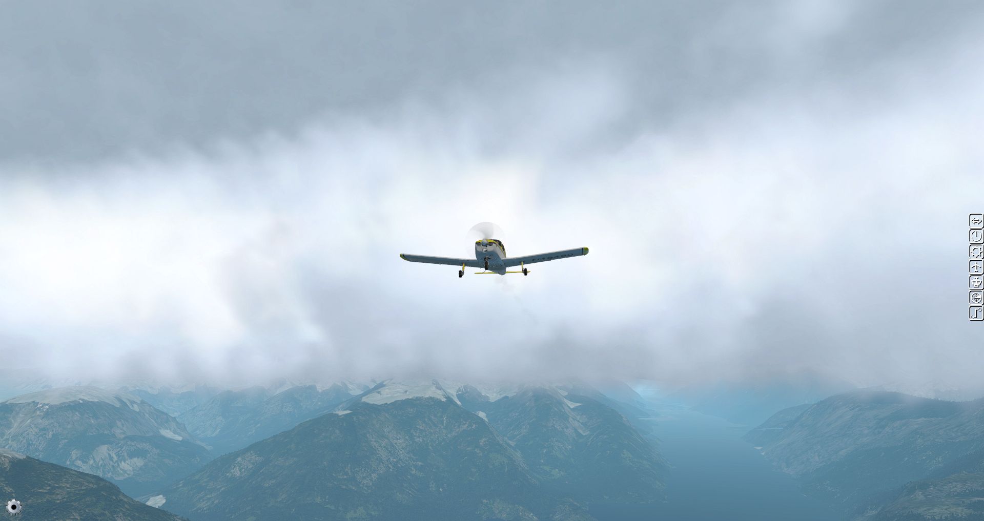 Unterhalb der Wolken ein Meisterwerk, in den Wolken ein wenig Profillos und oberhalb der Wolken etwas rätselhaft. Hier macht sich immer noch das Fehlen einer vernünftigen Wetterengine bemerkbar.