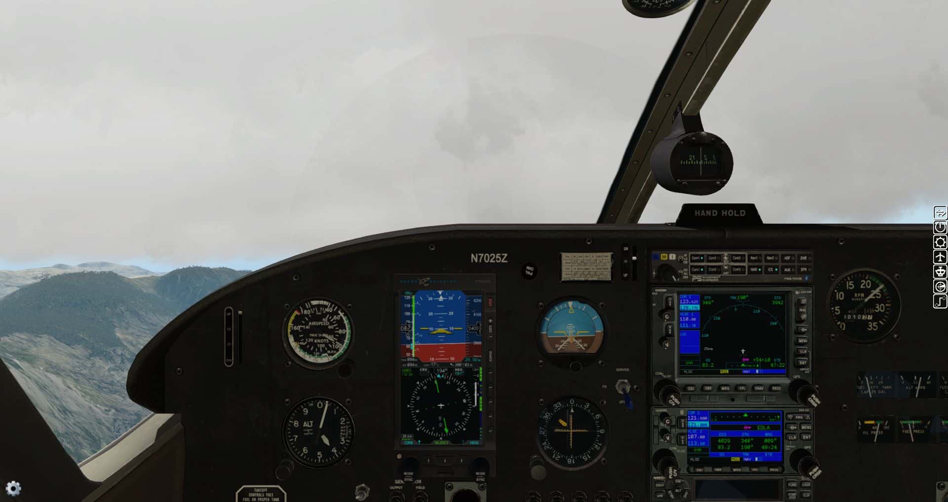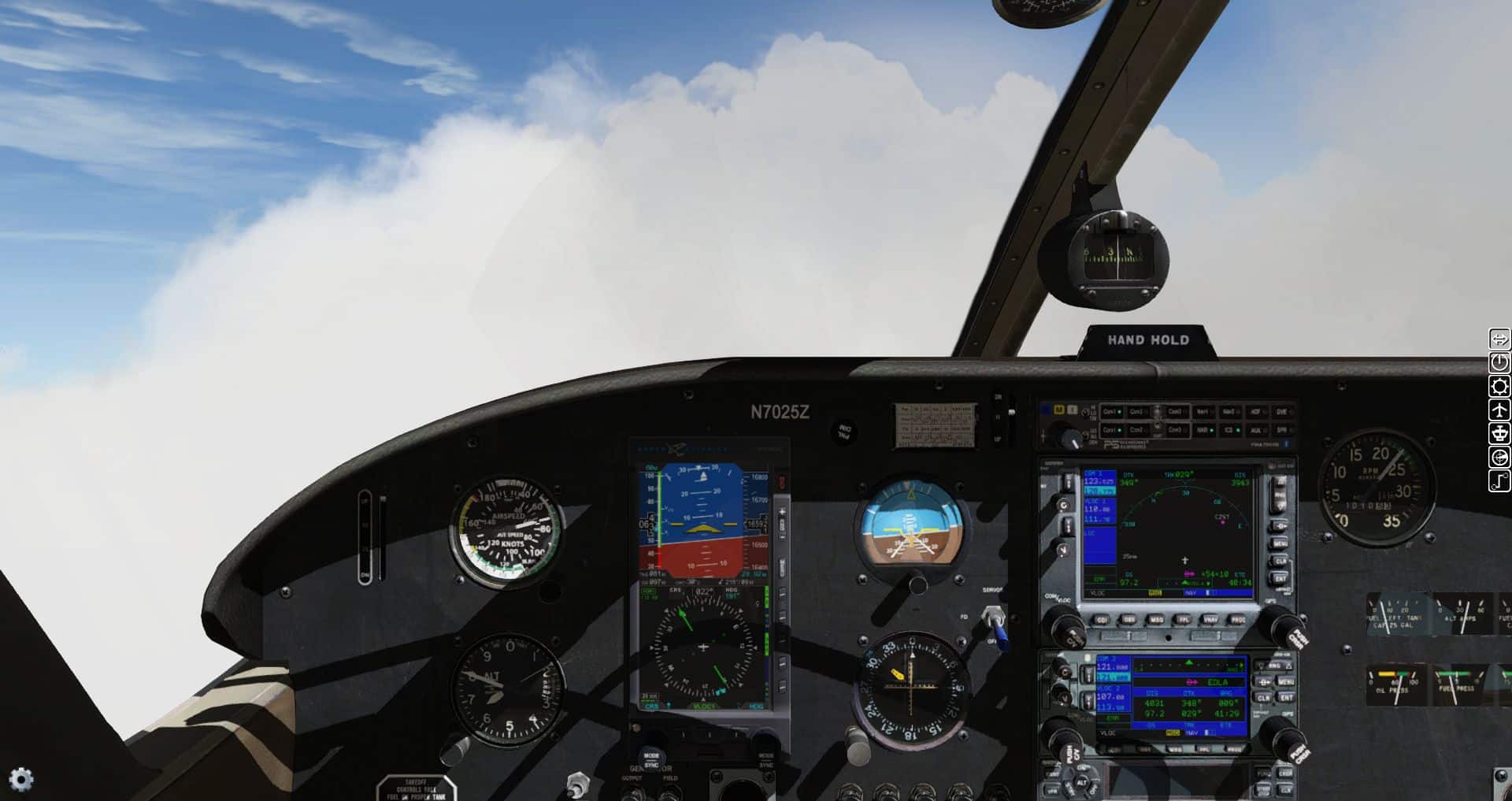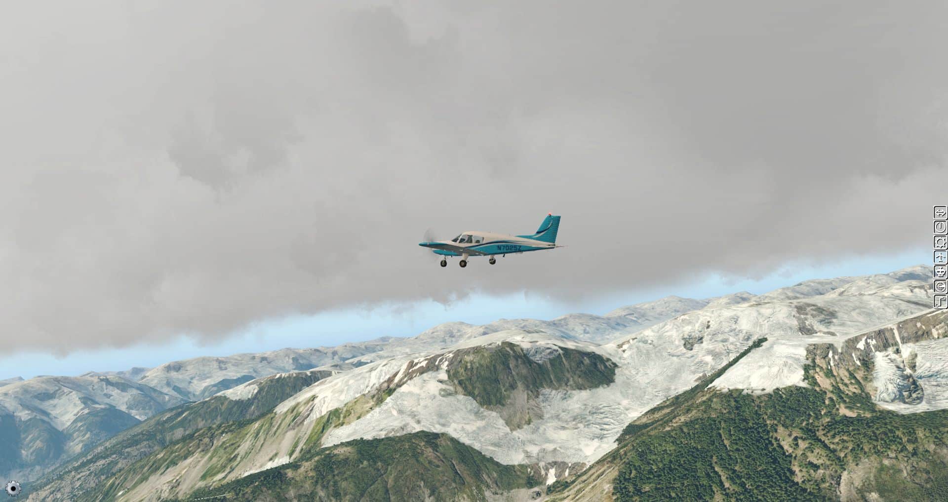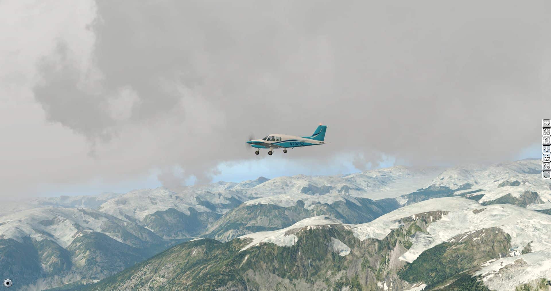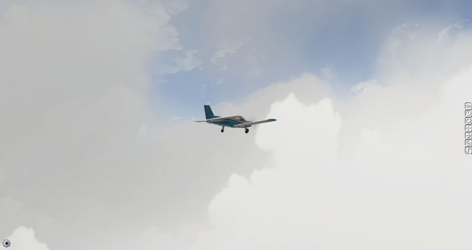 Unterhalb der Wolken kann Sky Maxx Pro in dieser Situation einfach nicht mithalten. Außerdem war es sich sehr unsicher in Bezug auf die Ausleuchtung. In den Wolken gab es allerdings wesentlich mehr Struktur. Und es gab einen weiteren wesentlichen Unterschied. Bei den Defaullt Wolken endete die Wolkendecke genau bei 10.000 Fuß, der Obergrenze des Metar Systems. In Sky Maxx Pro erreichten wir in 16.500 Fuß (Oberhalb der Dienstgipfelhöhe der Cherokee, aber das sind die Segnungen eines X-Plane 10 Flugmodelles in X-Plane 11) gerade mal die Wolkenobergrenze.