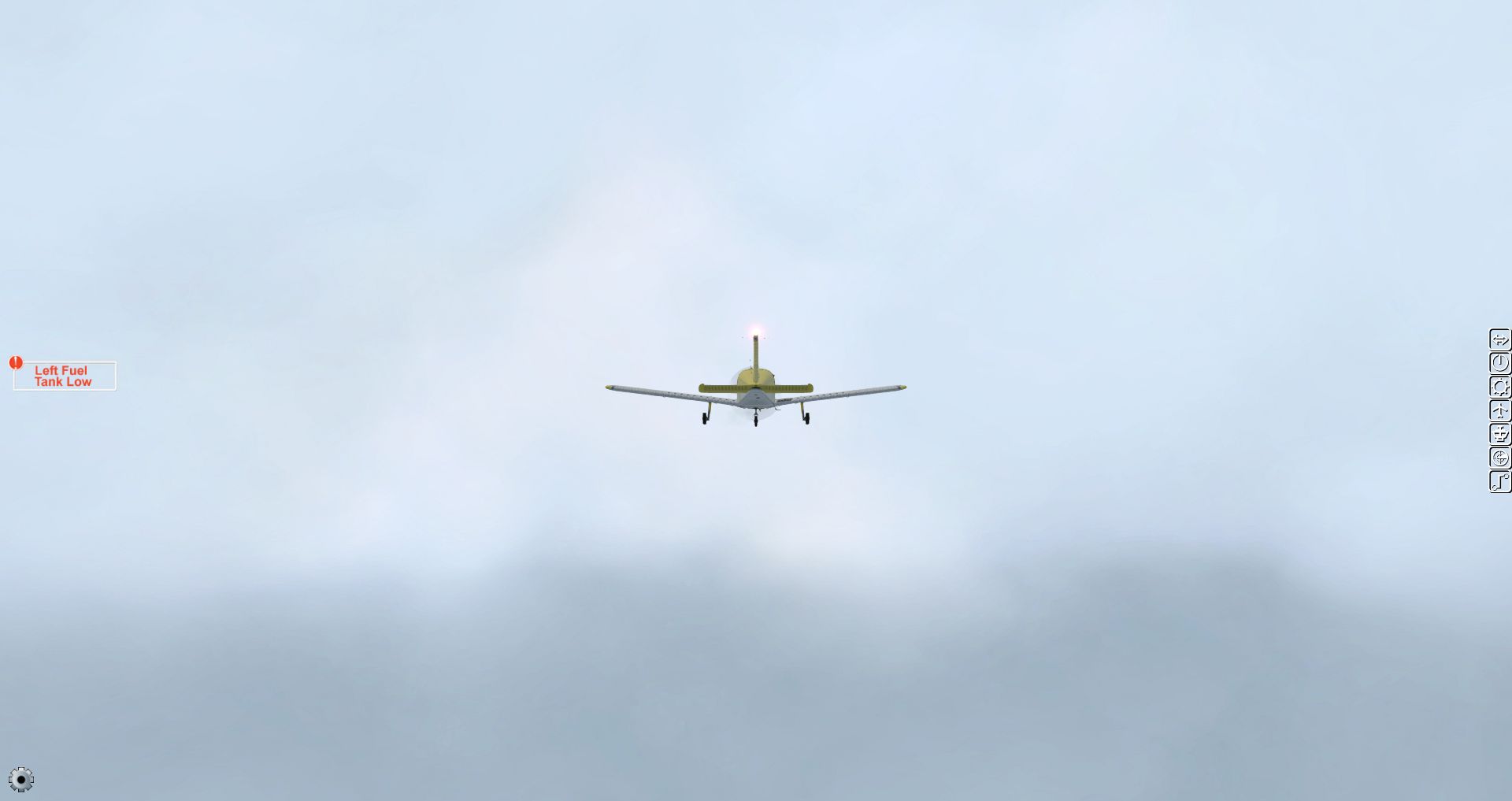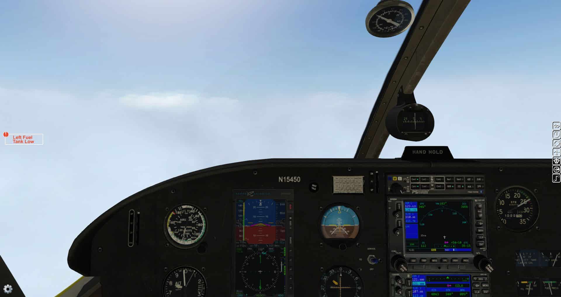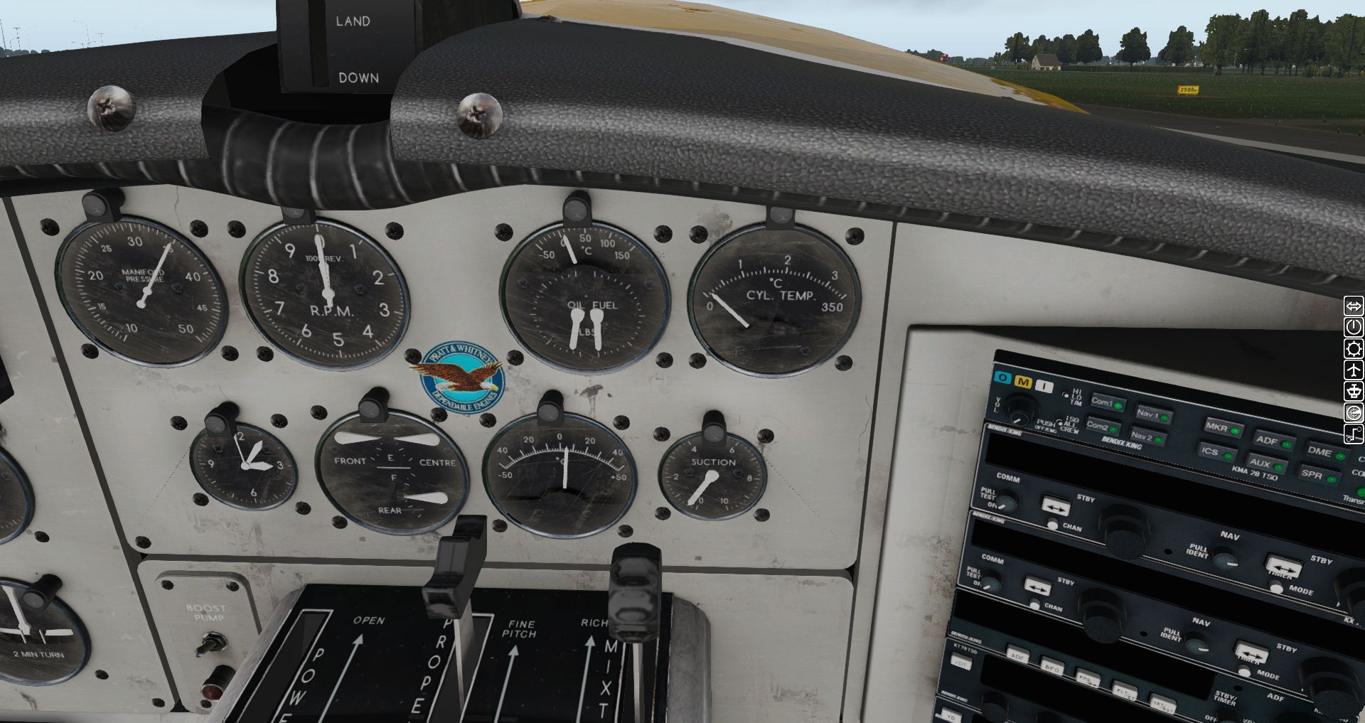 Wenn man an einer kleinen Gemeinheit vorbeikommt. Hinter dem zentralen Stamm des Yoke befindet sich ein rotes Drehrad. Dieses muss man zunächst drehen um die Treibstoffzufuhr einzuschalten.