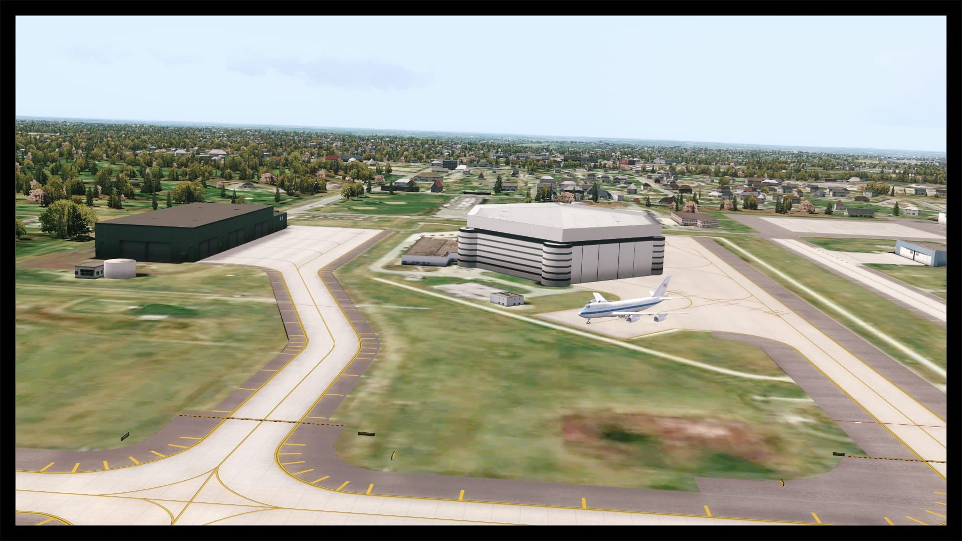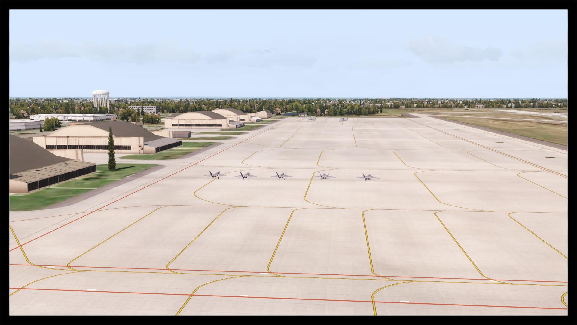 Los geht es am KVKX Potomac Airfield in Richtung Osten um dann nach kurzer Zeit nach Nord- Osten in Richtung Joint Base Andrews abzudrehen. Die Bezeichnung „Lite-Umsetzung“ trifft es zumindest beim Potomac Airfield und beim Washington Executive Airport auf den Kopf. Eigentlich kann man hier nicht viel schreiben, denn Drzewiecki hat lediglich ein paar statische Flieger und ein paar Hangar positioniert. Als Start oder Endpunkt laden sie damit nicht wirklich ein.