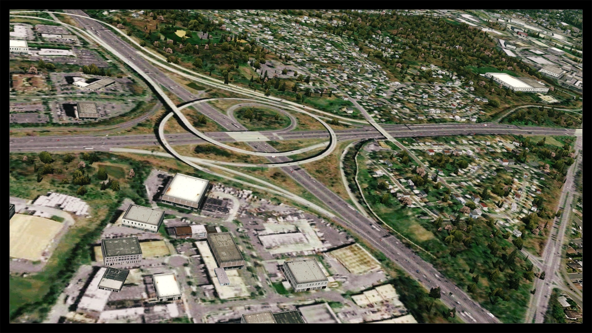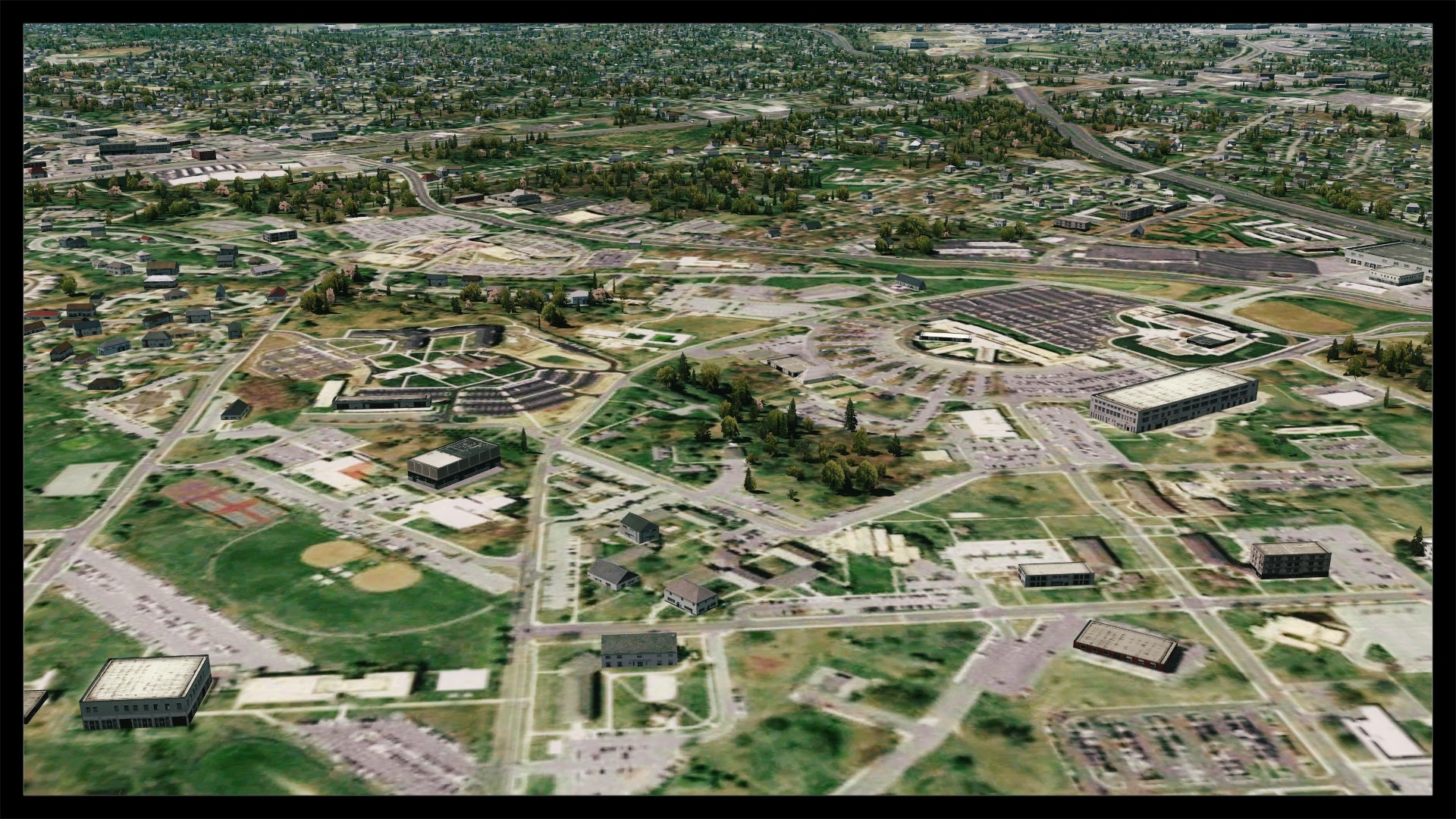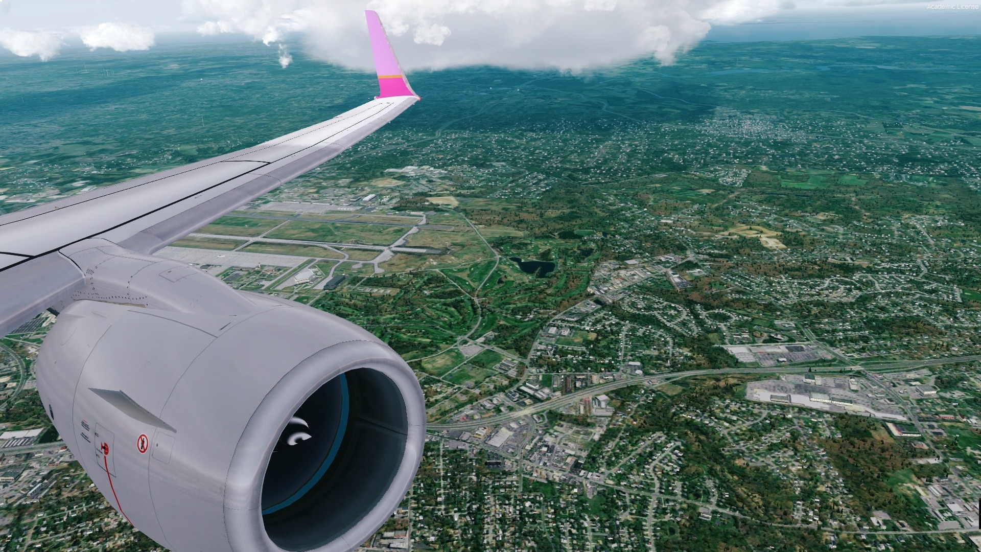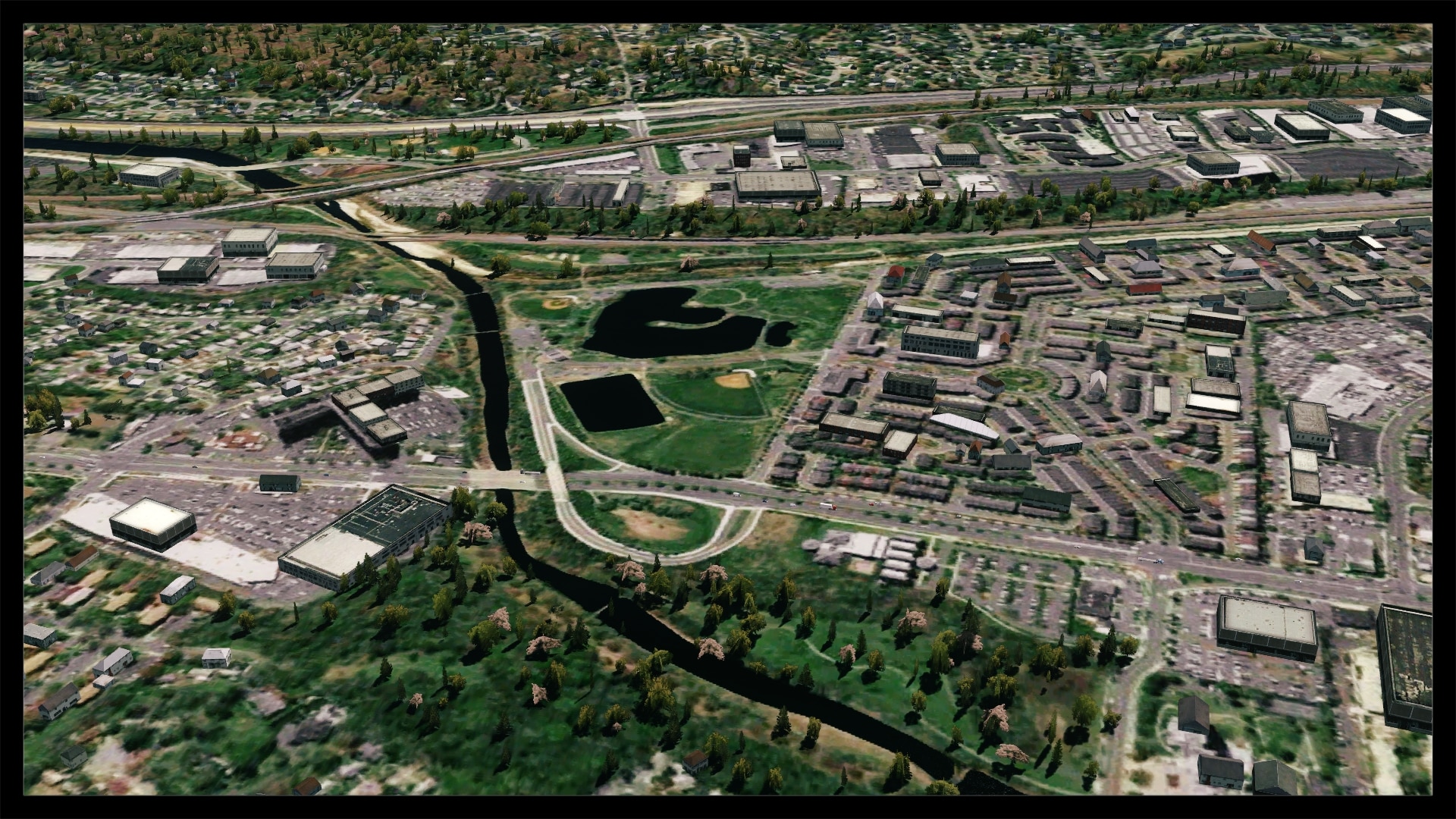 Auf dem Weg zum Air Force One Flugplatz, denn diese ist auf der Joint Base Andrews stationiert, überqueren wir die ersten Vororte. Die Bebauung und Anordnung stimmt nach Vergleichen mit Google Earth Bildern überein. Daher sei hier angemerkt, dass unter manchen Bildern die Koordinaten stehen, so kann man das selber nachvollziehen. Das Einbinden von Google Earth Aufnahmen ist leider nicht möglich. Beim Anflug auf Andrews erkennt man auch den vorgelagerten Golfplatz. Alles in allem wirkt die Positionierung der Autogen Gebäude sehr genau, nur der Untergrund mag nicht unbedingt so richtig gefallen, ist die Auflösung doch relativ niedrig.