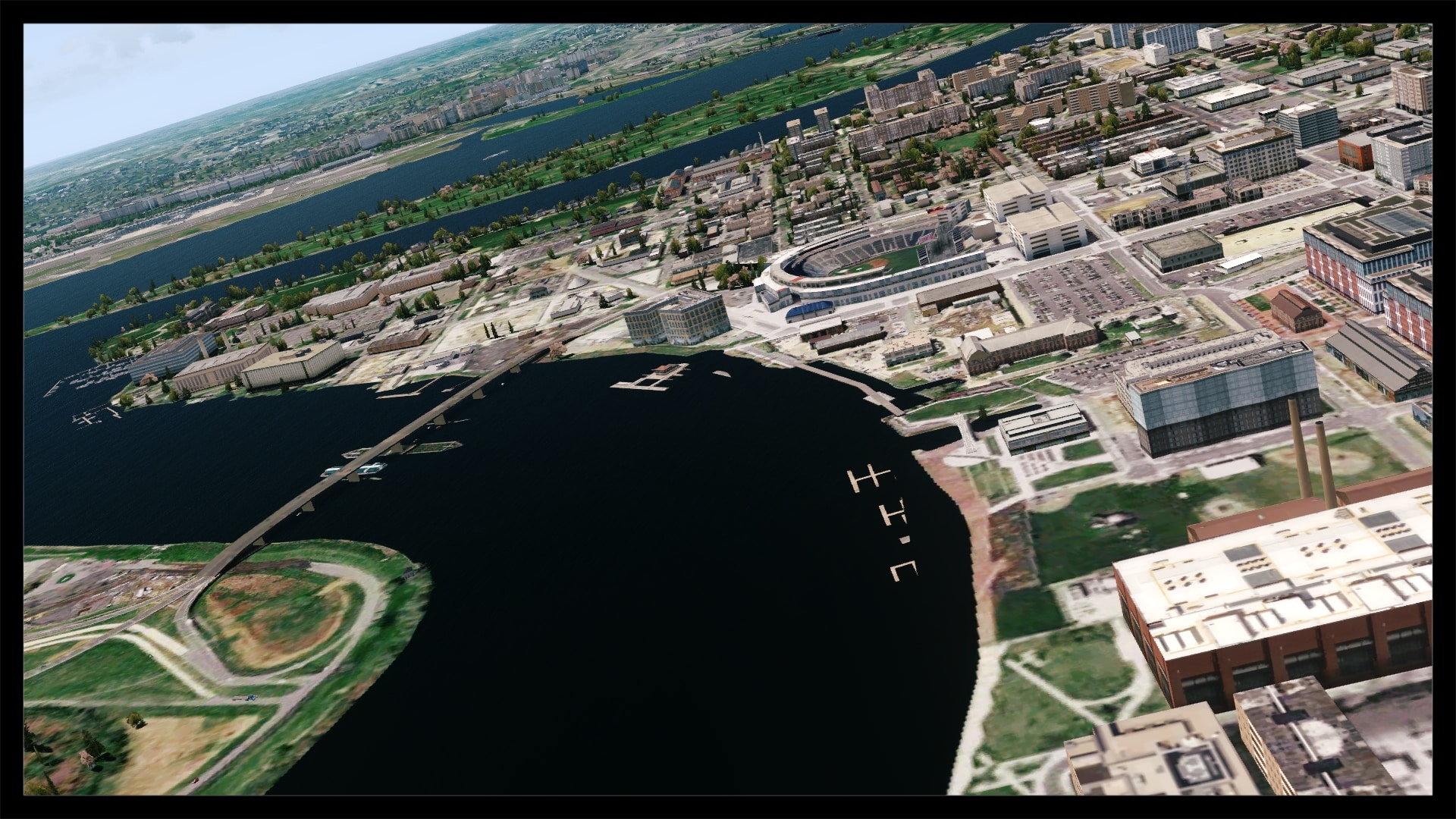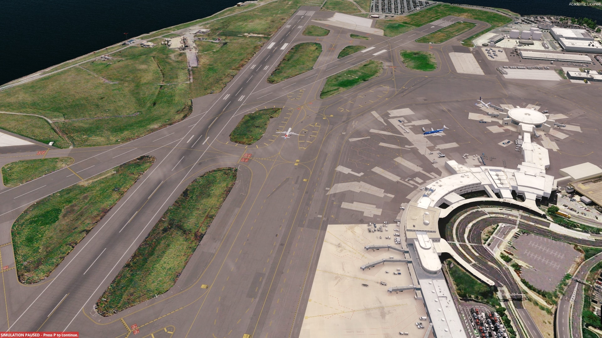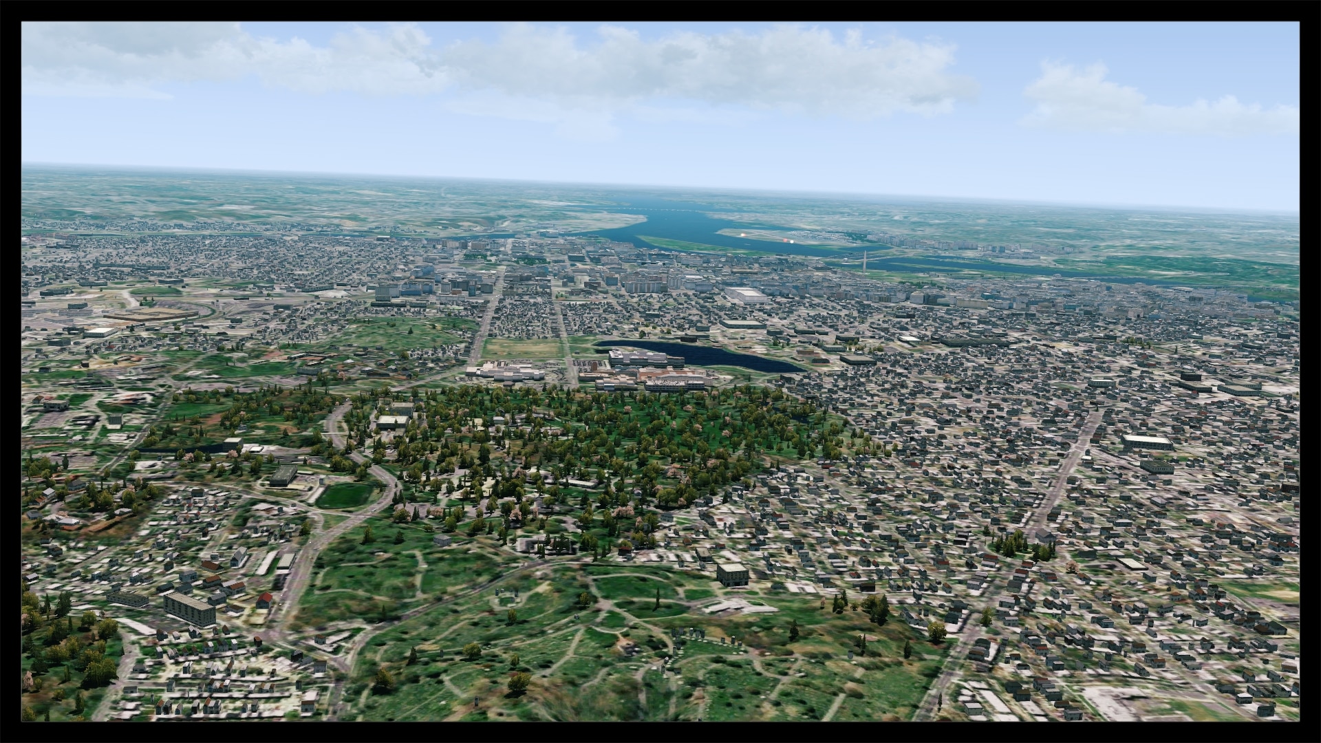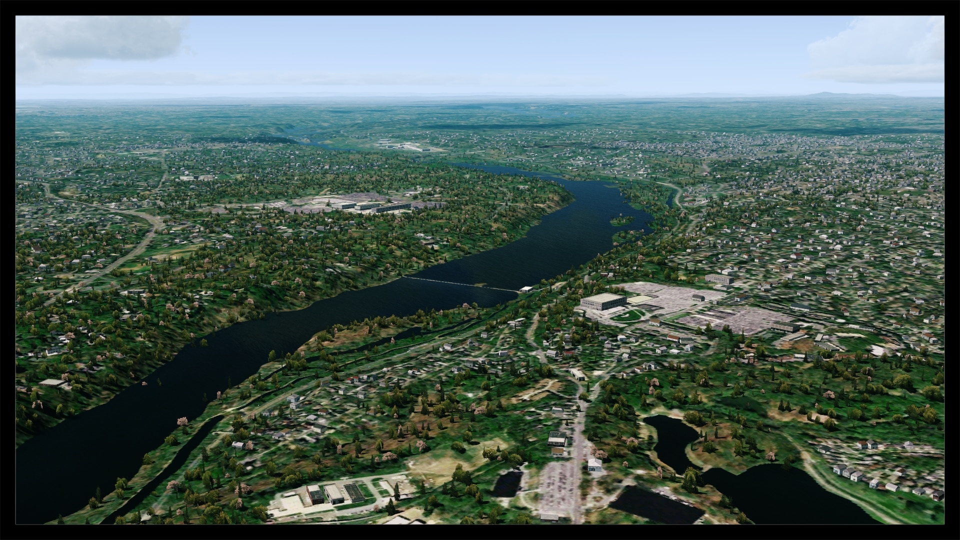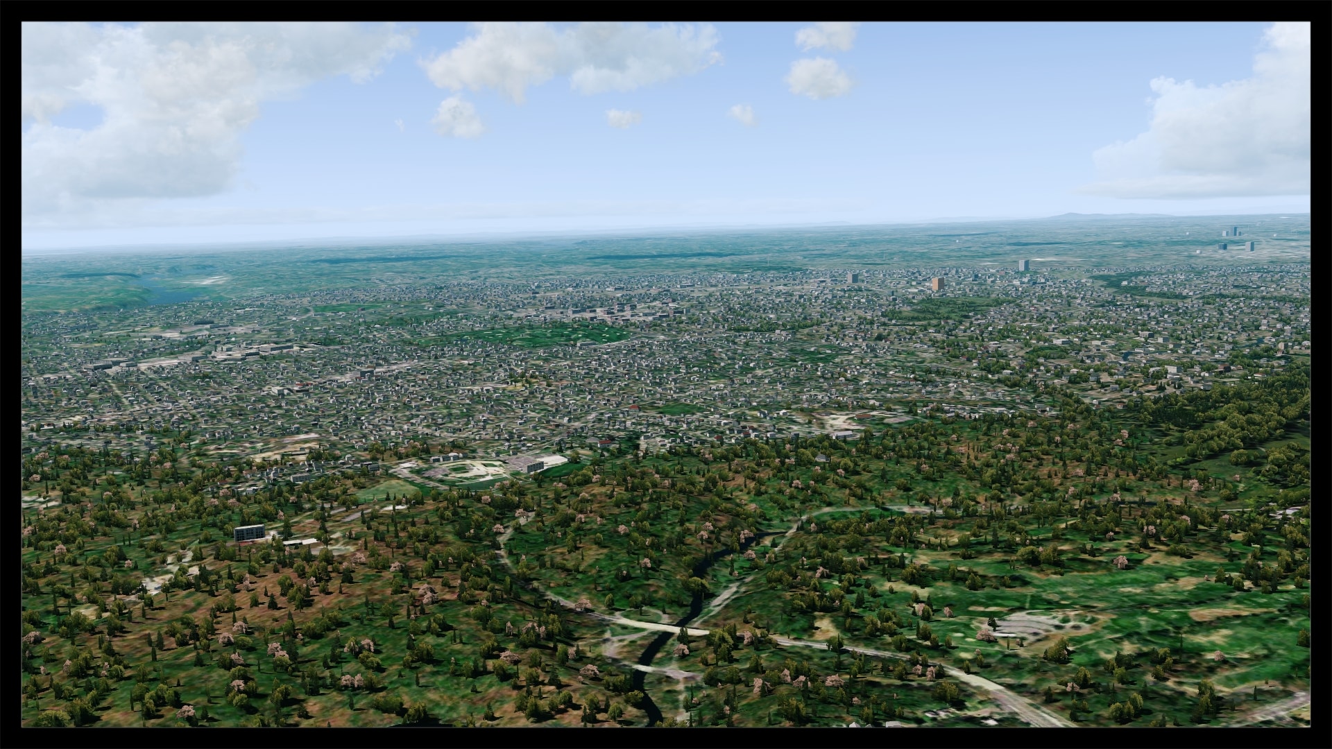 Wie schon geschrieben sind die Texturen niedrig aufgelöst, die Landklassen und Vectordaten, welche für das Aussehen am Boden zuständig sind, sind dagegen sehr genau. Stanislaw hat im Forum schon angekündigt, dass die Texturauflösung der Außenbezirke von 1m/Pixel, bei Seattle, auf 0,5m/Pixel angehoben werden. Bei der Washington Umsetzung ist keine weitere Nacharbeit in dieser Hinsicht zu erwarten. Alles in allem ist es aus größeren Höhen schön anzuschauen, da kommt bei der Menge an Häusern auch ein schönes Stadtfeeling auf, bei Tiefflügen ist man dagegen teilweise enttäuscht.