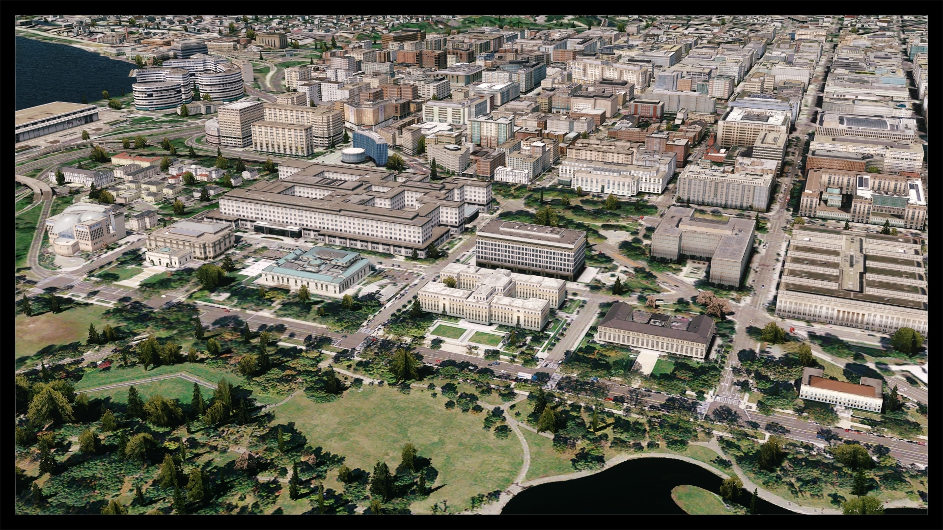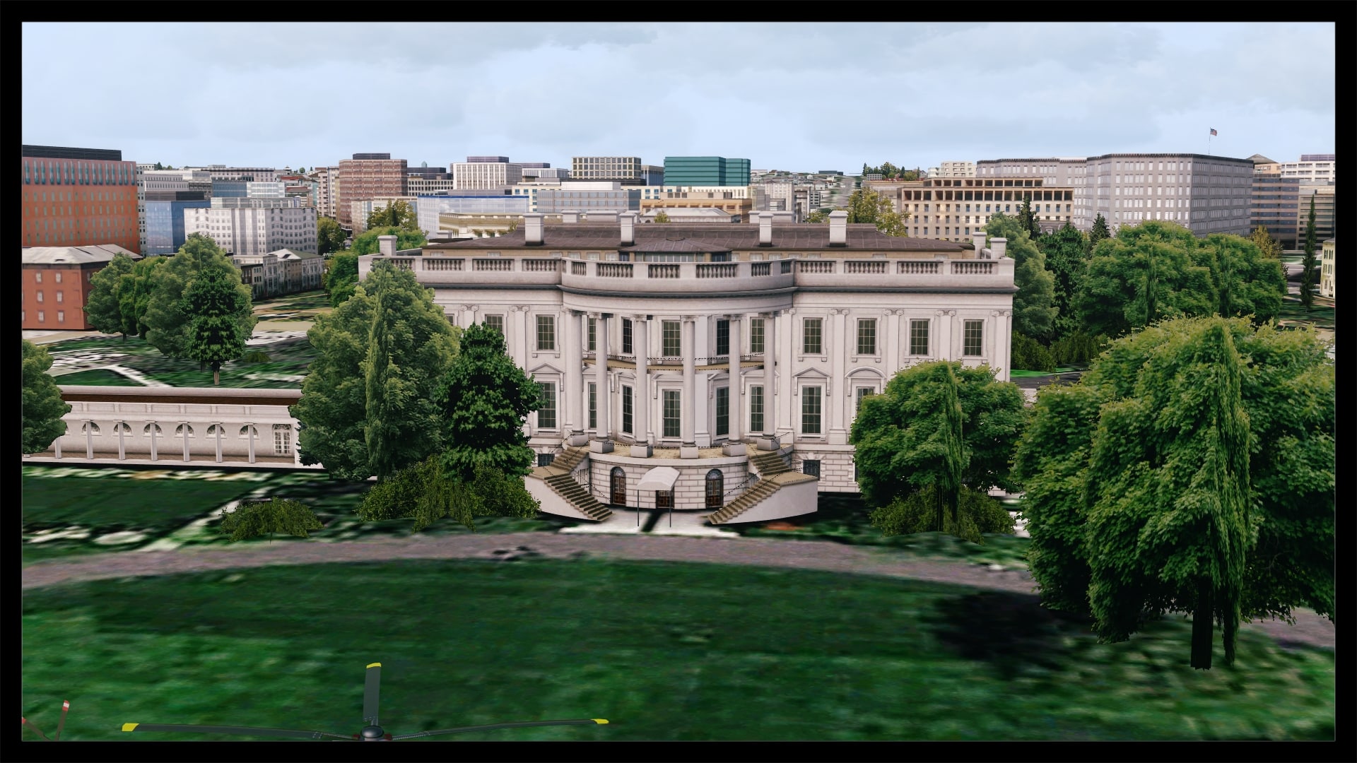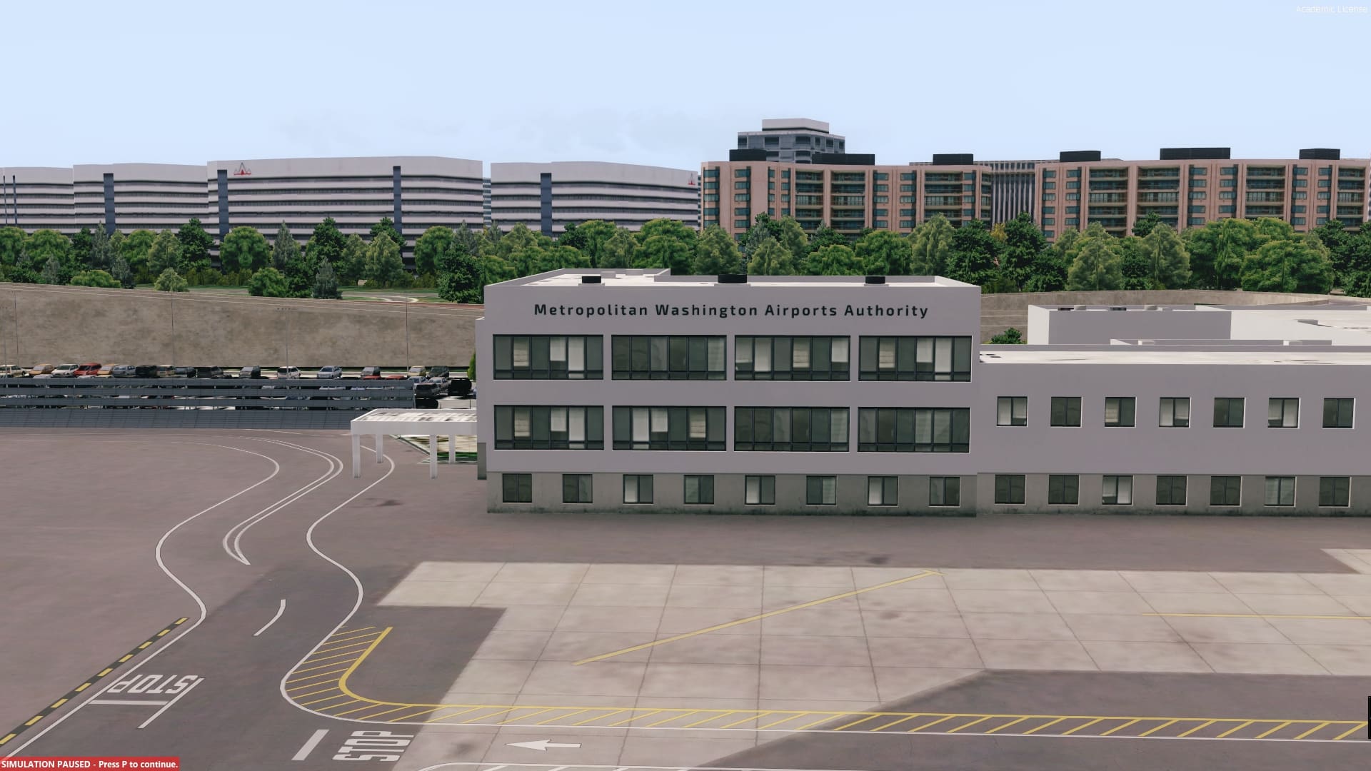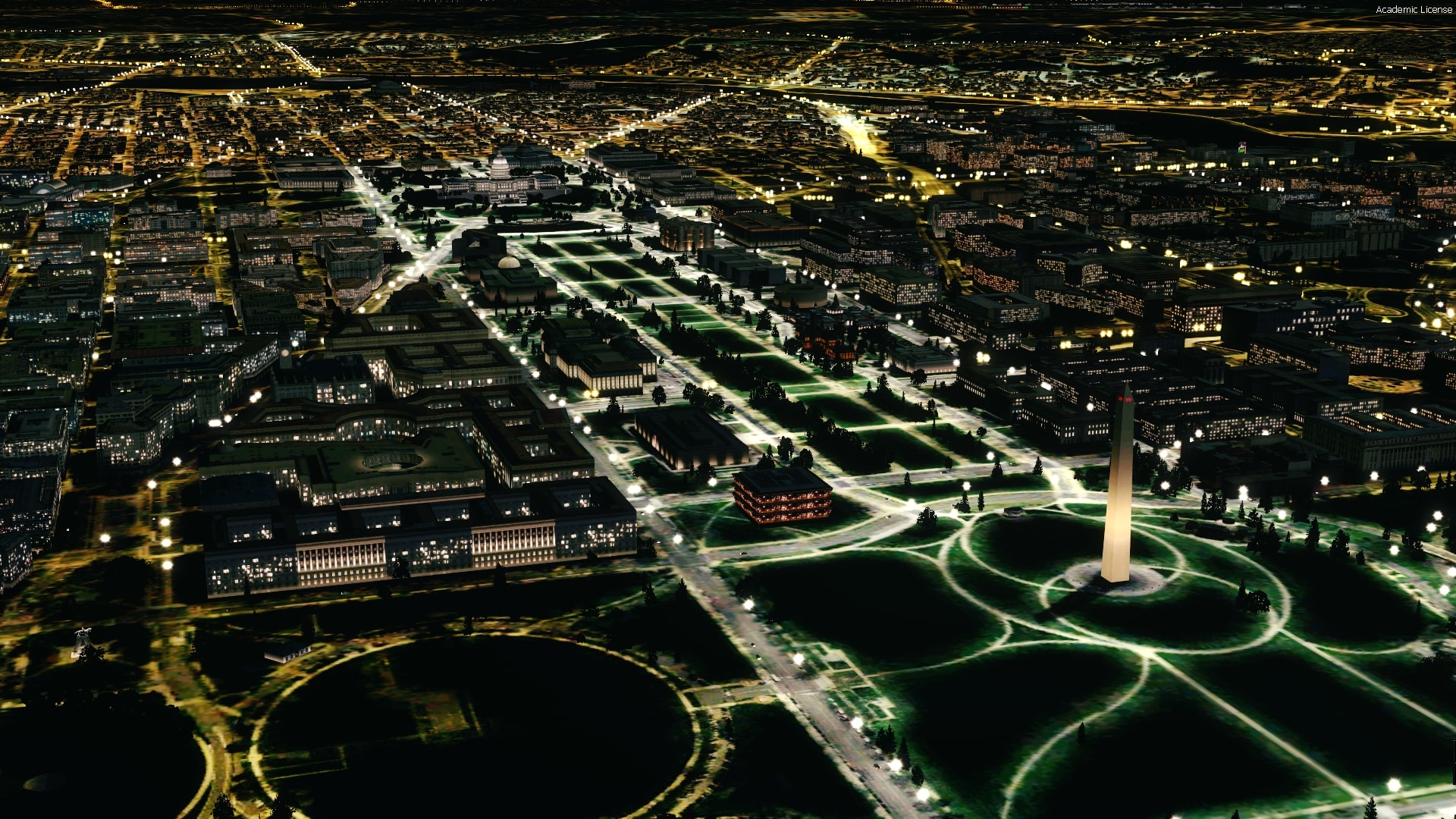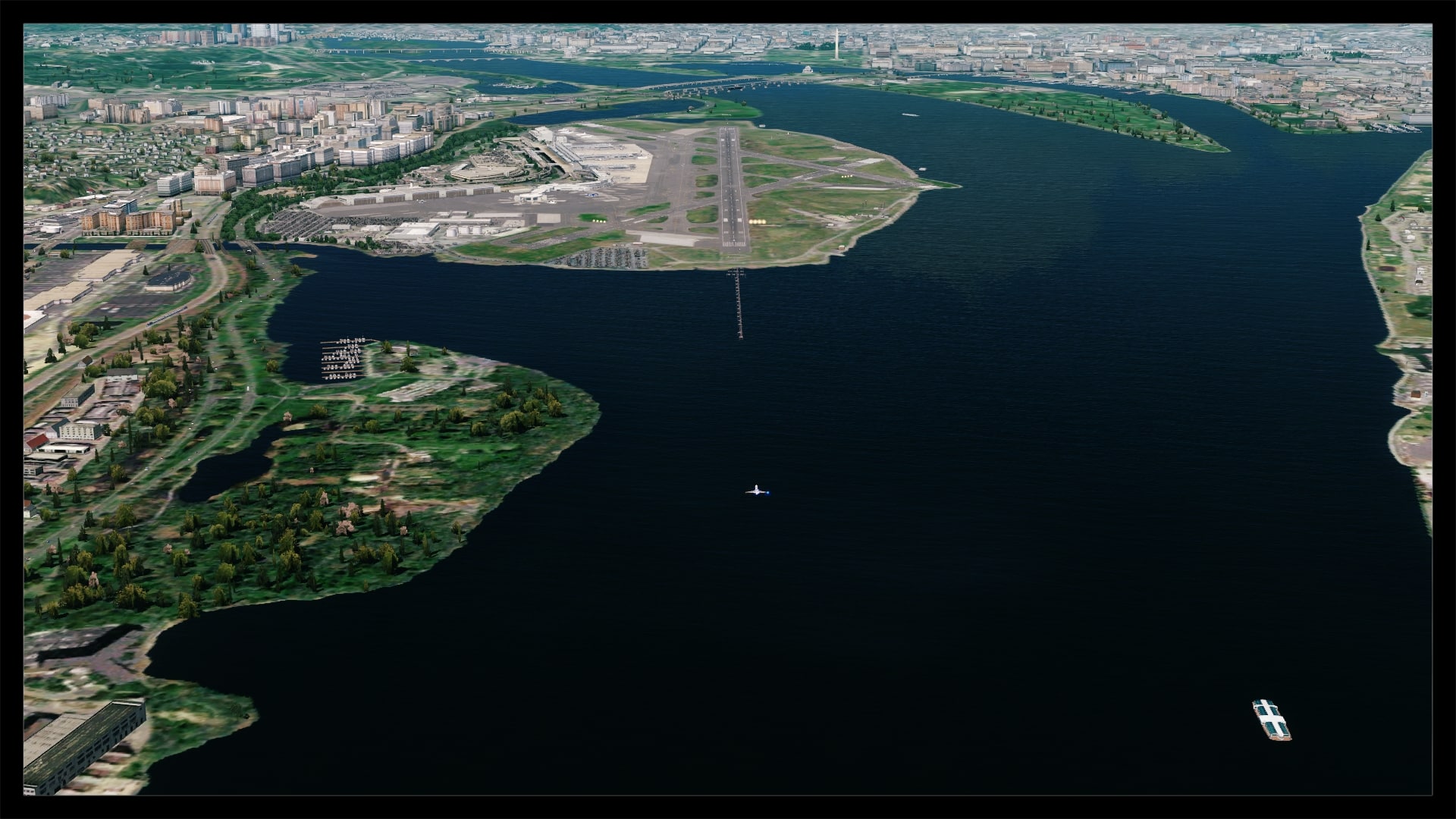 Beim Überqueren des Ronald Reagan Airports, so der Beiname, stellen wir eine höher aufgelöste Bodentextur fest, welche sich über den ganzen Innenstadtbereich zieht. Die Wohn- und Geschäftshäuser sind sauber erstellt und ebenso präzise platziert.