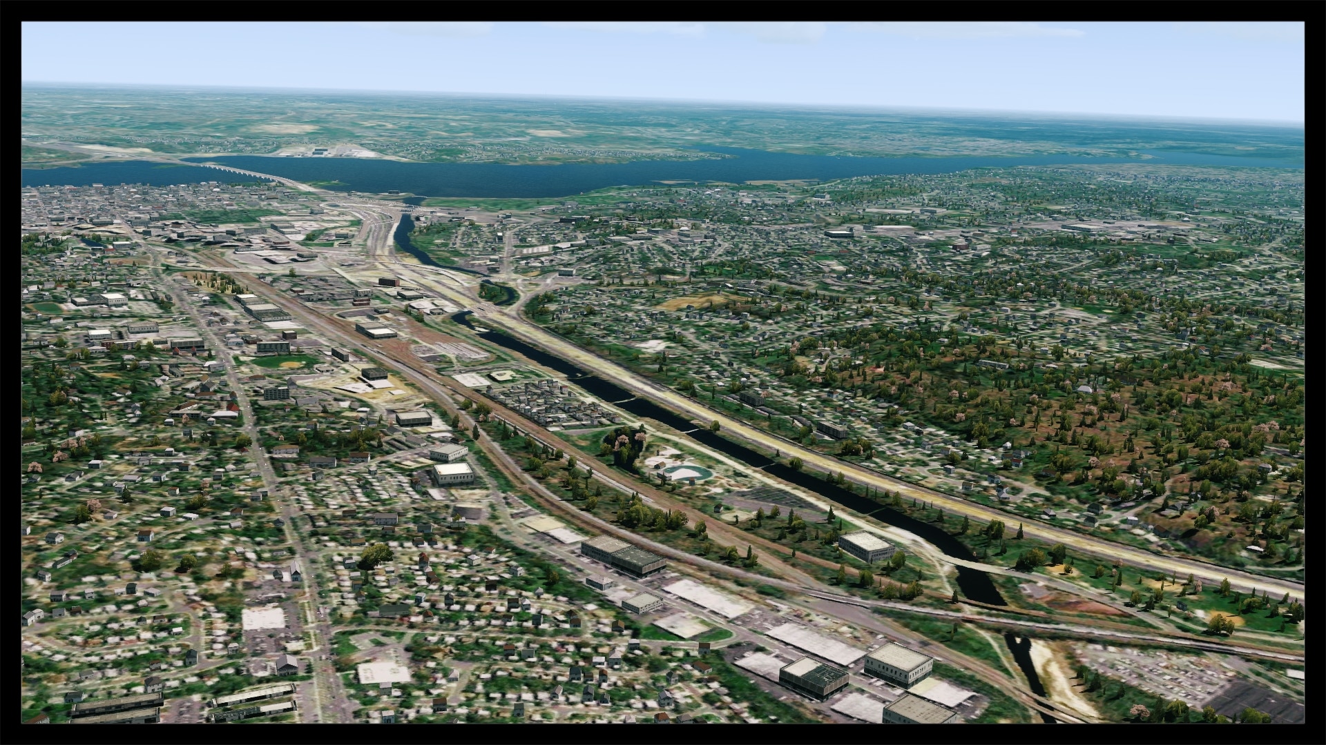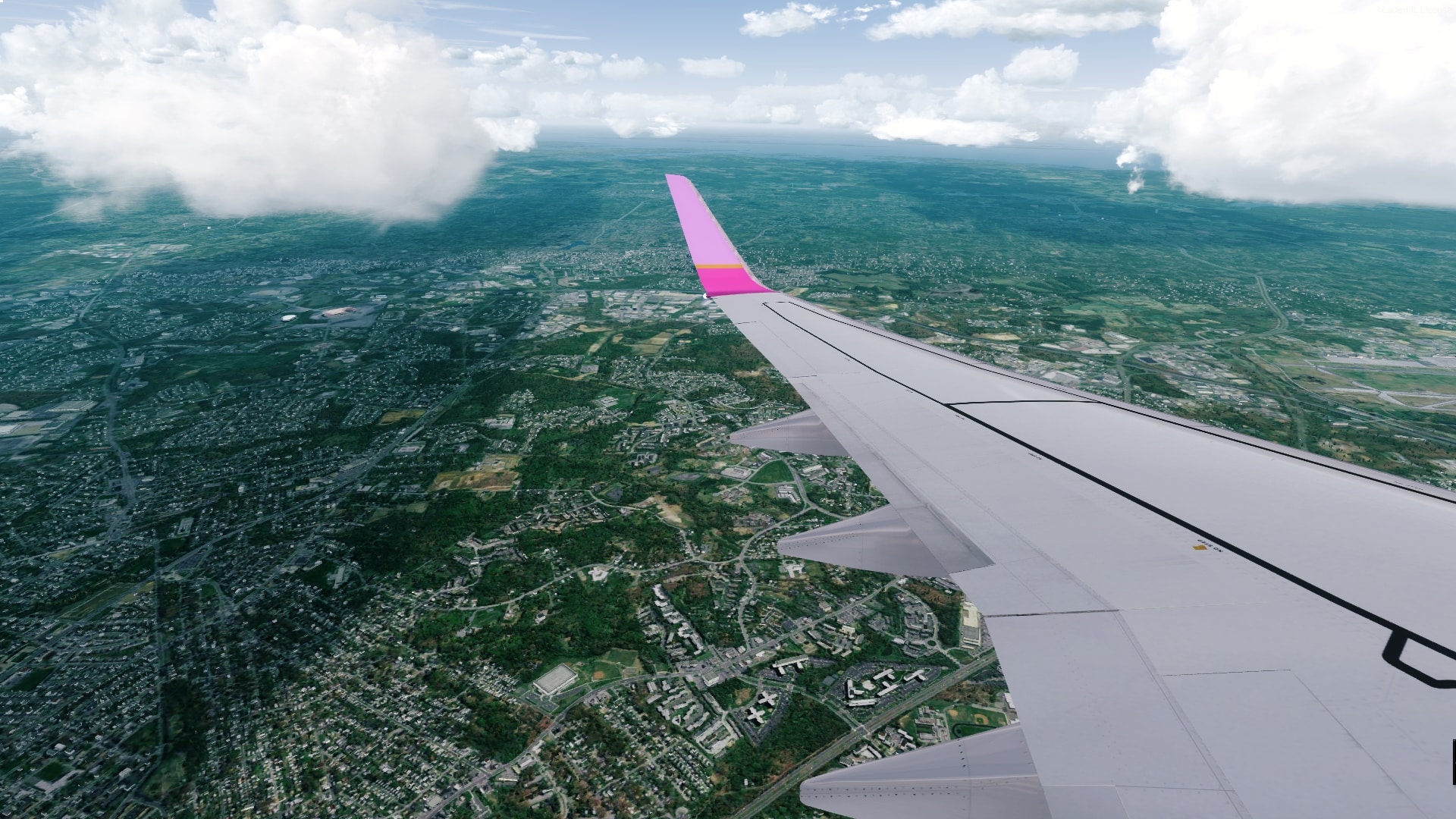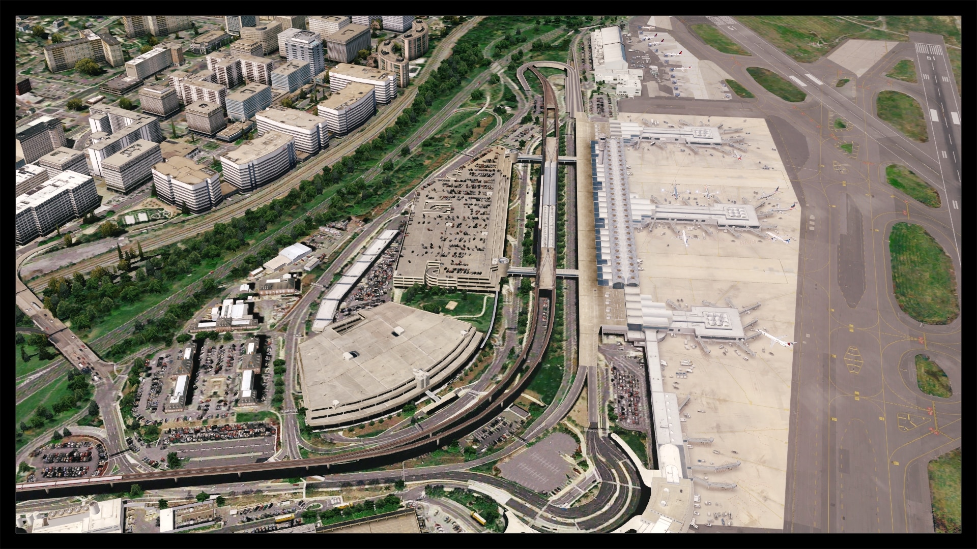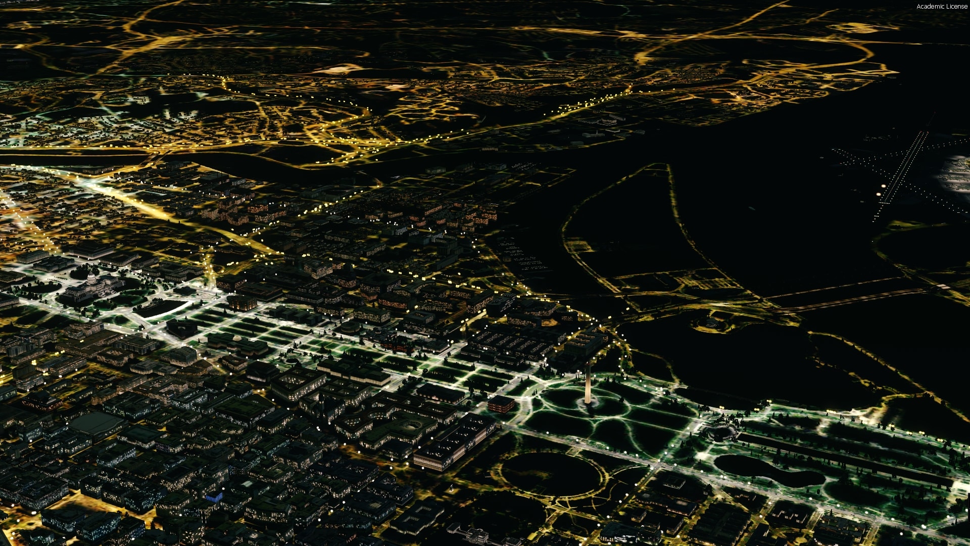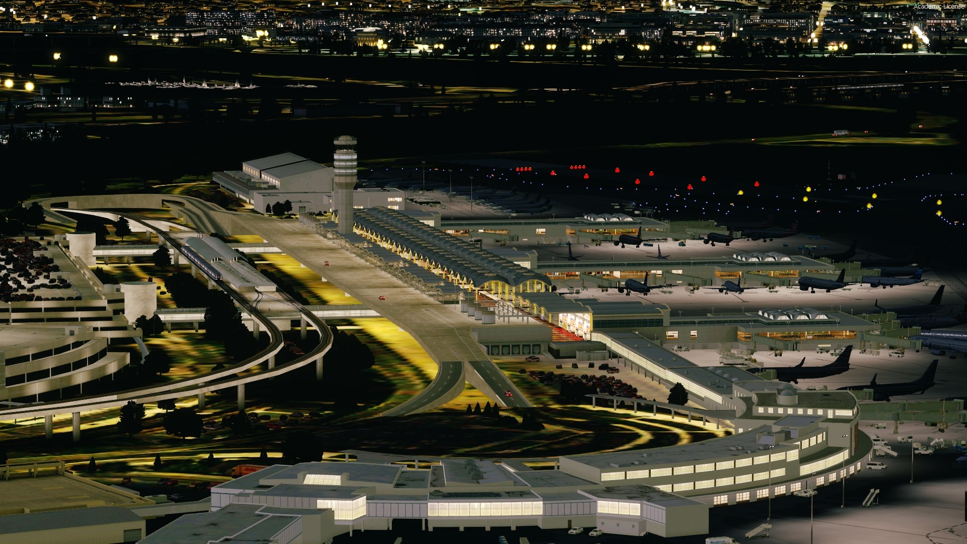 Beim Überqueren des Ronald Reagan Airports, so der Beiname, stellen wir eine höher aufgelöste Bodentextur fest, welche sich über den ganzen Innenstadtbereich zieht. Die Wohn- und Geschäftshäuser sind sauber erstellt und ebenso präzise platziert.