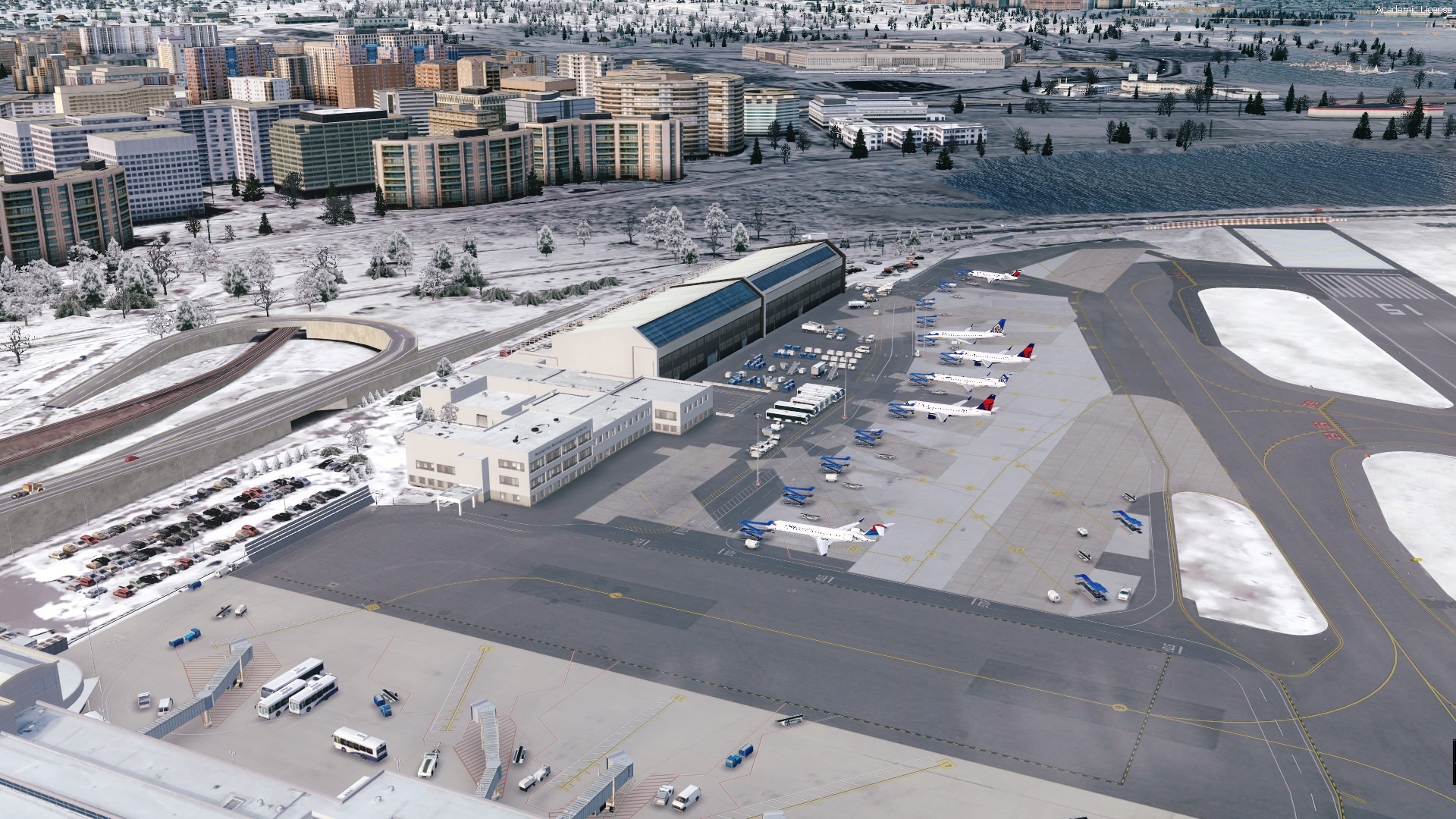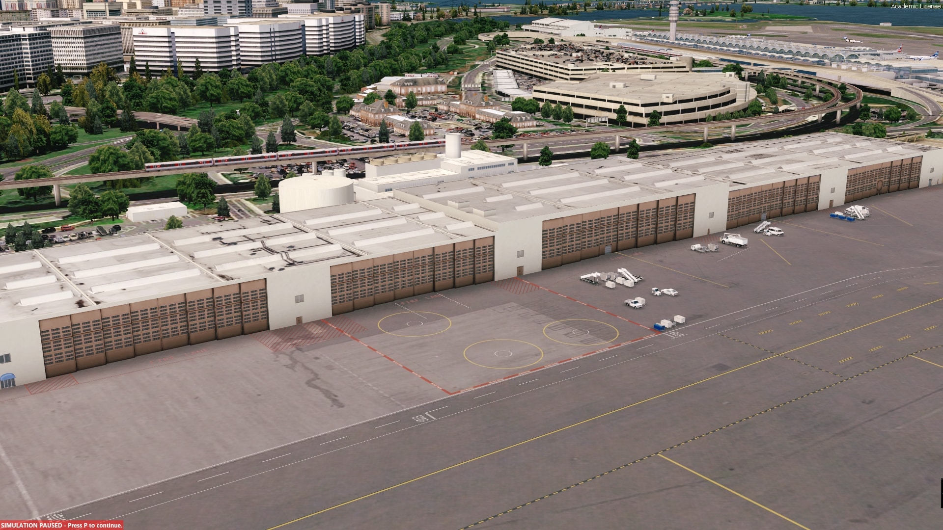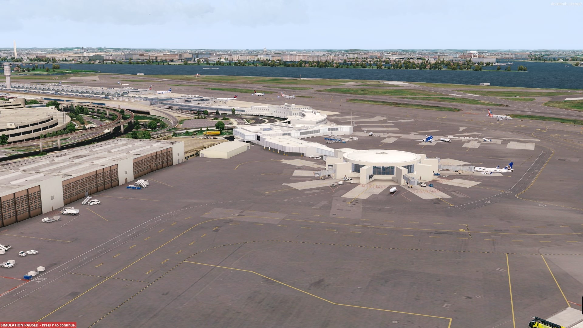 Wie bereits im vorherigen Abschnitt beschrieben, handelt es sich bei den anderen umgesetzten Plätzen um Lite Versionen, ein genauer Blick lohnt hier nicht. Er lohnt aber beim Flugplatz im Herzen der Szenerie – dem Ronald Reagan Washington National Airport.