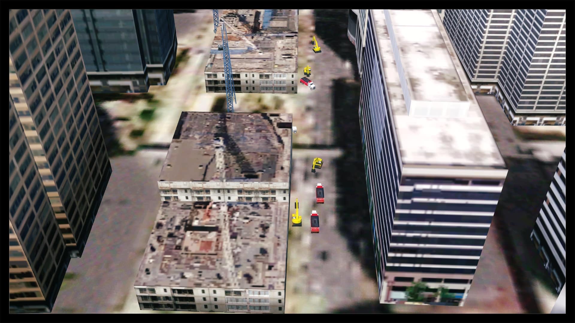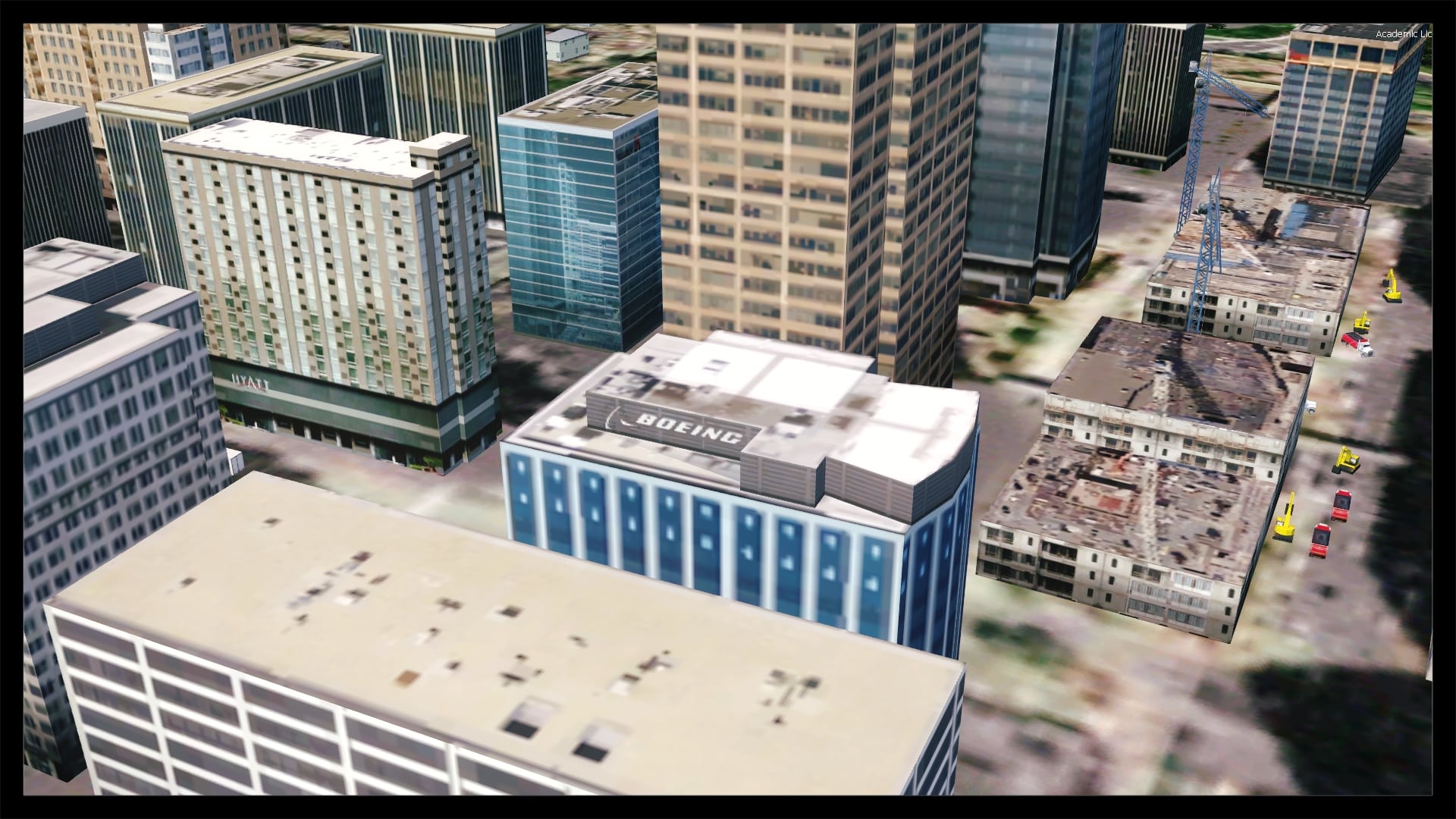Die Bürotürme von Rosslyn sind schön gemacht und entsprechen weitestgehend den Originalen. Auch die Ausrichtung am Fotountergrund ist präzise. Im ganzen Stadtgebiet entdeckt man immer wieder kleine Szenen und Objekte, wie z.B. diese Baustelle.