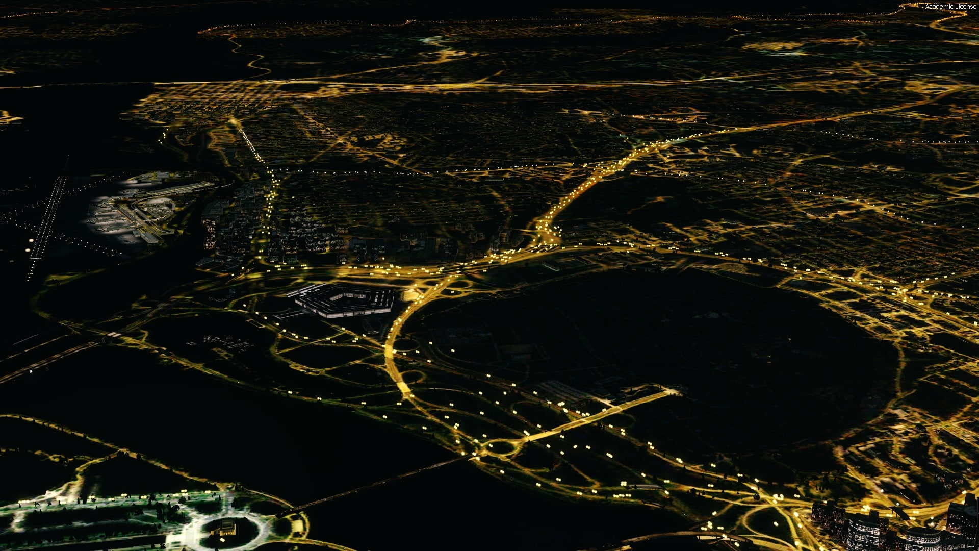 Hinter dem Pentagon erstreckt sich der Arlington Nationalfriedhof. Die Aufteilung ist gut zu erkennen, jedoch ist die Auflösung der Bodentextur leider sehr gering. Drzewiecki Design dem Friedhof hat auch ein paar Bauwerke spendiert. Dazu zählen das Women in Military Service for America Memorial, das Columbarium sowie das Arlington Memorial Amphitheater.