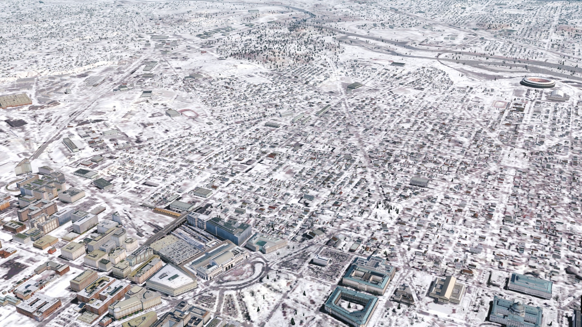 Washington X kennt nur Sommer und Winter, Frühling und Herbst existieren, zumindest im Bereich der Bodentexturen nicht. Im Winter ist das Luftbild halt weiß, die Auflösung scheint die selbe zu sein wie bei der Sommertextur. An den Gebäuden ist ebenfalls kein witterungsbedingter Unterschied zu erkennen.