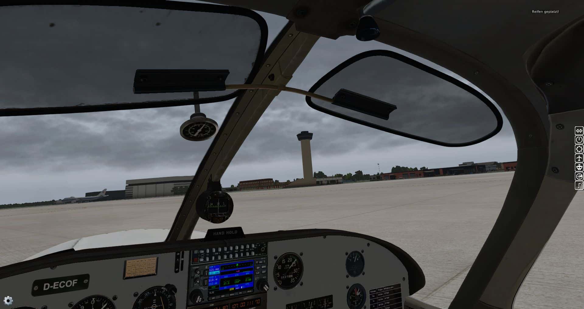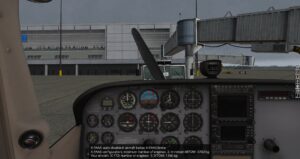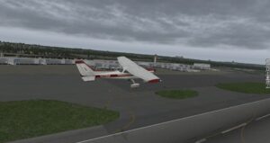 Wir befinden uns auf einem etwas besser aussehenden Flugfeld. Allerdings fällt auch auf, dass sich um uns herum nichts bewegt. Für einen Flughafen dieser Größe eigentlich ein Unding, denn das heißt, dass er weder an X-Plane 11 angepasst wurde, noch hat er eingezeichnete AI Wege oder auch nur Ground Traffic. Da hilft es auch nicht, wenn man hier und da durch die Fenster in den Innenraum sehen kann. Er wird von AI Flugzeugen weder bedient noch angeflogen.