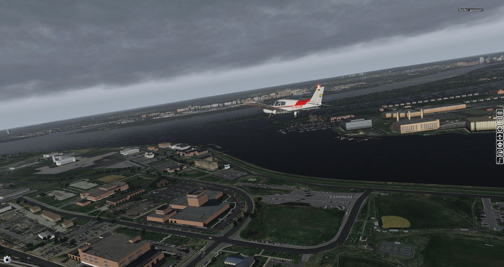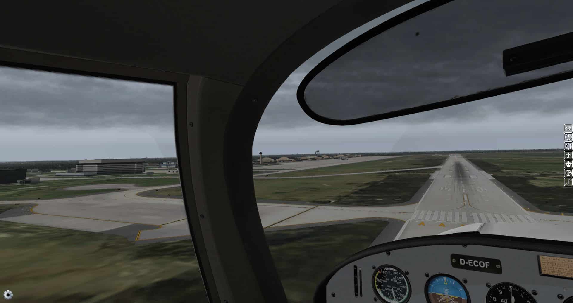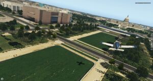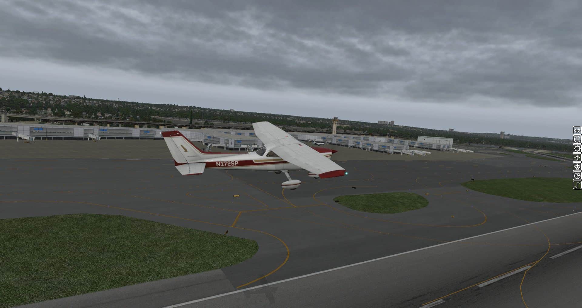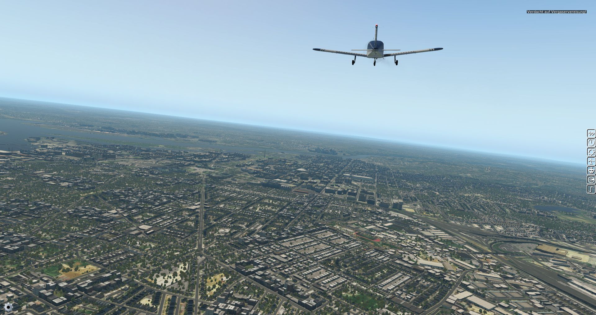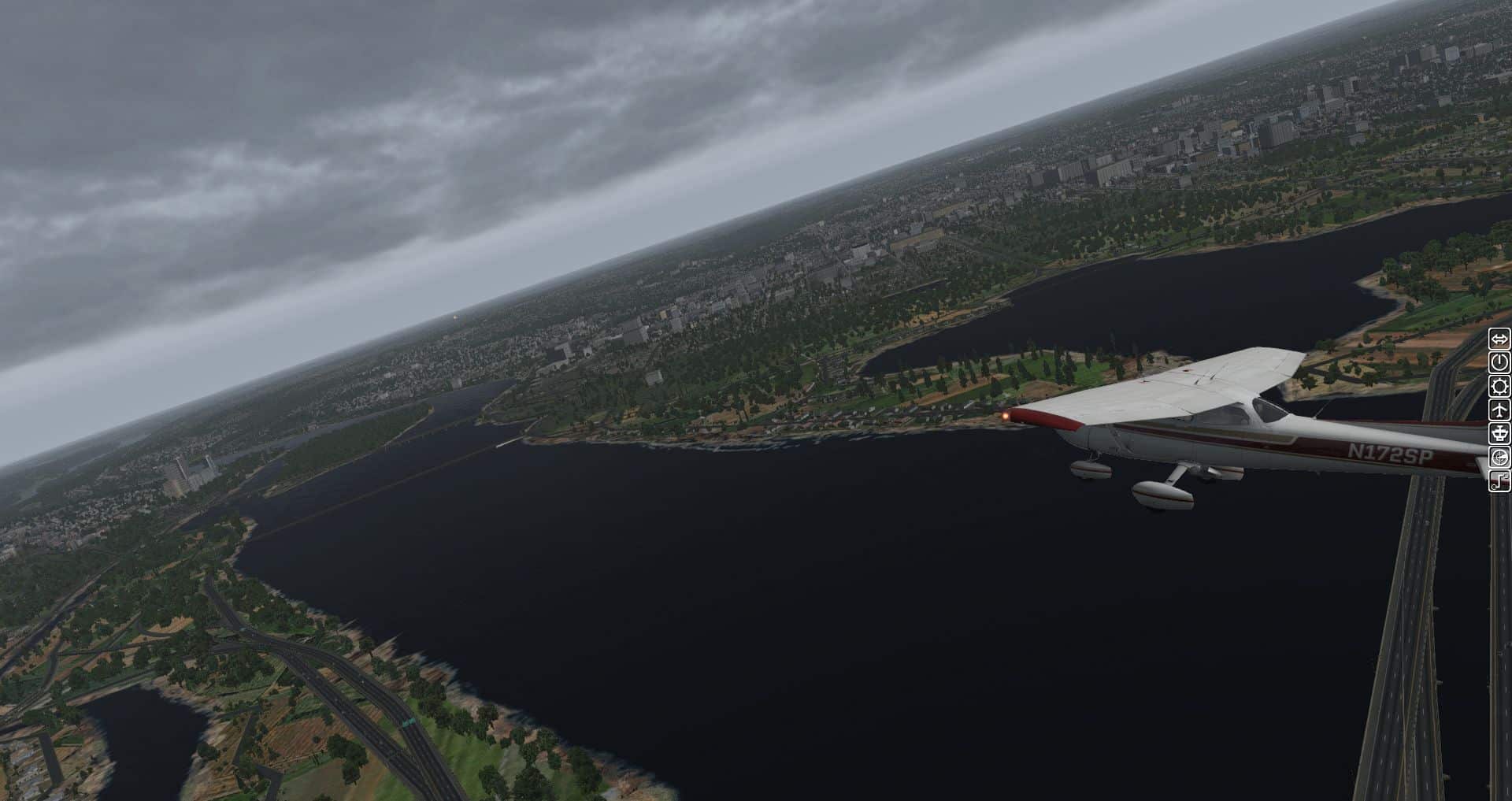 Der erste Flug erfolgt ohne jegliche Payware Addons. Da in einer Stadt-Szenerie eher Tiefflug benötigt wird, heben wir mit der Cessna 172 vom Flughafen Washington National (KDCA) ab.