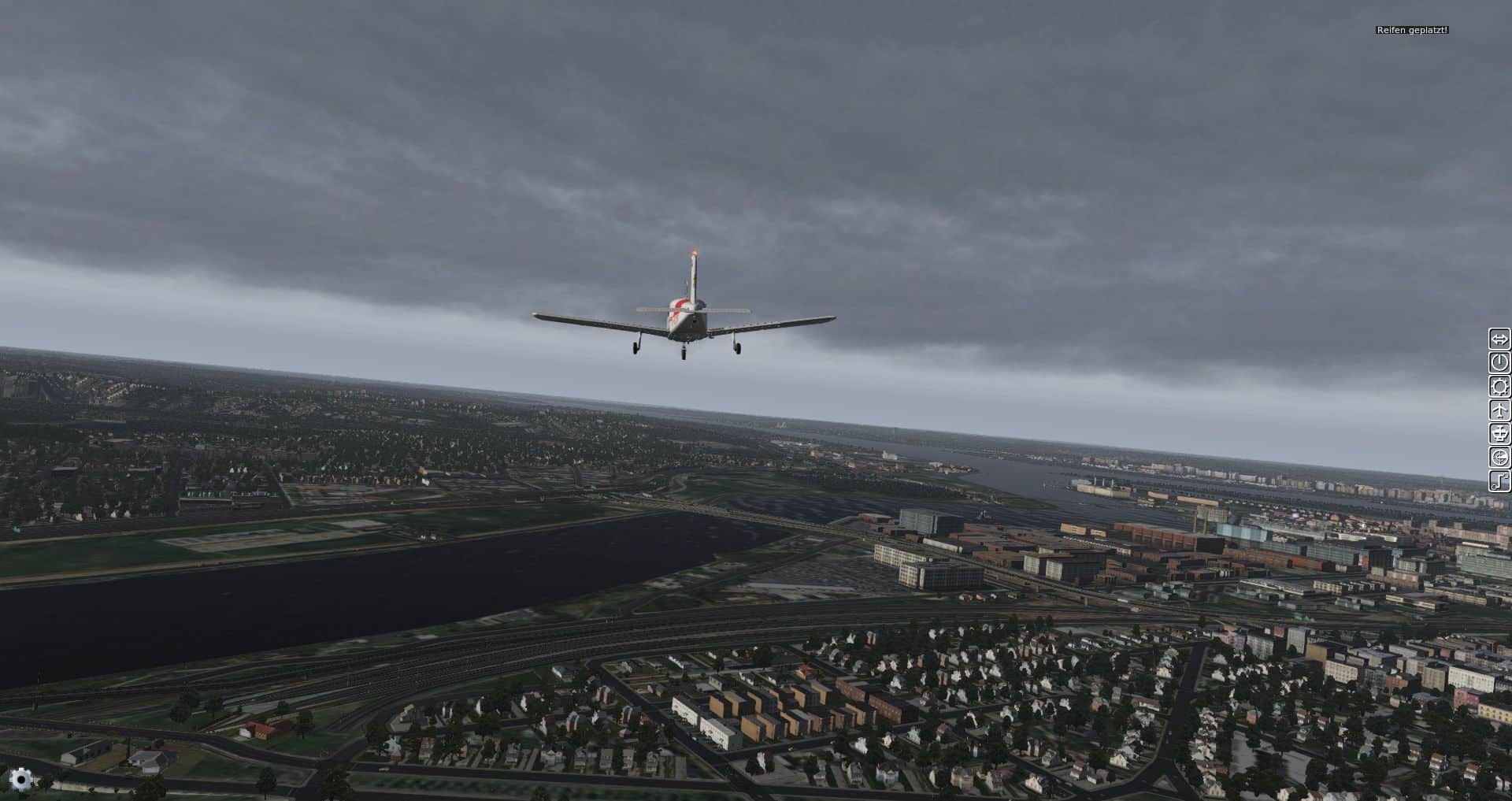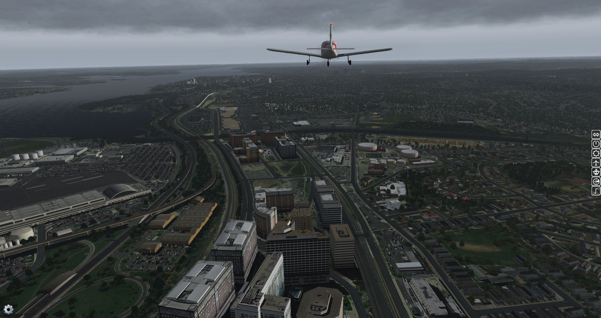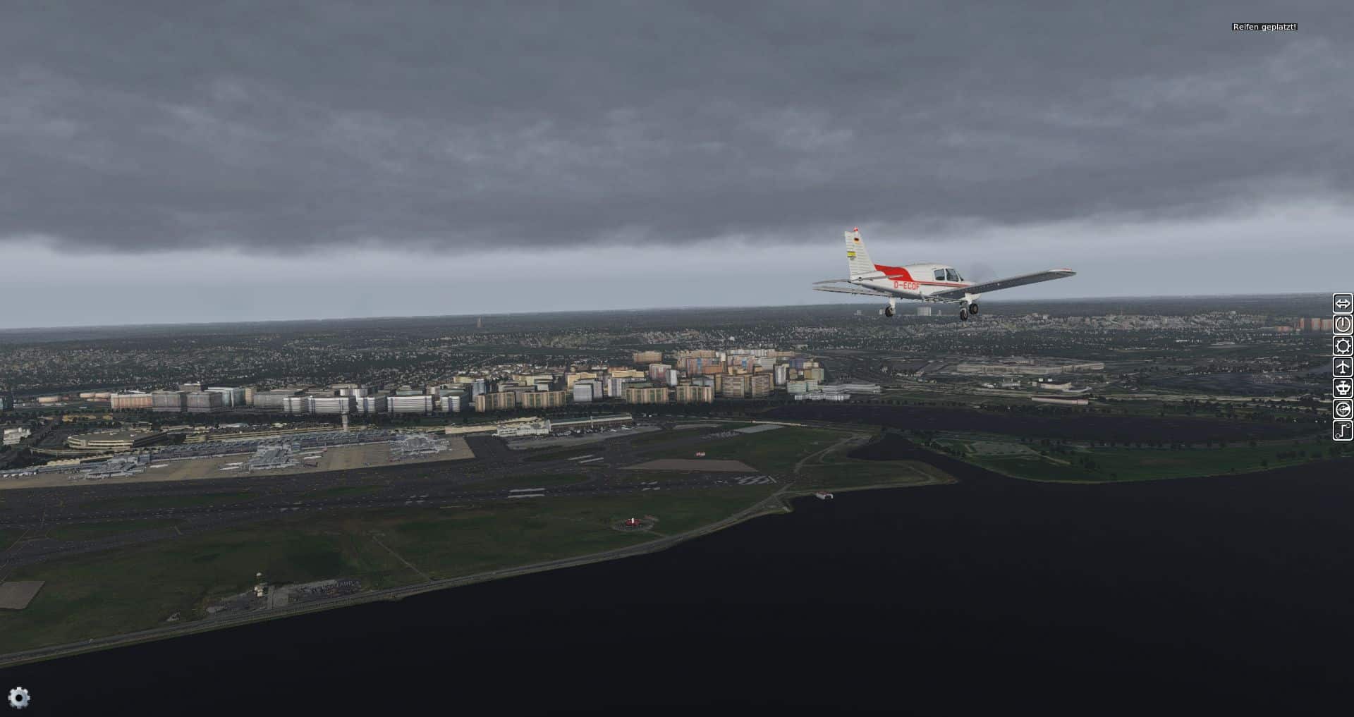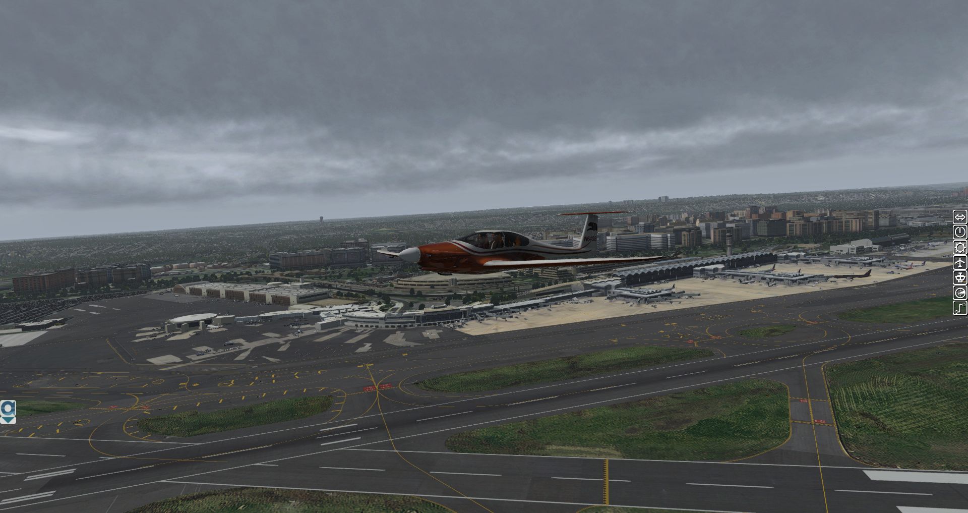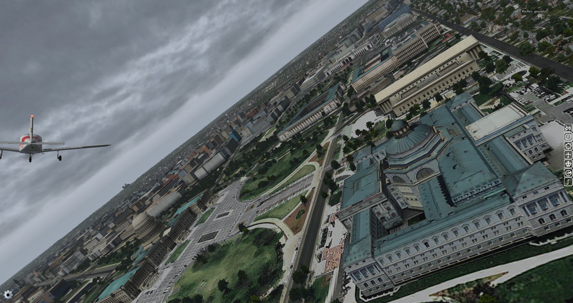 Der erste Flug erfolgt ohne jegliche Payware Addons. Da in einer Stadt-Szenerie eher Tiefflug benötigt wird, heben wir mit der Cessna 172 vom Flughafen Washington National (KDCA) ab.