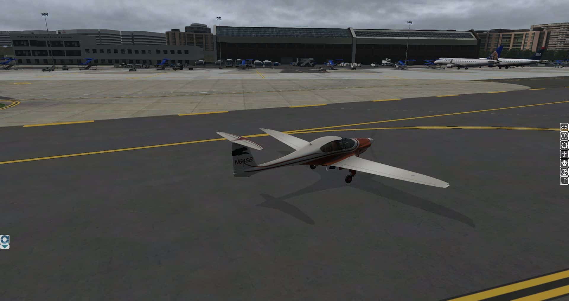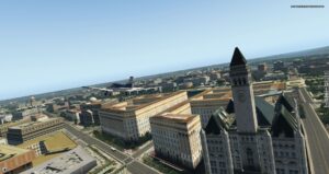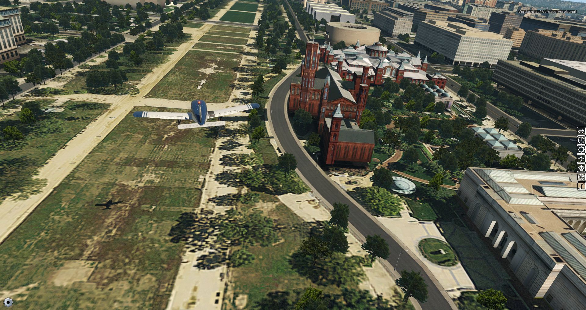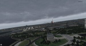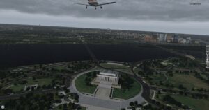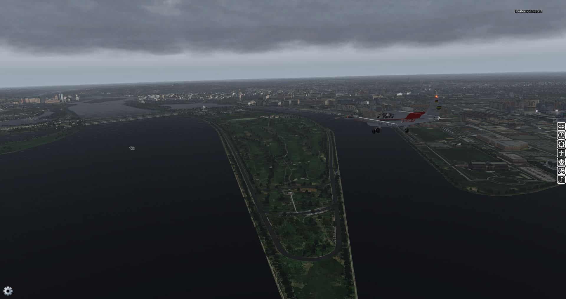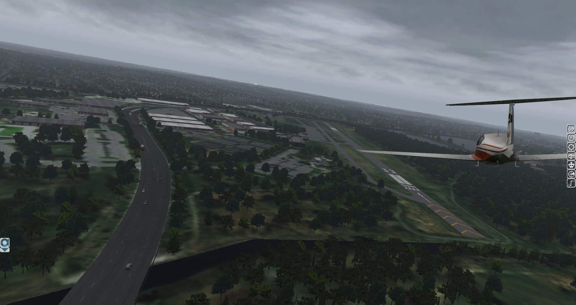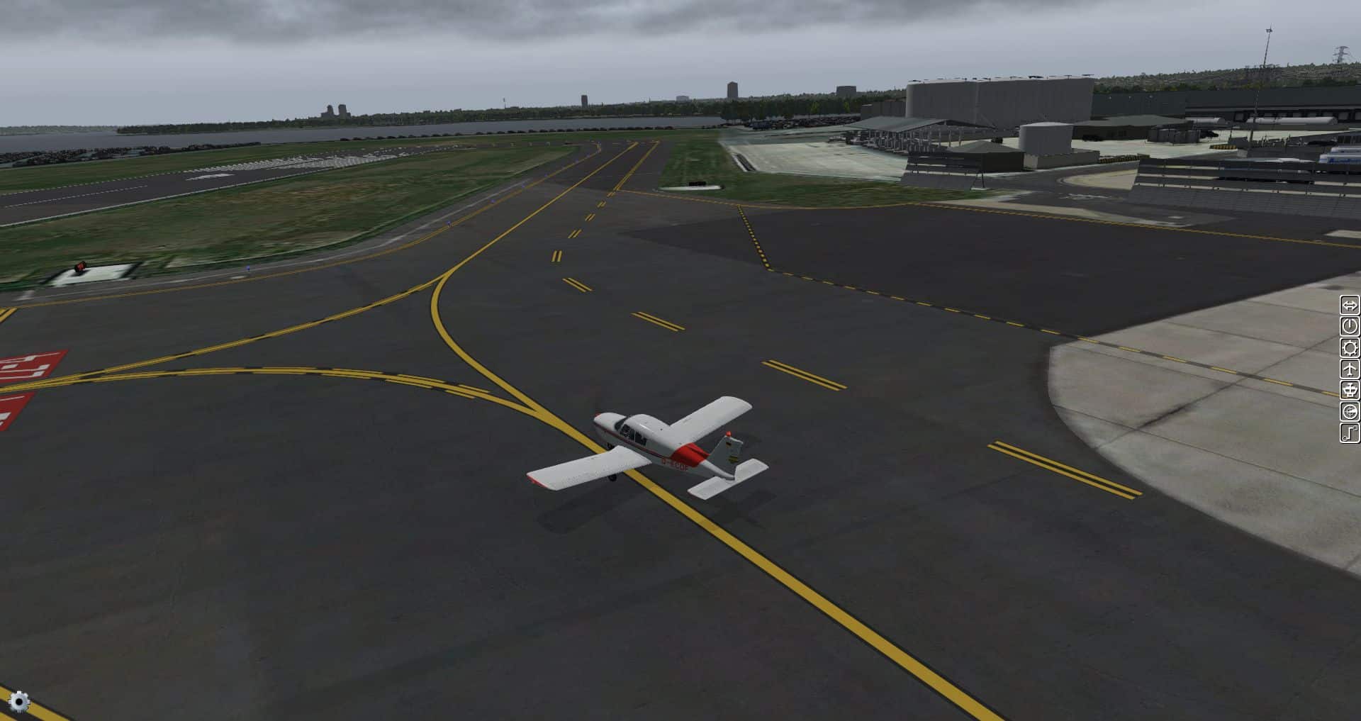 Der erste Flug erfolgt ohne jegliche Payware Addons. Da in einer Stadt-Szenerie eher Tiefflug benötigt wird, heben wir mit der Cessna 172 vom Flughafen Washington National (KDCA) ab.