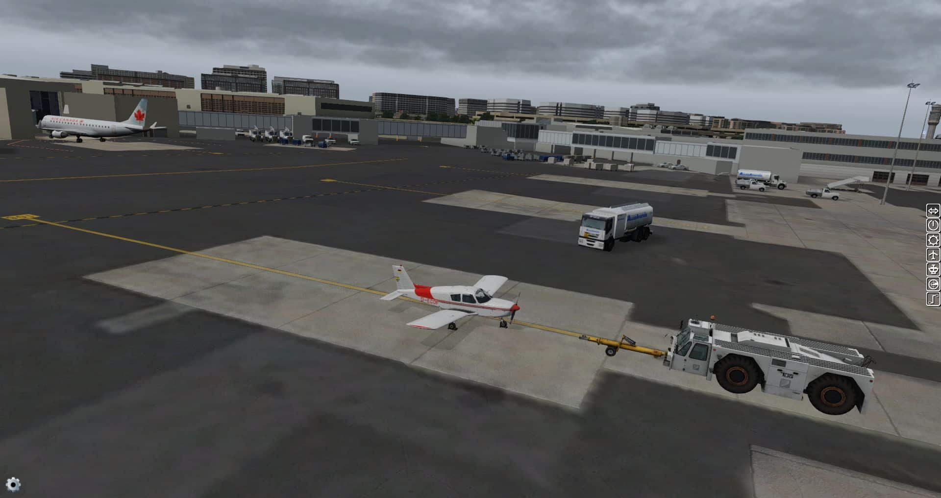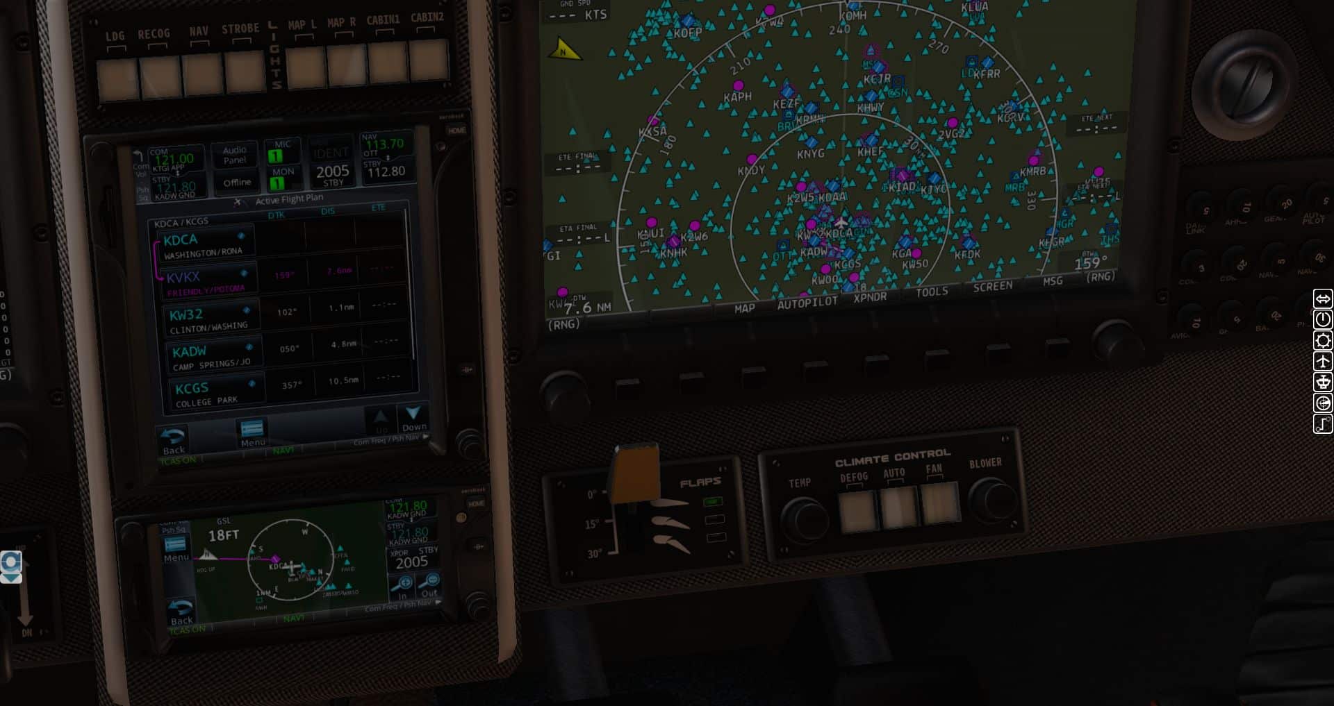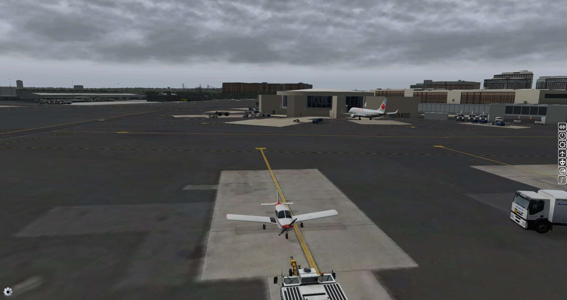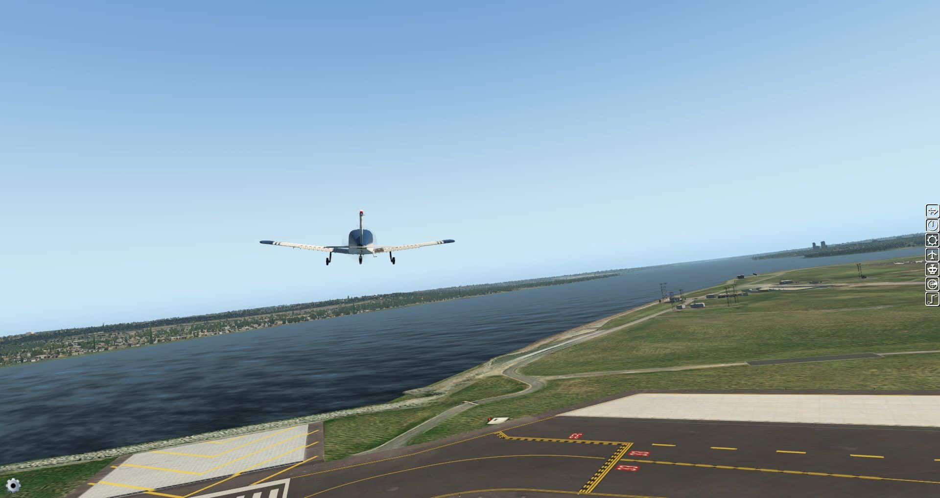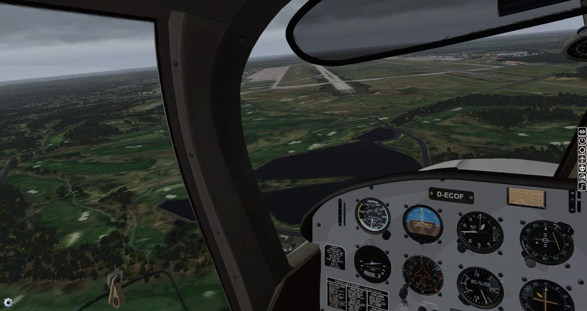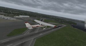 Der erste Flug erfolgt ohne jegliche Payware Addons. Da in einer Stadt-Szenerie eher Tiefflug benötigt wird, heben wir mit der Cessna 172 vom Flughafen Washington National (KDCA) ab.