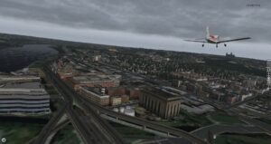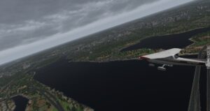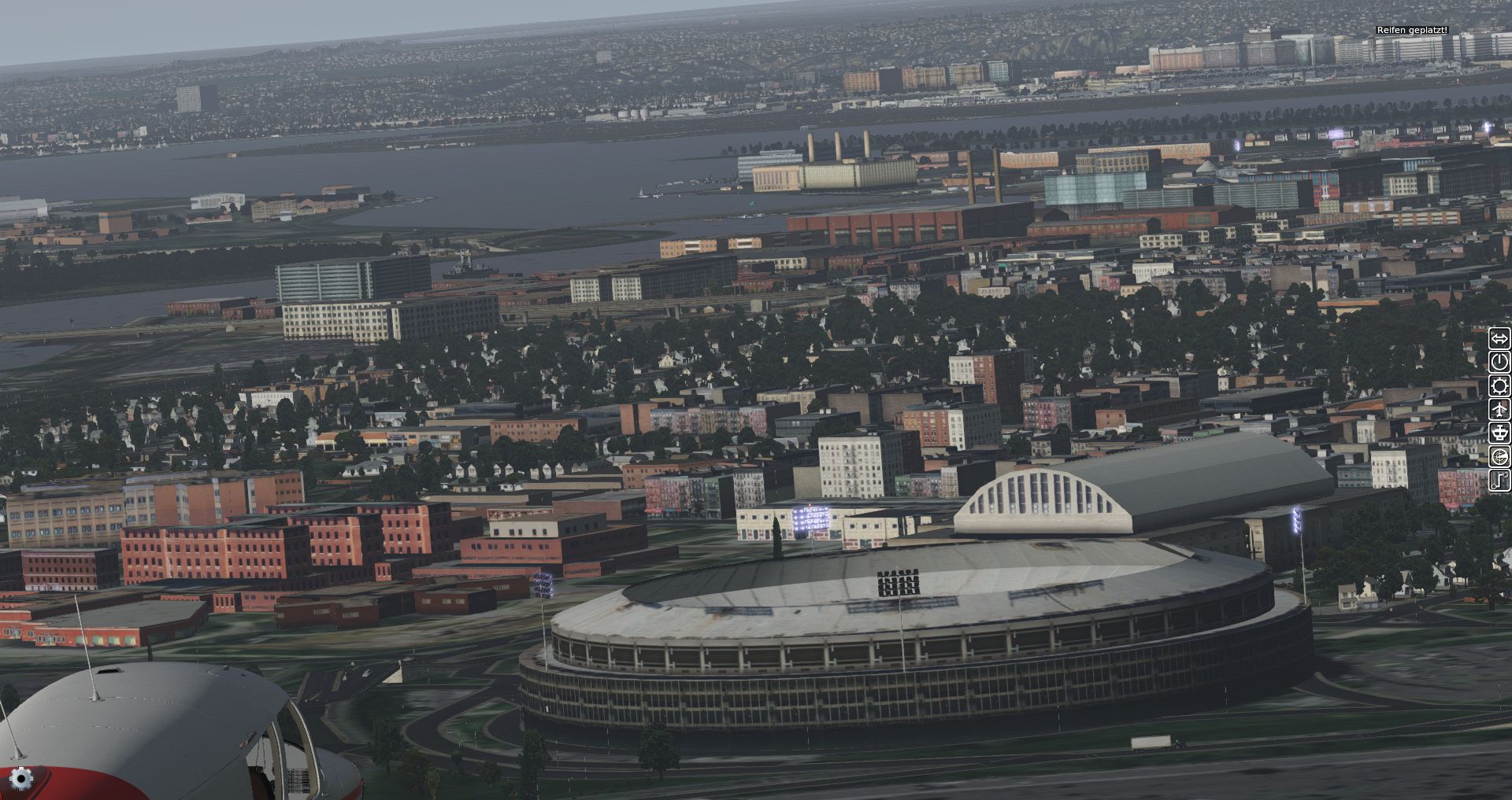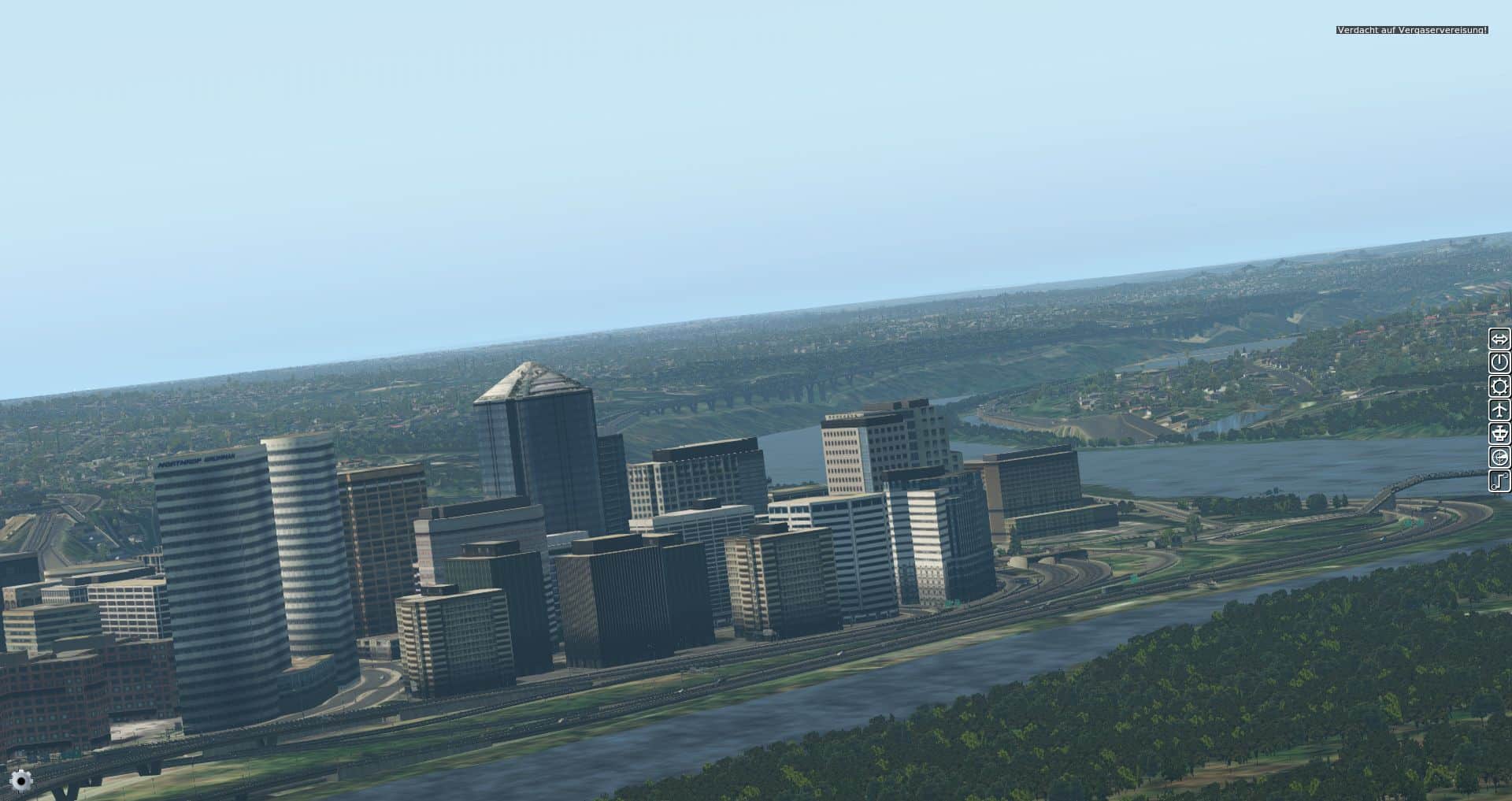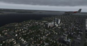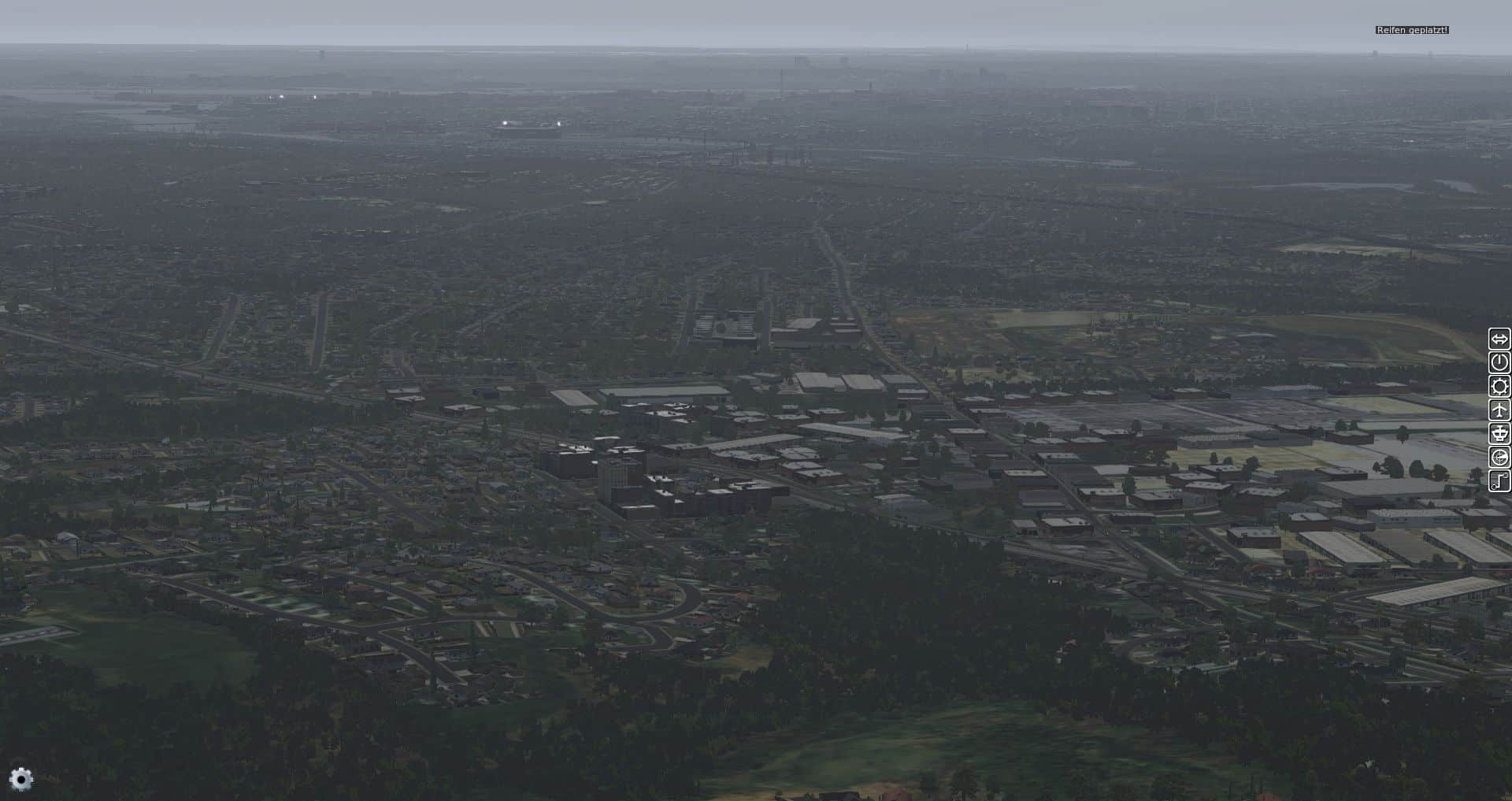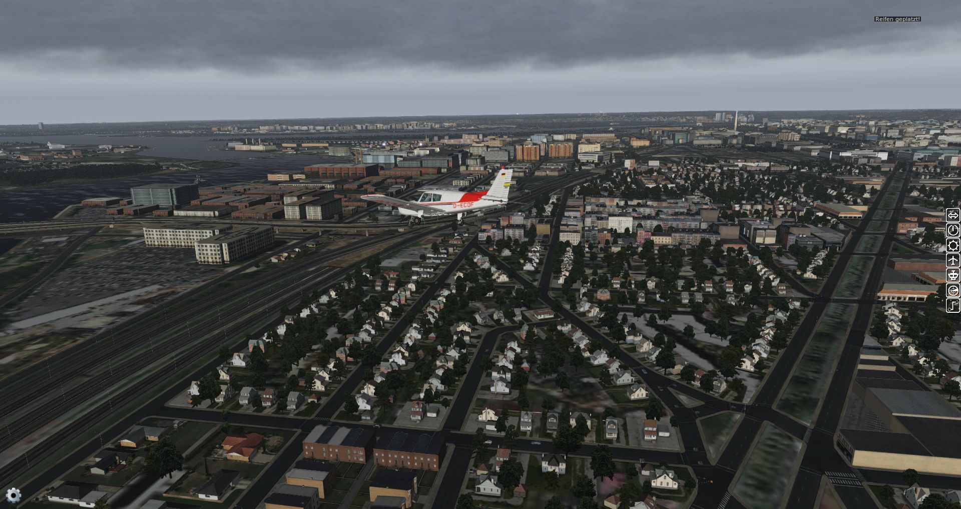 Wie immer gibt es eine Reihe von Unterschieden zu beachten. Da in diesen Fall selbst aktuelle Nutzer von X-Plane 11 nicht wissen könnten, wie X-Plane 11 diese Stadt jetzt darstellt beginnen wir mit einem Flug über den Auslieferungszustand.