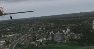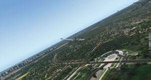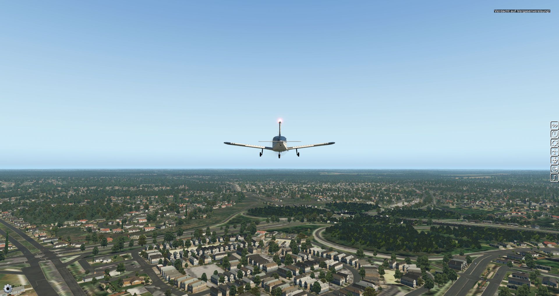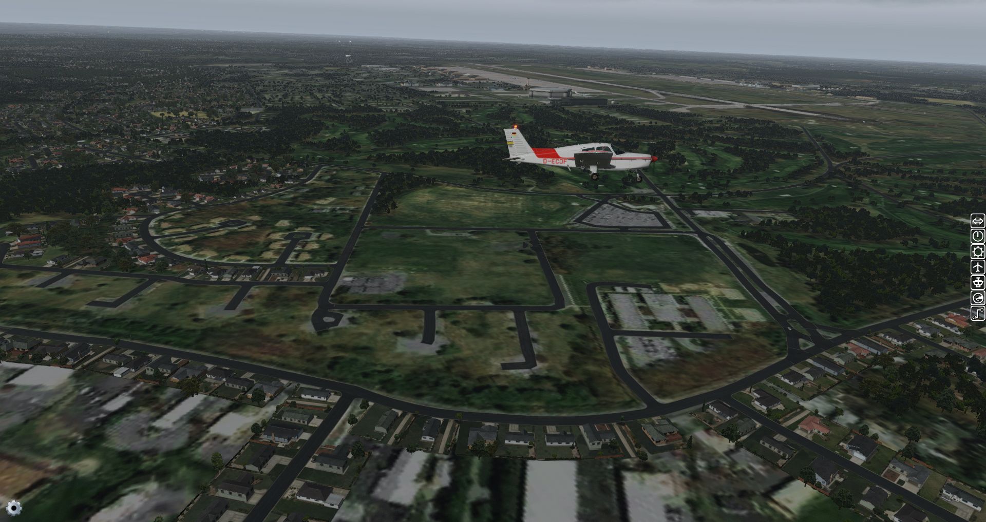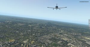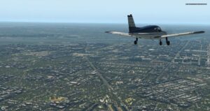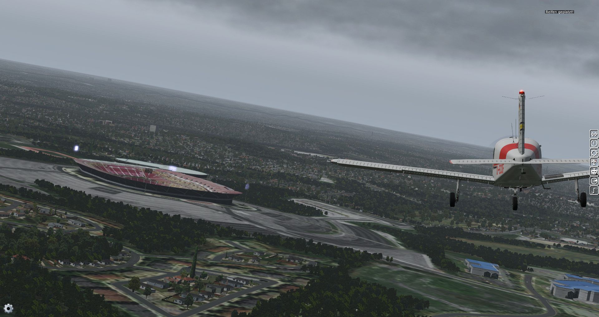 Der erste Flug dient dazu einen Überblick zu bekommen. Dabei nehme ich jedoch einen etwas anderen Weg, als Thomas für den P3D. Erst mal halten wir uns in den Randgebieten der Szenerie auf um die Integreation von AutoGen, Fototextur und Custom Gebäuden zu betrachten. Erst später gehen wir dann in die eigentlichen Kernbereiche wo Drzewiecki die Kontrolle an sich genommen hat. Als Maschine dient dabei ein vFlyteAir Cherokee 140 Classic. Sie hat zwar schon PBR Texturen, ist jedoch im Flugprofil noch nicht wirklich an X-Plane 11 angepasst.