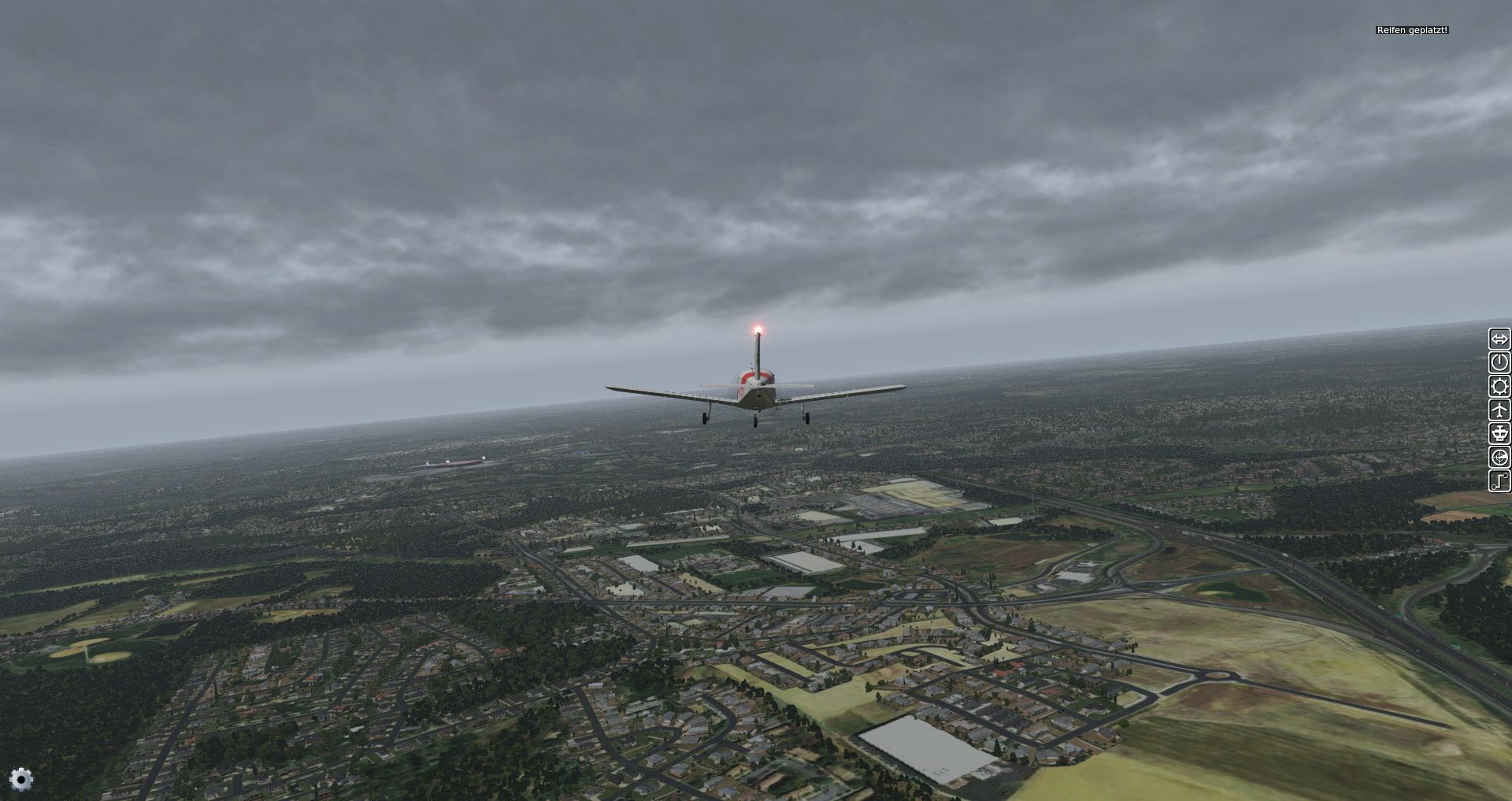 Der erste Flug hat uns einen Überblick über die Szenerie verschafft. Aber obwohl der Dunst und Nebel eine spannende Atmosphäre mit sich brachten, brauchen wir jetzt klare Sicht, um den Texturen wirklich auf den Zahn zu fühlen. Wir nutzen fast das gleiche Flugzeug, nämlich die vFlyteAir Cherokee 140 G in der Glascockpit-Version.