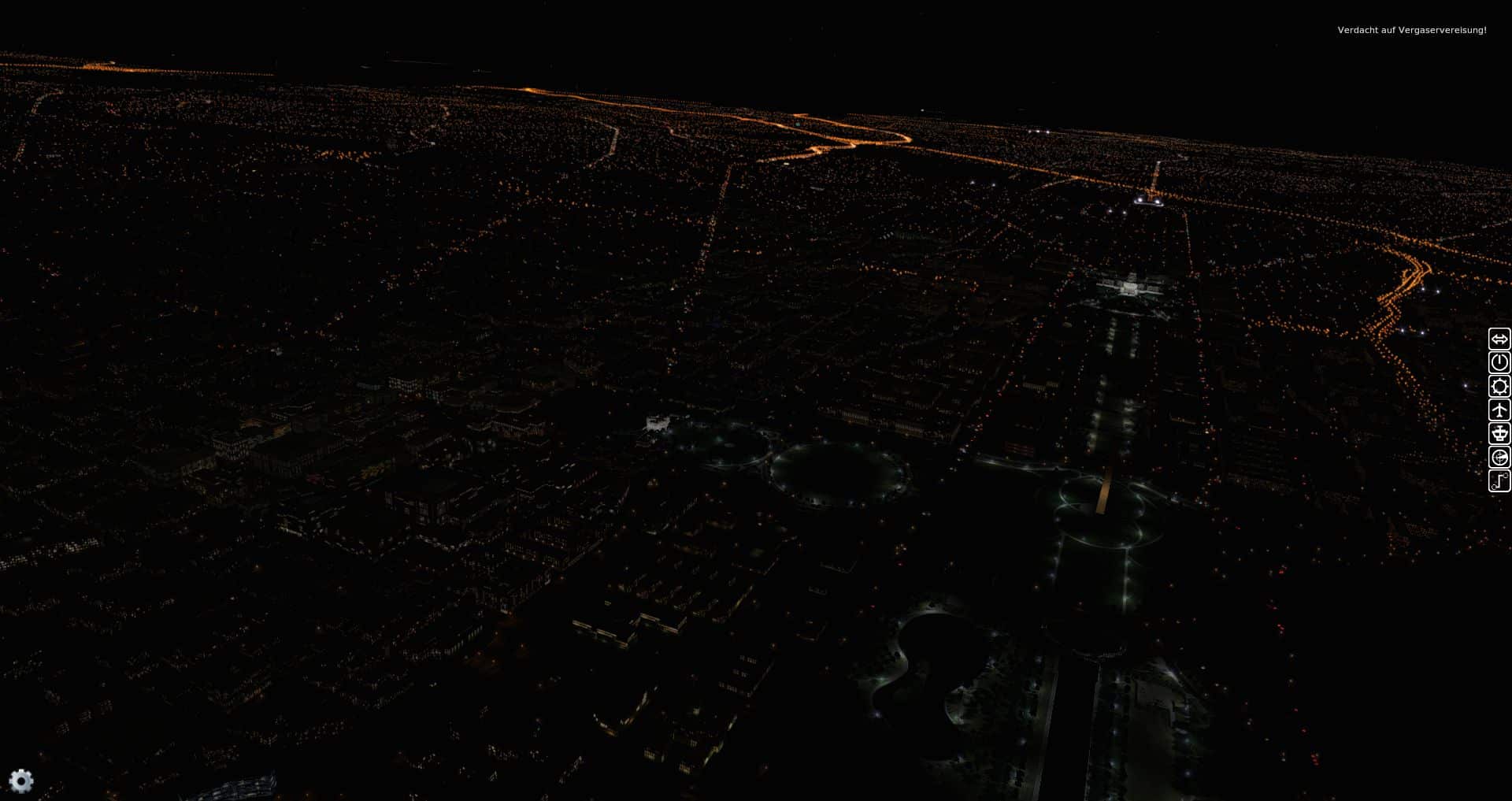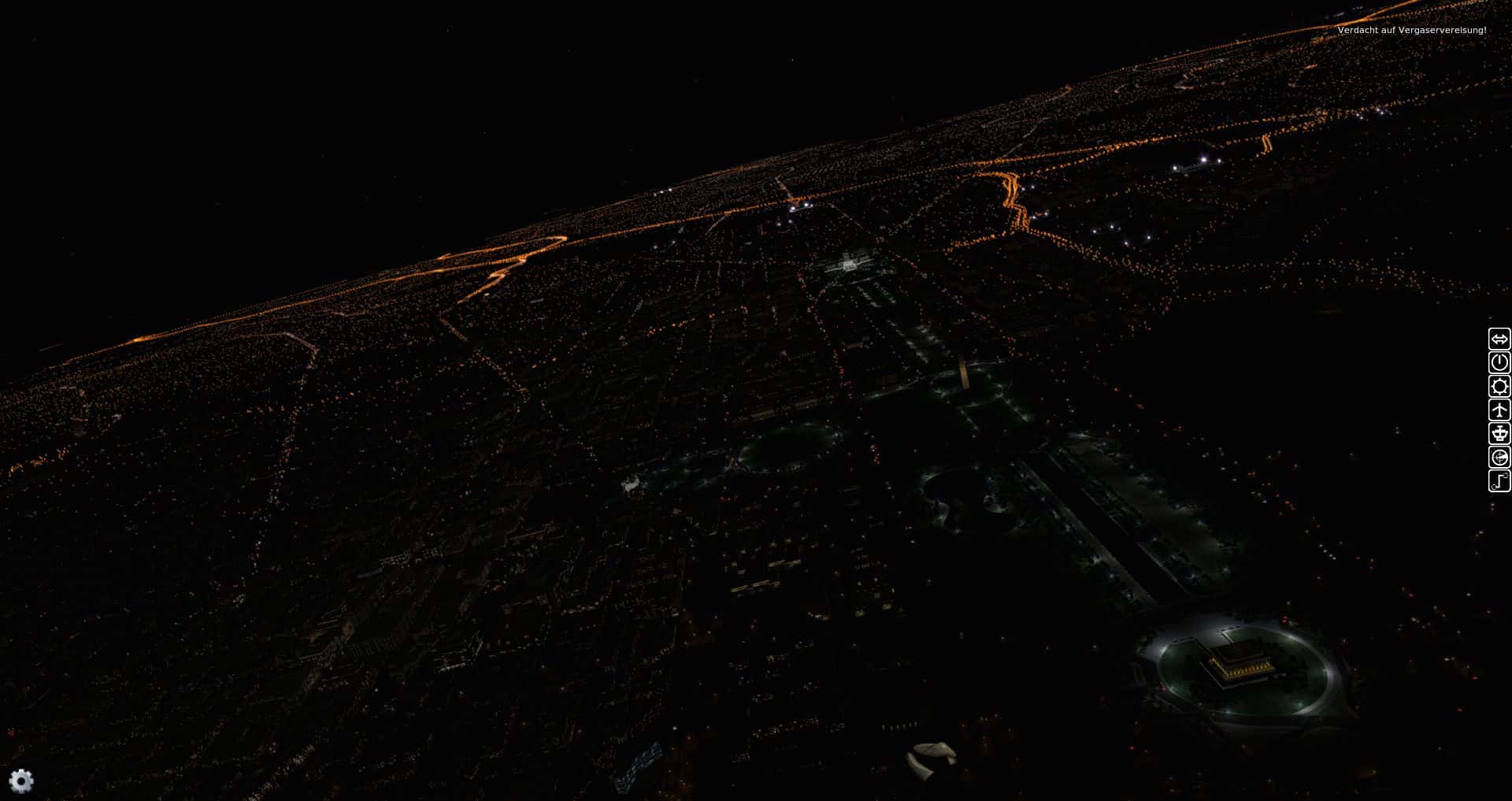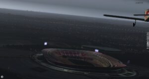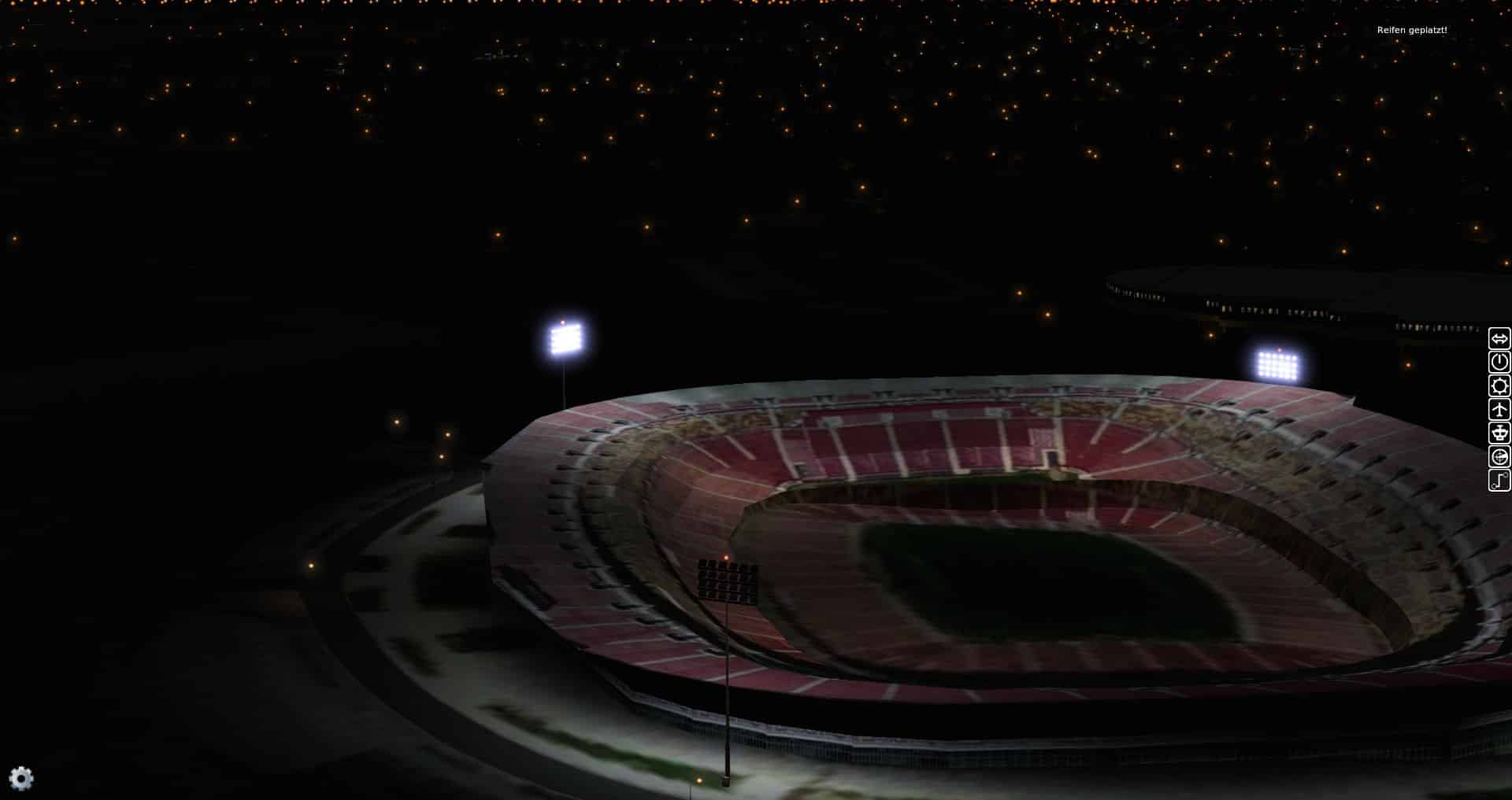 Bei Dunkelheit suchen wir den nächsten Orientierungspunkt. Die Verschmelzung der niedrig aufgelösten Fototextur und des AutoGen verliert so langsam ihren Reiz. Wir folgen dem Lockruf des nächsten Stadions: dem RFK Stadium.