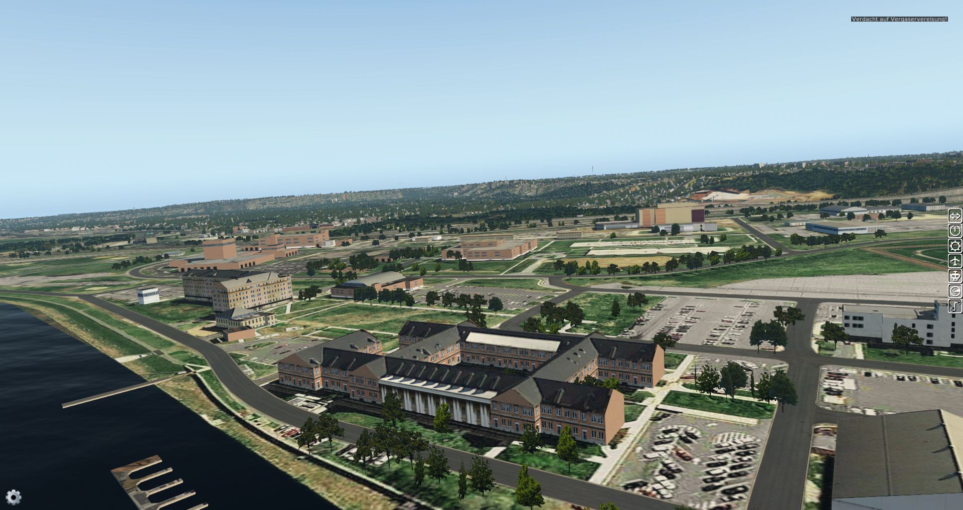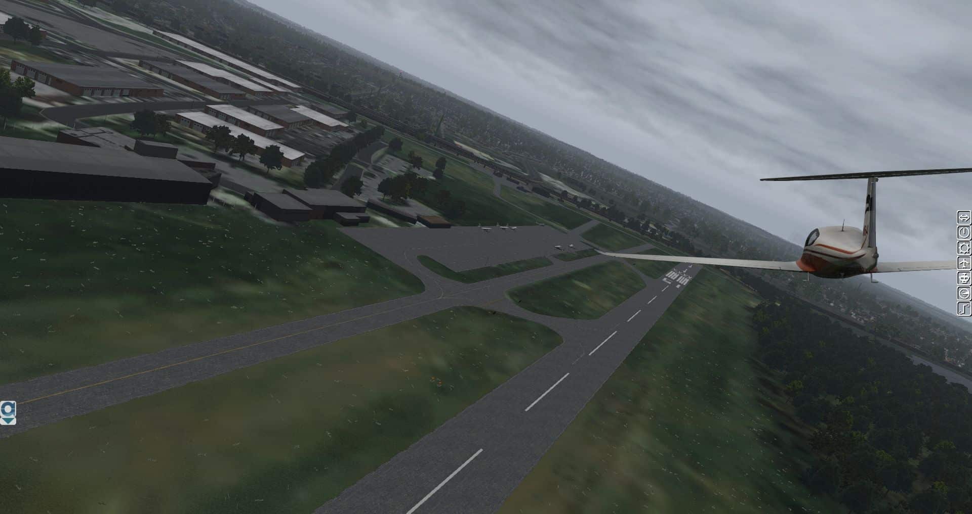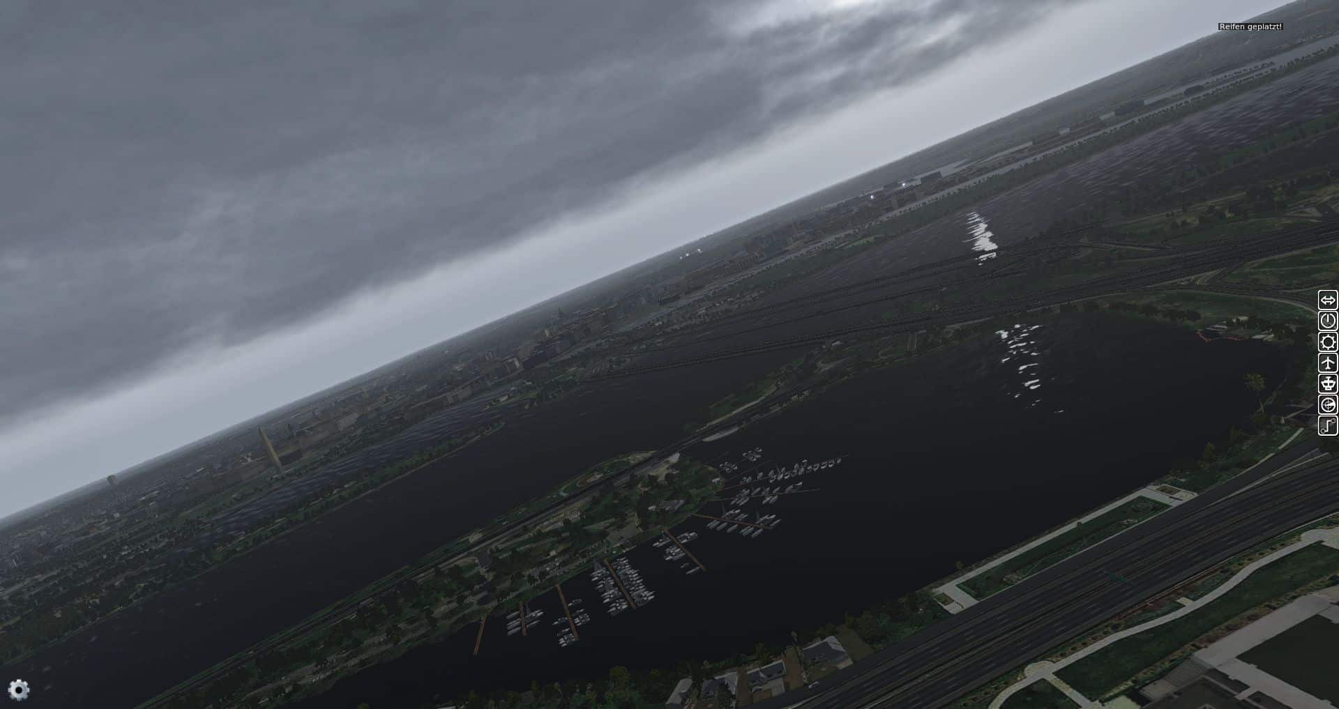 Allerdings werden wir direkt mit einer Bastelei von Drzewiecki Design konfrontiert. Das irreguläre Mesh von X-Plane ist deutlich komplizierter, als das reguläre Mesh vom FSX und seinen Ablegern. Daher gibt es noch keine wirklich komfortablen Möglichkeiten, das Mesh anzupassen. Manche Hersteller kommen damit zurecht , Drzewiecki Design nur mit Schwierigkeiten Während der Anflug an den Kongress halbwegs stimmt gibt es auf der anderen Seite, nach dem Überflug, kein derart starkes Gefälle, das abrupt endet.