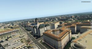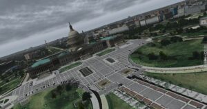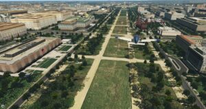 Nach dem Start ergibt sich jedoch ein Problem. Man kennt zwar aus Bildern das Weiße Haus und den Kongress, aber in der Realität fallen sie eher durch ihre Umgebung und geplanten Sichtlinien ins Auge, nicht durch ihre Größe. Daher ist es mit den Defaultgebäuden praktisch nicht möglich die Wahrzeichen der Stadt zu erkennen, wenn man keine Landkarte zur Hand hat.