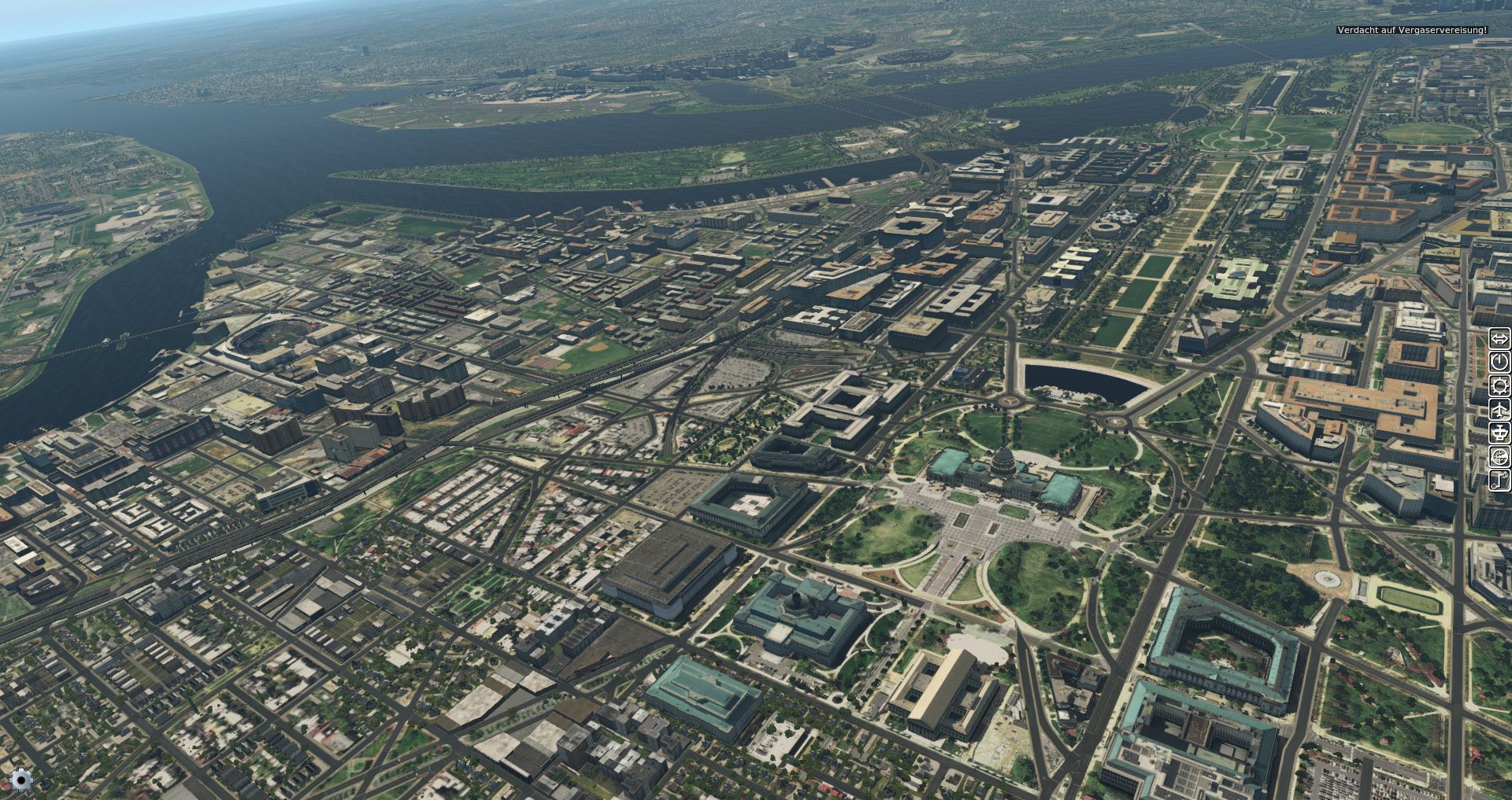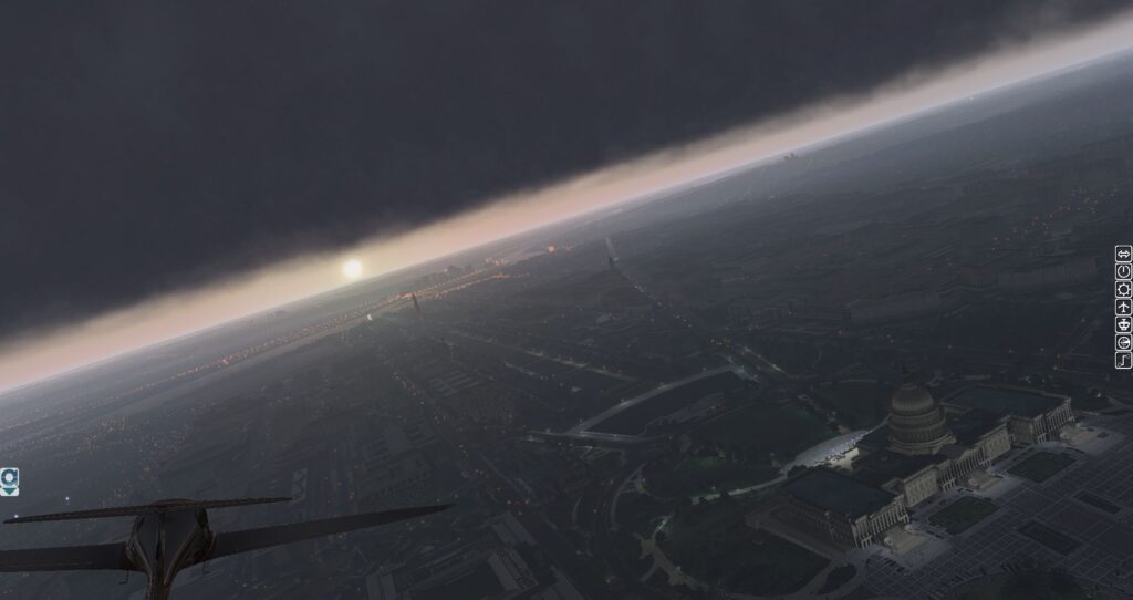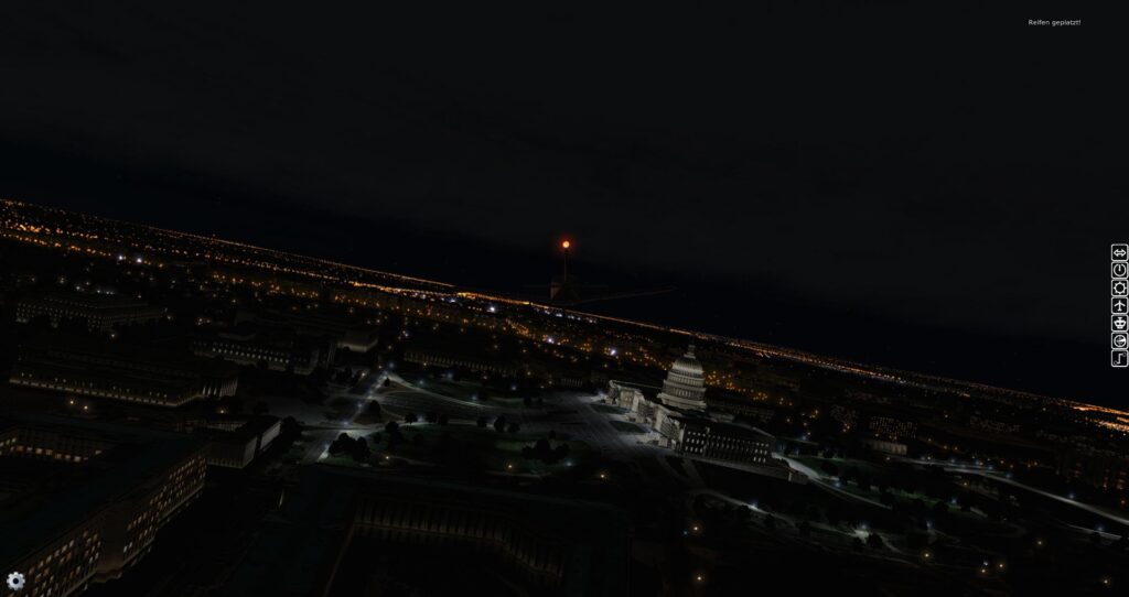Tagsüber bringt das neue Rendering und der Dunst deutlich mehr Dynamik in die Beleuchtung und nachts konnte schon X-Plane 10 auftrumpfen. Doch diese Techniken sind hier noch mal etwas verfeinert worden und sie arbeiten vor allem schneller. Das Ergebnis ähnelt wirklich sehr stark der Realität. Washington D.C. wird nachts tatsächlich derart ausgeleuchtet.