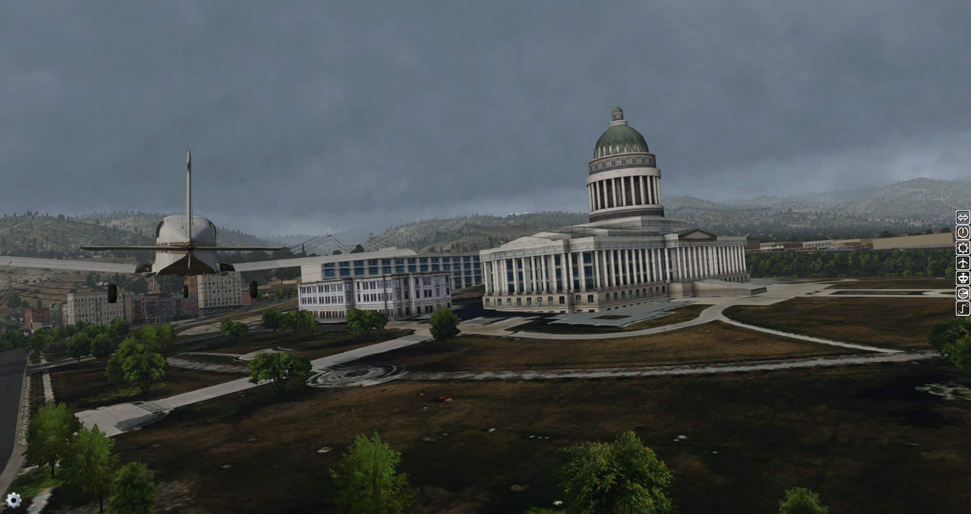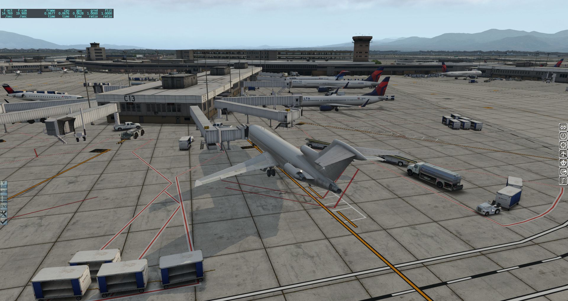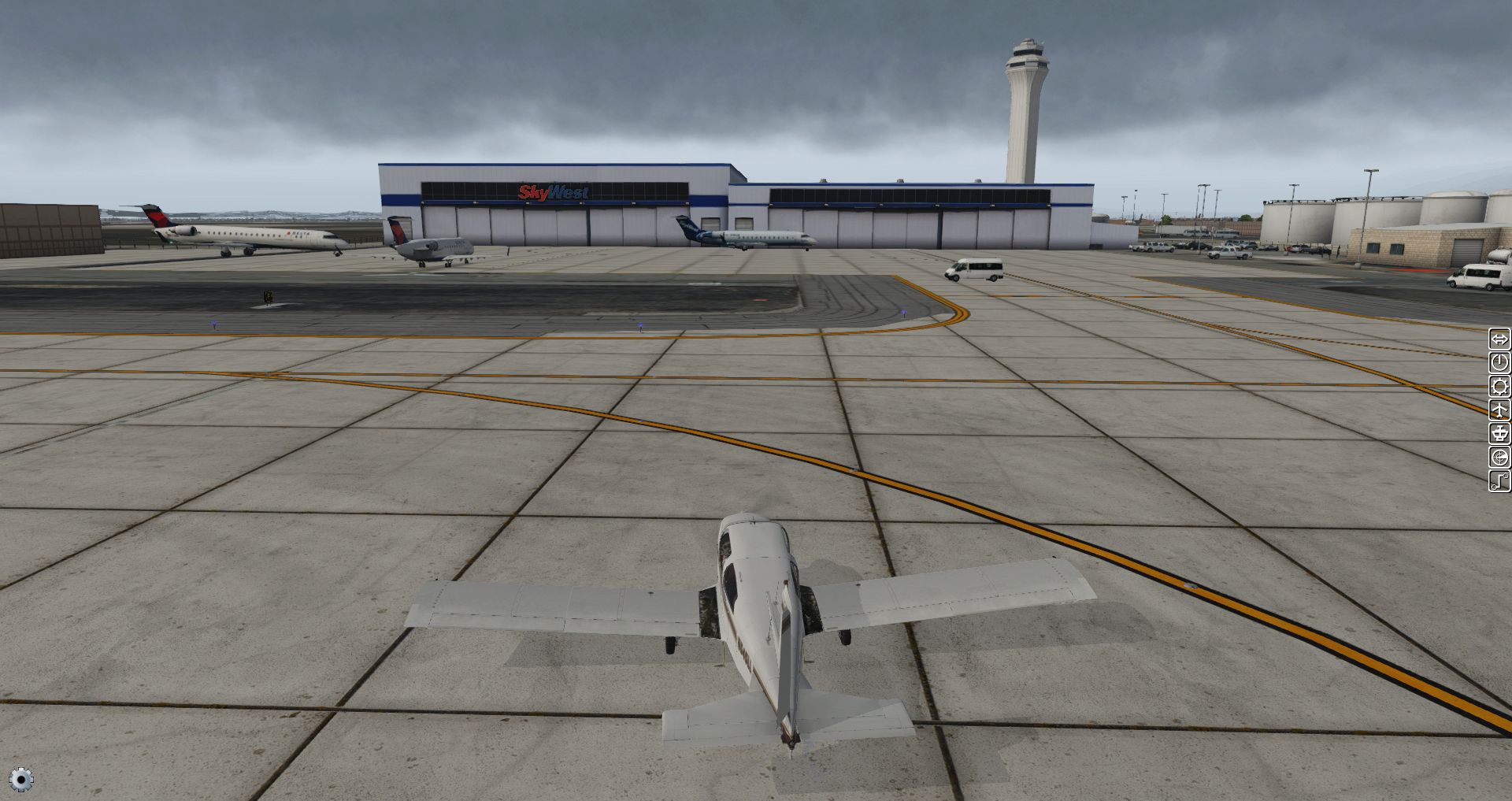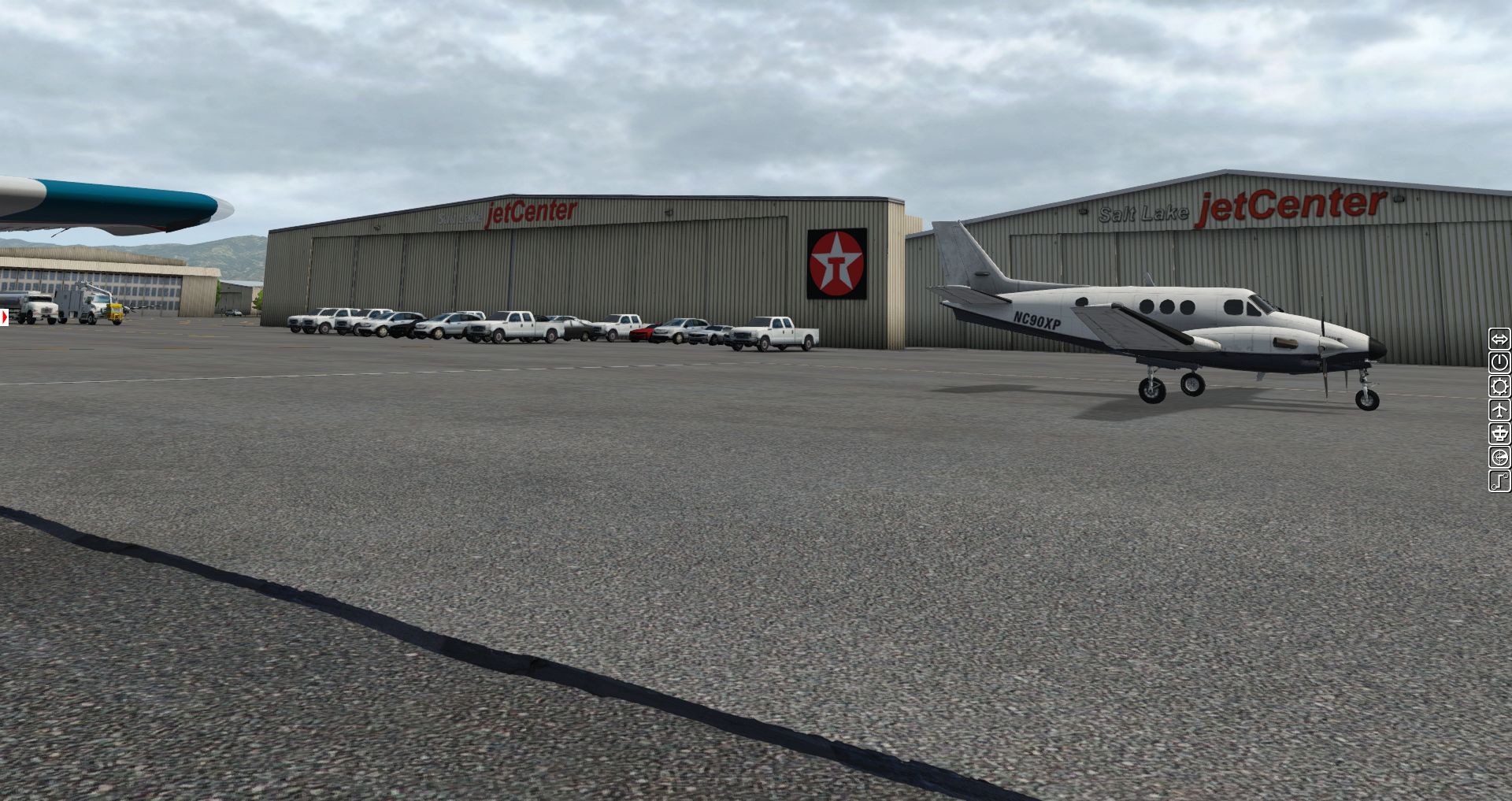Wo die Taxiways und Runways in San Diego noch künstlich wirkten, sind sie hier wesentlich glaubwürdiger und realistischer. Allerdings ist auch unverkennbar, dass MisterX6 das Projekt in der Endphase etwas zu groß wurde. In einigen Randbereichen verließ er sich fast ausschließlich auf die Fototexturen. Auch ein wesentliches Wahrzeichen von Salt Lake City, der Salt Lake Temple, soll erst in einem Update nachgeliefert werden. Auch ein Bug muss noch behoben werden: Aufgrund der teilweise transparenten Texturen funktionieren AI Flugzeuge auf diesen Flughafen noch nicht. Wir werden sehen müssen, ob dieser Bug von MisterX oder von Laminar korrigiert wird. Der deutlichste Hinweis auf dieses Problem ist natürlich die Bemerkung, dass er an seinem nächsten Projekt bereits arbeitet, dieses jedoch deutlich kleiner werden soll.