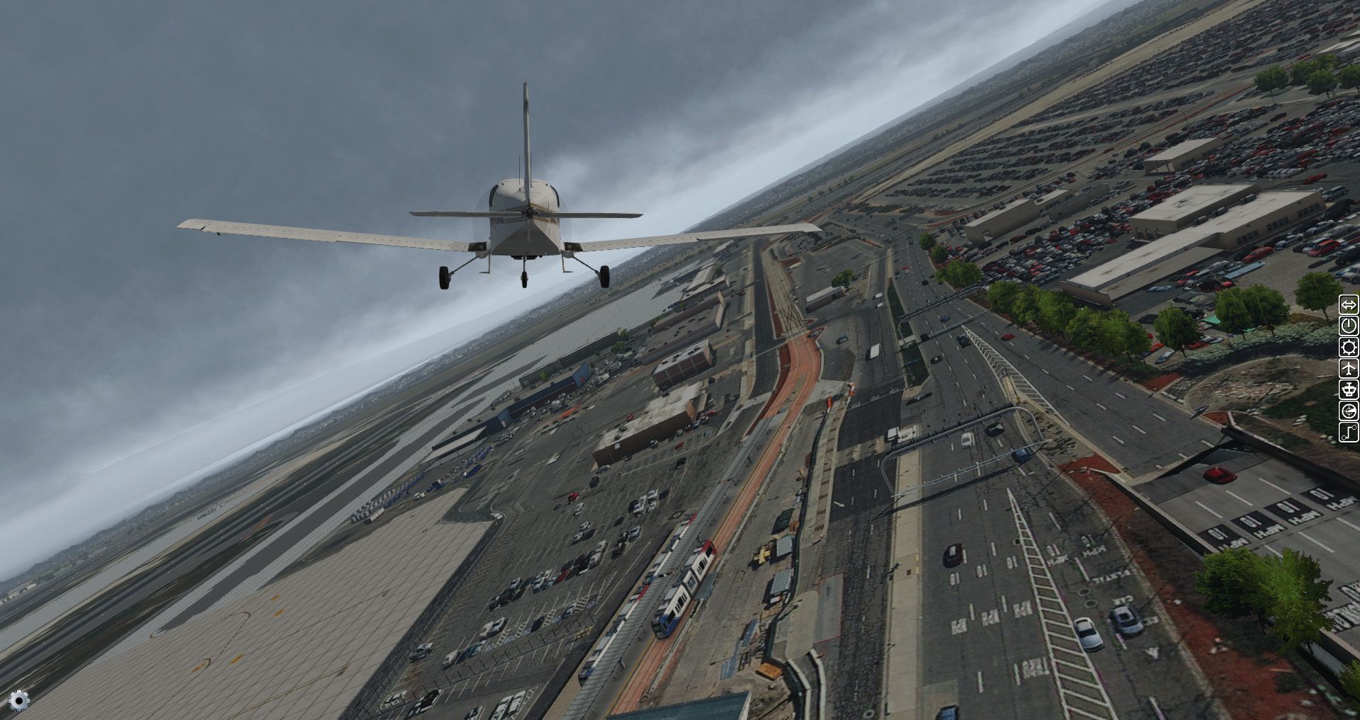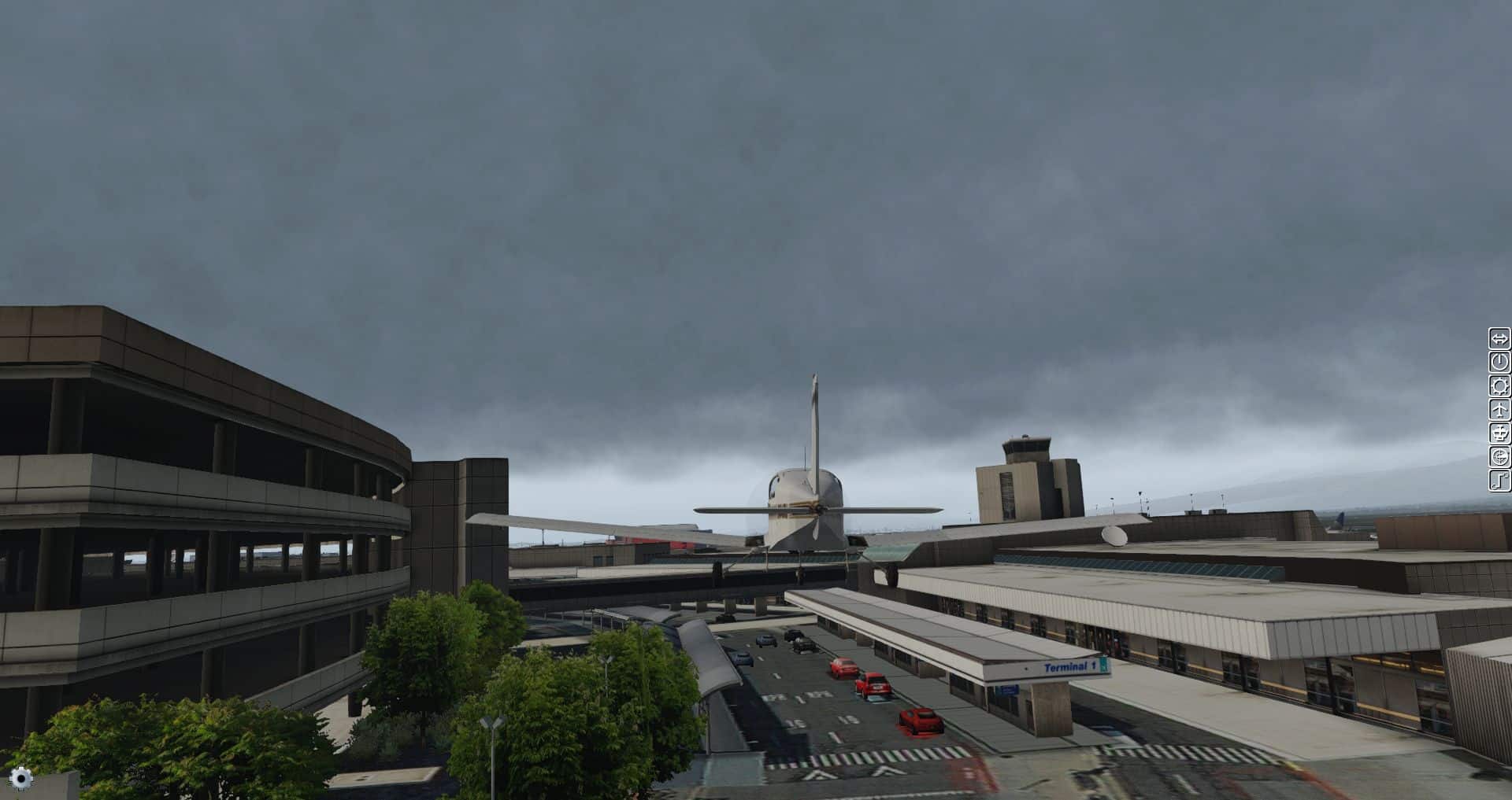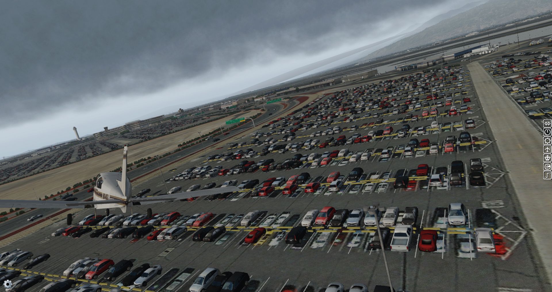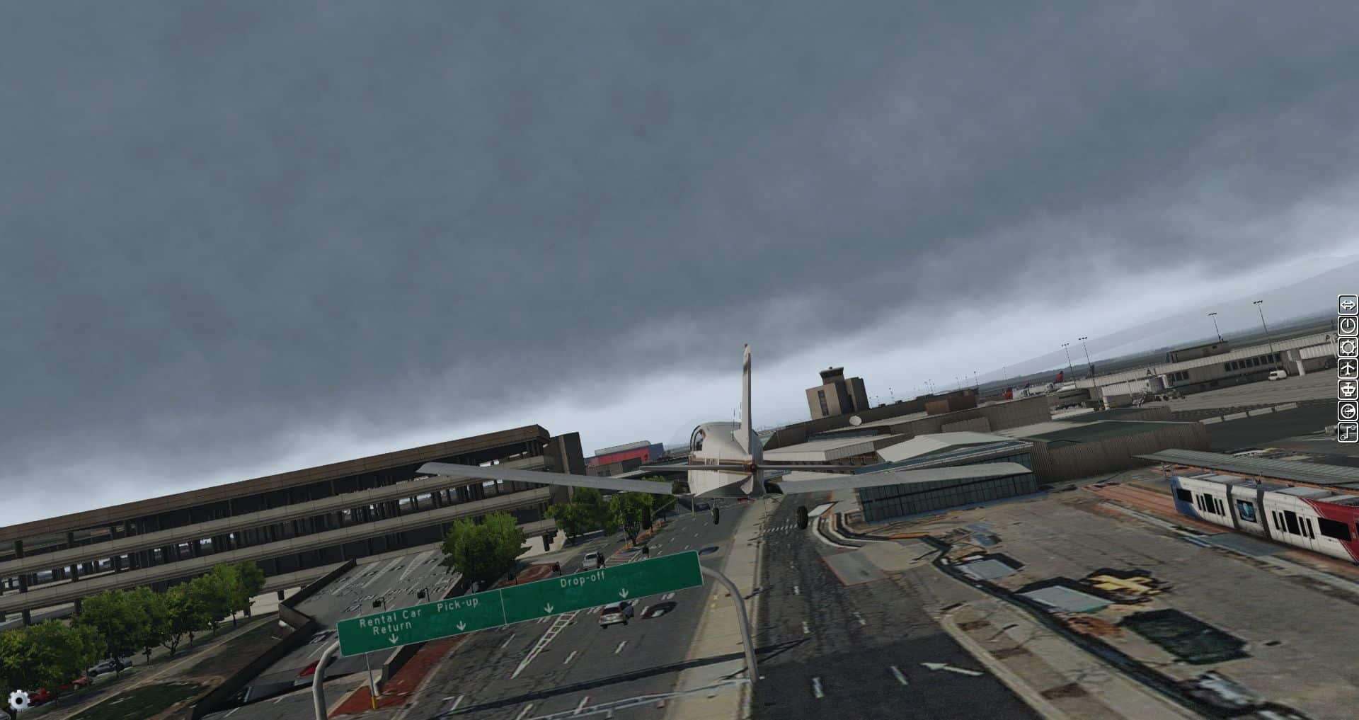 Doch andererseits geht man hier auch über so manche andere Anforderung hinaus. Nicht nur der normale Straßenverkehr fließt hier durch, sondern auch die TRAX, die Straßenbahn von Salt Lake City, die inzwischen einer der Hauptzubringer des Flughafens ist, genauso wie man sich in San Francisco heute häufig auf die BART verlässt um zum Flughafen zu kommen. Und diese Züge fahren tatsächlich auch in X-Plane nach ihrem eigenen Takt.