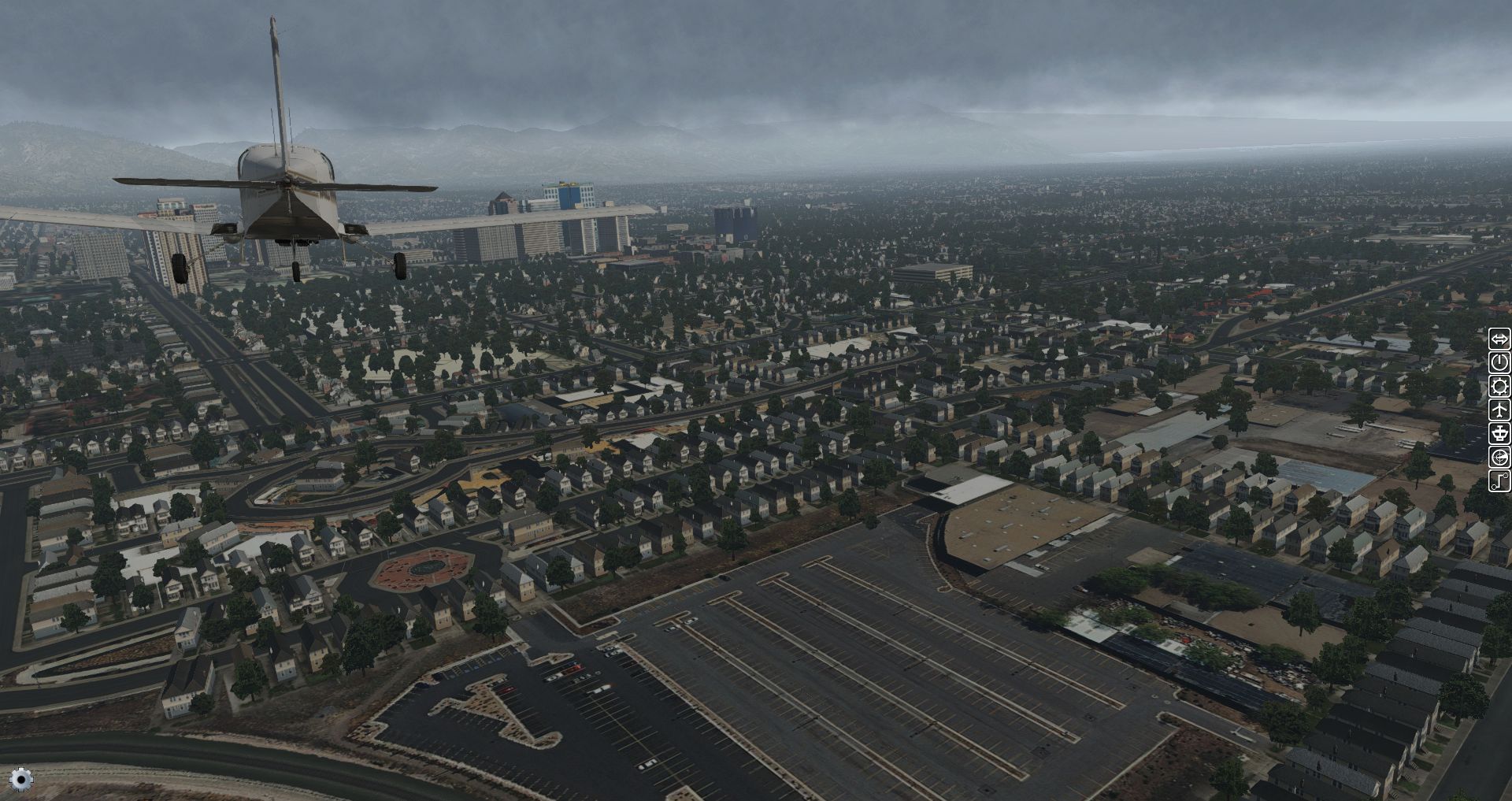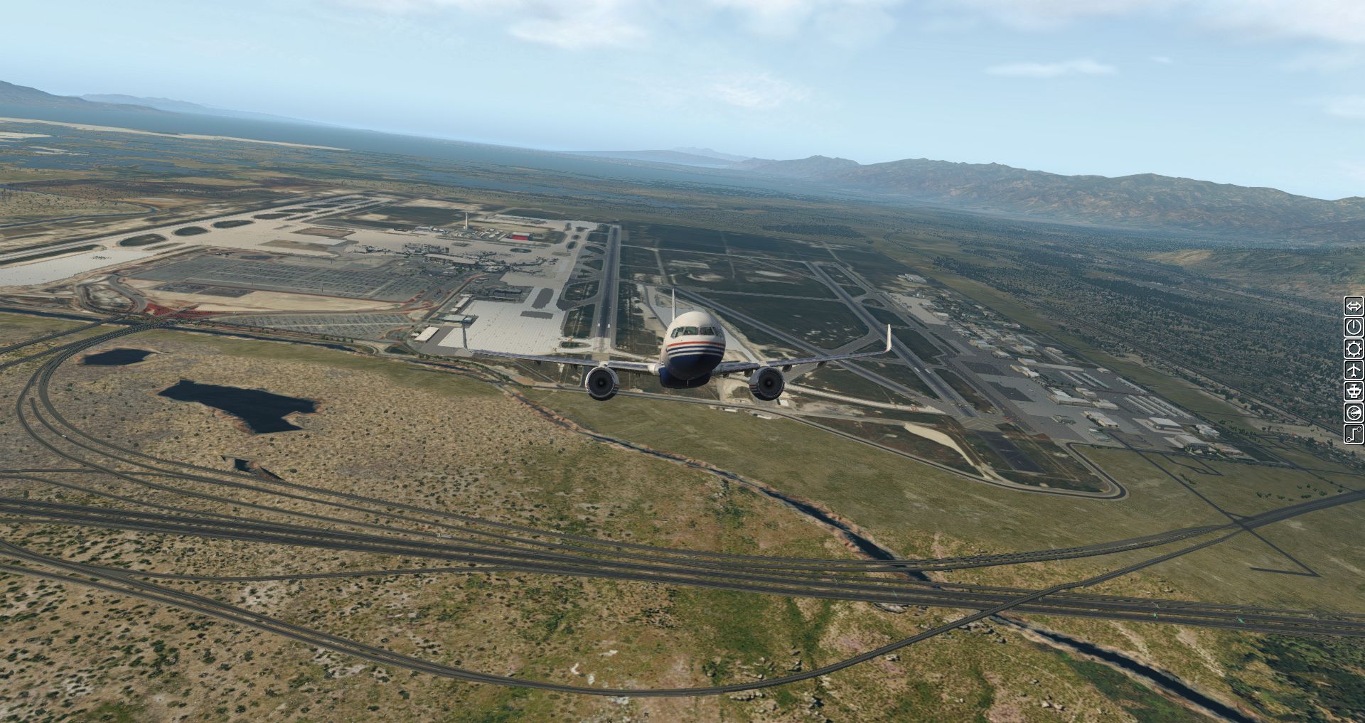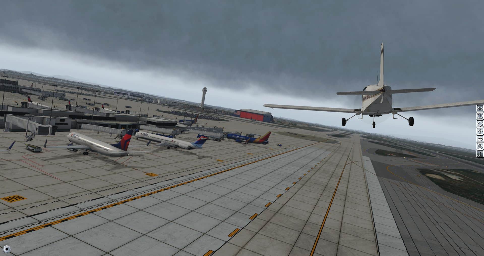Doch andererseits geht man hier auch über so manche andere Anforderung hinaus. Nicht nur der normale Straßenverkehr fließt hier durch, sondern auch die TRAX, die Straßenbahn von Salt Lake City, die inzwischen einer der Hauptzubringer des Flughafens ist, genauso wie man sich in San Francisco heute häufig auf die BART verlässt um zum Flughafen zu kommen. Und diese Züge fahren tatsächlich auch in X-Plane nach ihrem eigenen Takt.