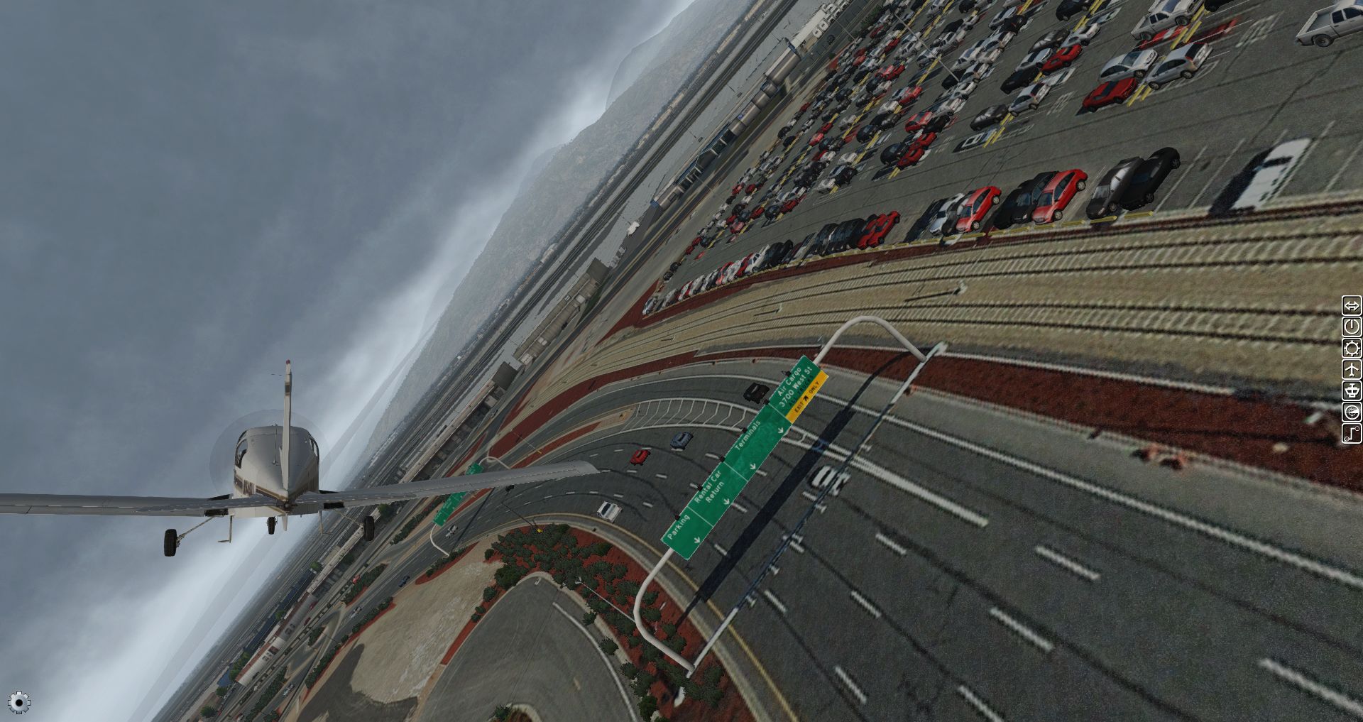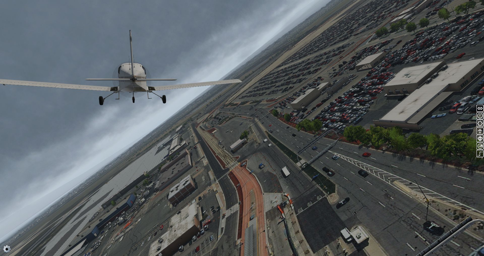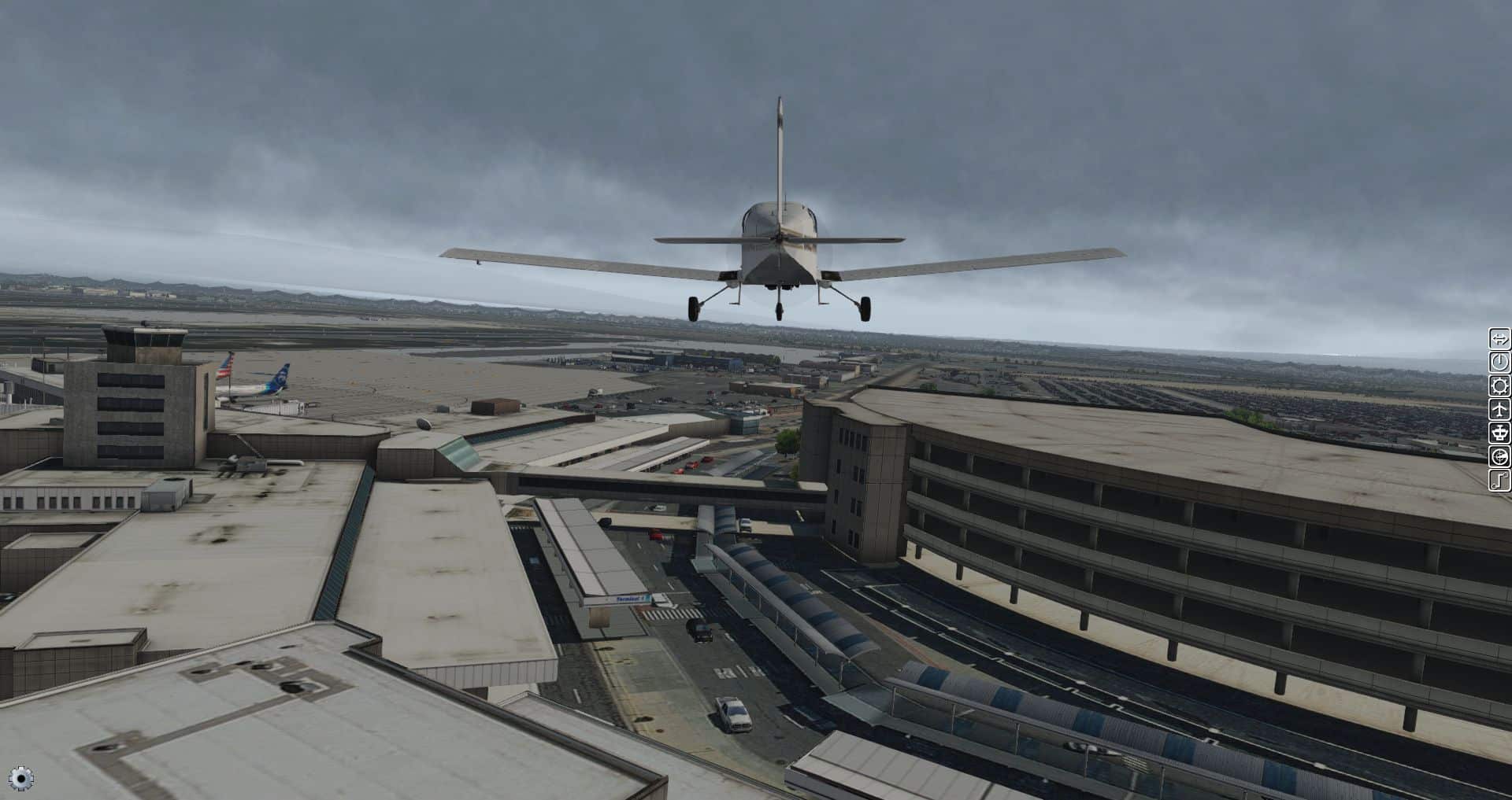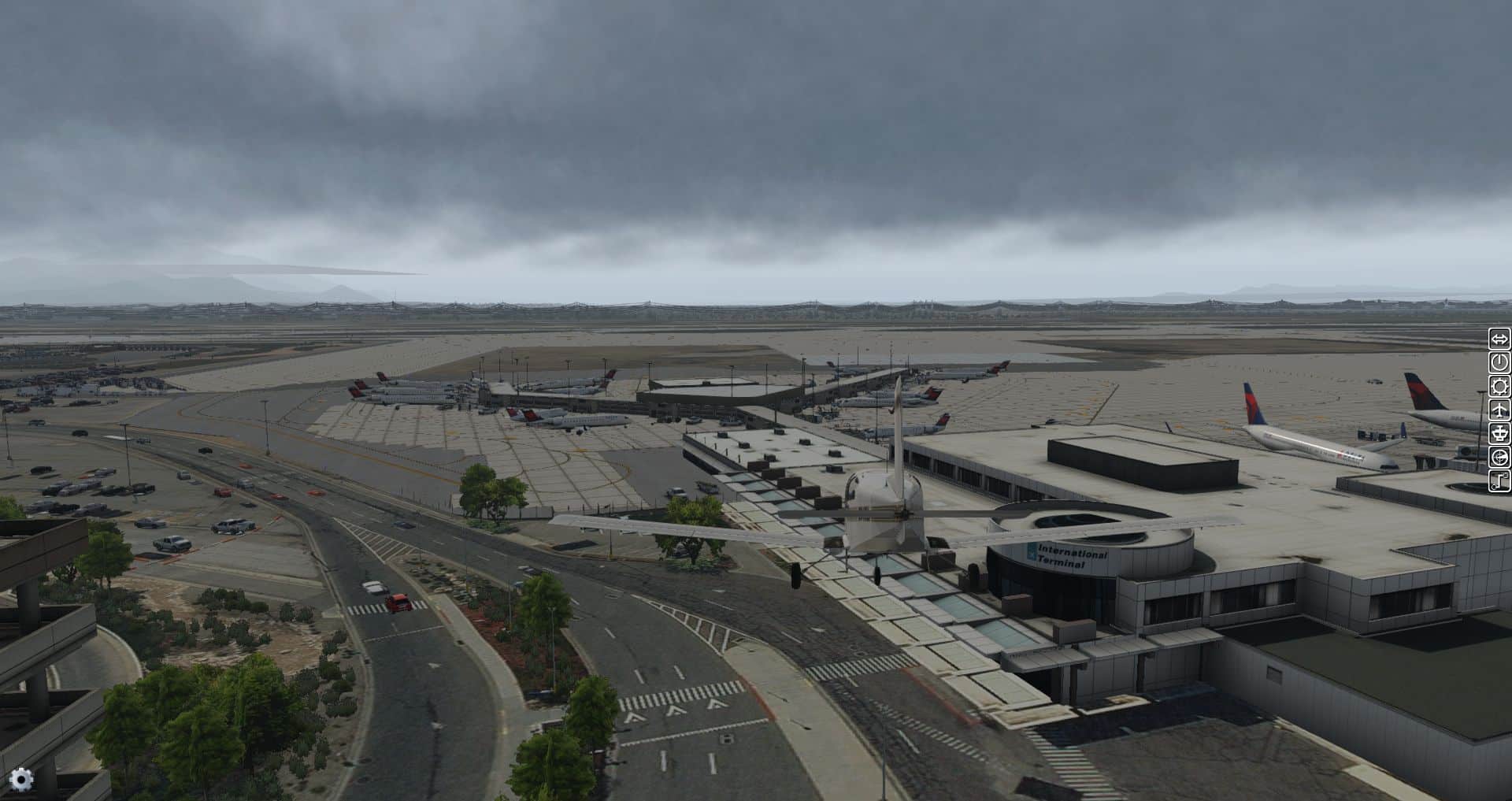 Doch andererseits geht man hier auch über so manche andere Anforderung hinaus. Nicht nur der normale Straßenverkehr fließt hier durch, sondern auch die TRAX, die Straßenbahn von Salt Lake City, die inzwischen einer der Hauptzubringer des Flughafens ist, genauso wie man sich in San Francisco heute häufig auf die BART verlässt um zum Flughafen zu kommen. Und diese Züge fahren tatsächlich auch in X-Plane nach ihrem eigenen Takt.