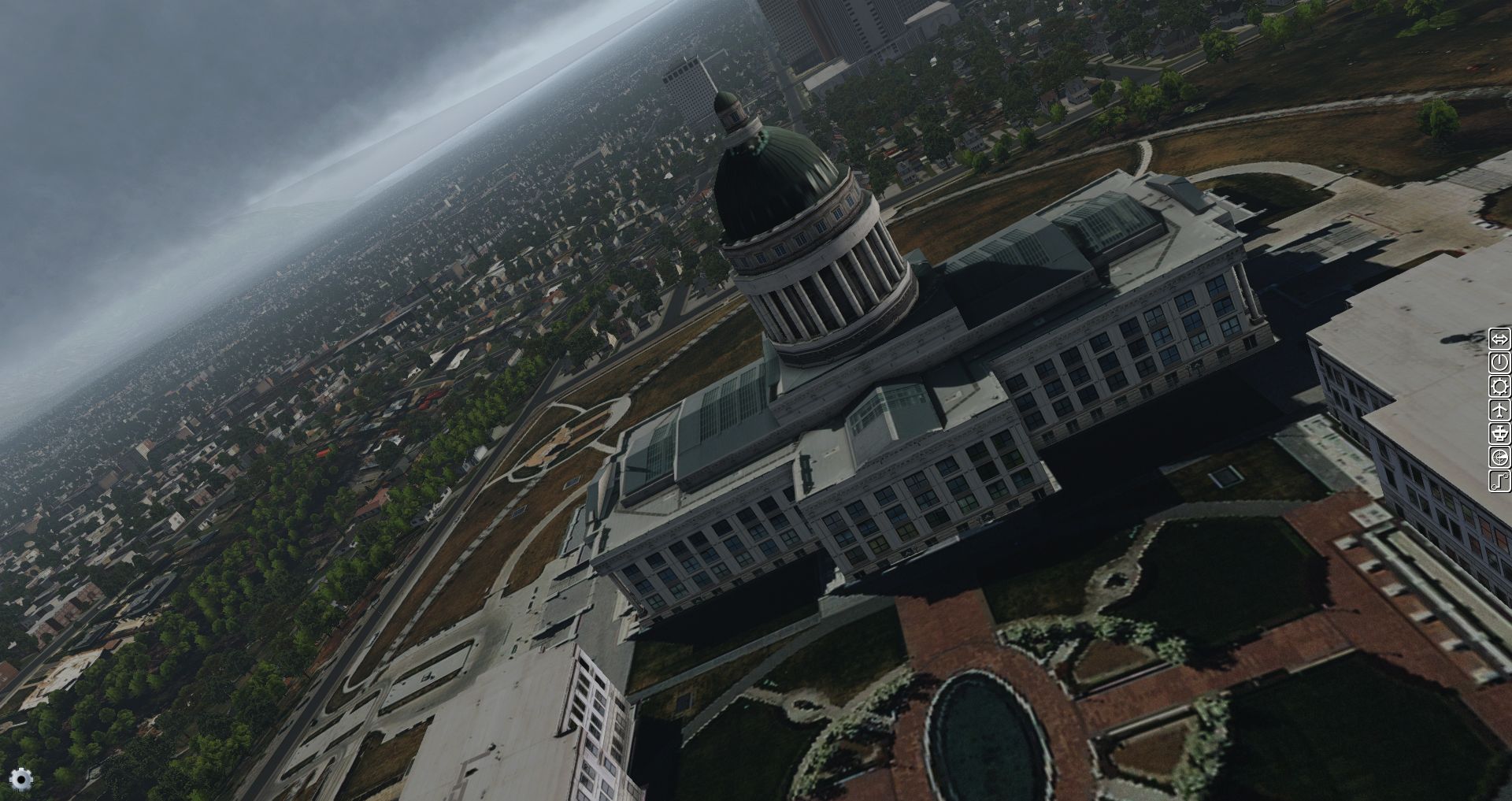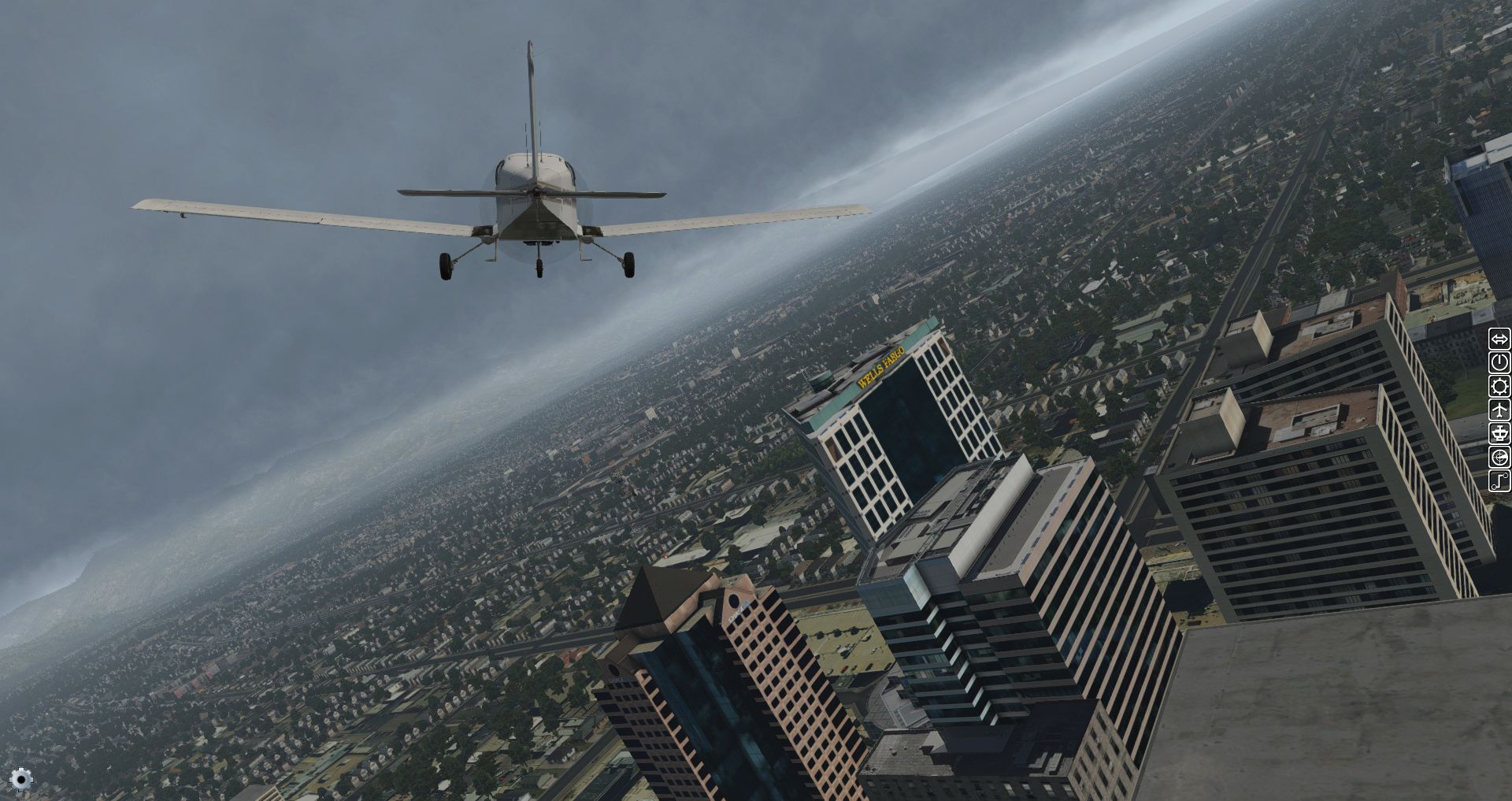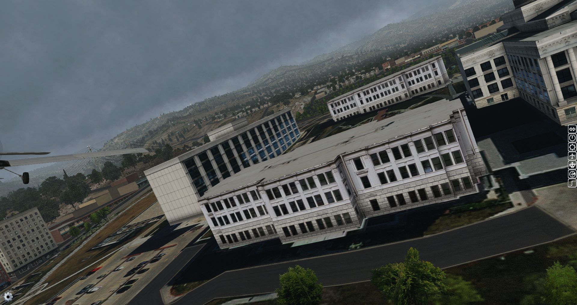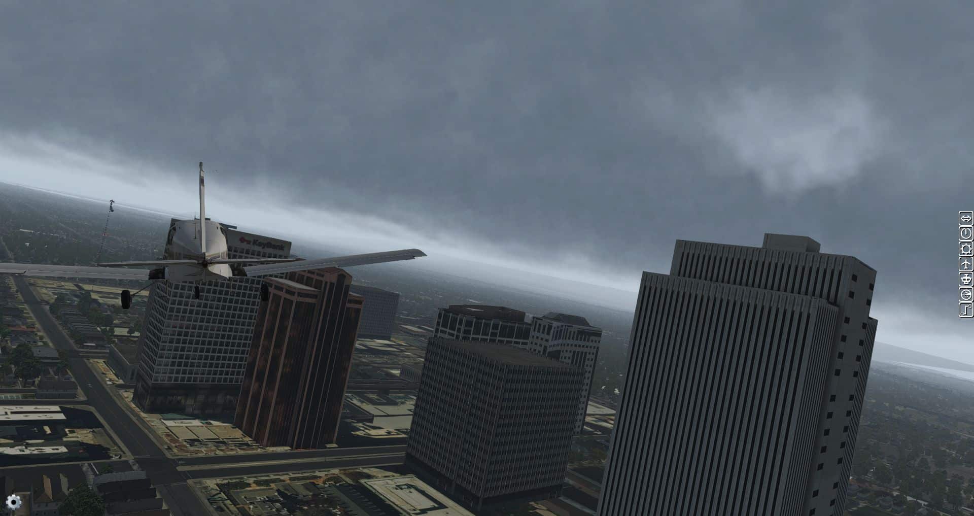 Wir erreichen Downtown, mit seinen spezifischen Hochhäusern. Vor allem das Wells Fargo Gebäude ist dabei hervor zu heben, da es einen Helikopterlandeplatz besitzt, der auch in X-Plane entsprechend modelliert wurde und damit genutzt werden kann.
