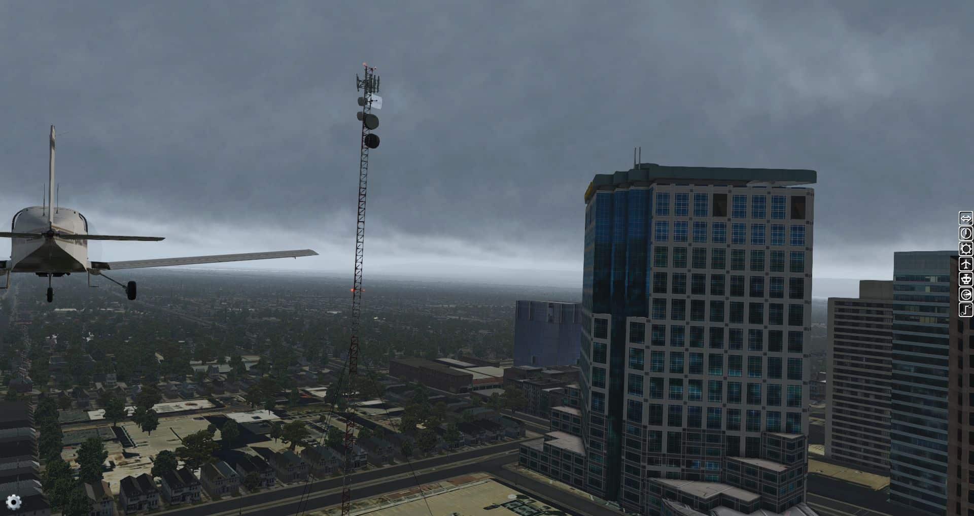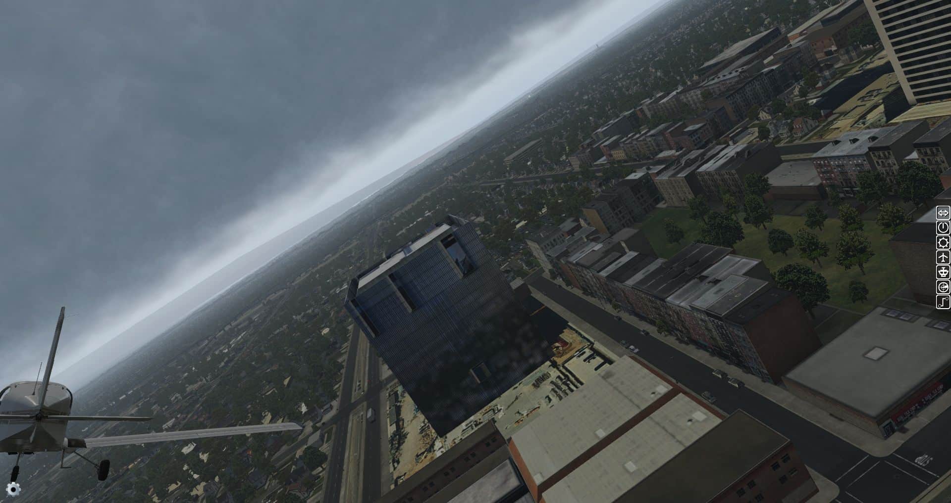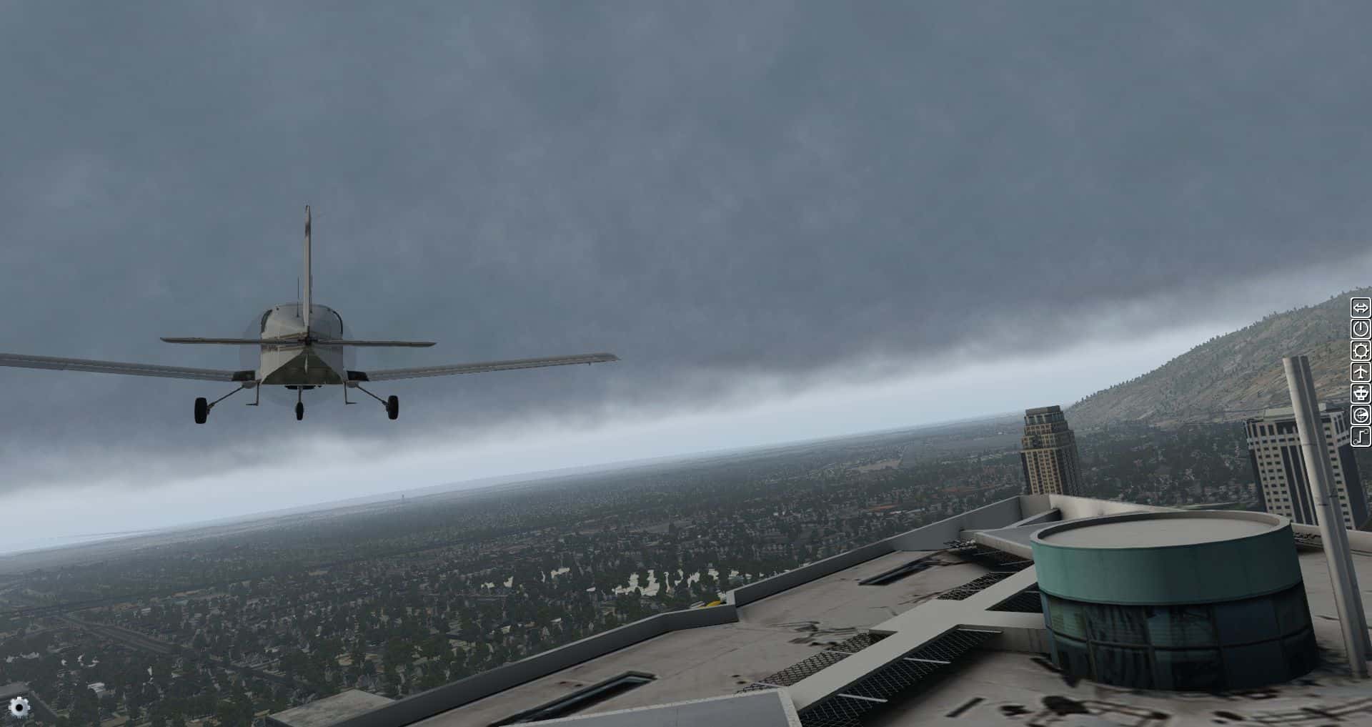 Mister X6 hatte auf seiner Version des Flughafens von San Diego ja schon damit herumgespielt, doch wo es dort noch scheiterte und eher irritierte, funktioniert es im Flug recht gut. Man ist schlichtweg zu schnell und hat überhaupt nicht die Zeit, als dass unser Gehirn kleinere Fehler des Blickwinkels registrieren könnte. Der Effekt würde allerdings platzen, wenn man sich mit einem Helikopter genau vor einer Hochhausfassade platzieren würde. Da der Simulator immer das Flugzeug als Referenzpunkt betrachtet, kann es selbst nicht in der Spiegelung auftauchen. Das ist der Unterschied zwischen PBR und dem was Game Engines daraus machen.