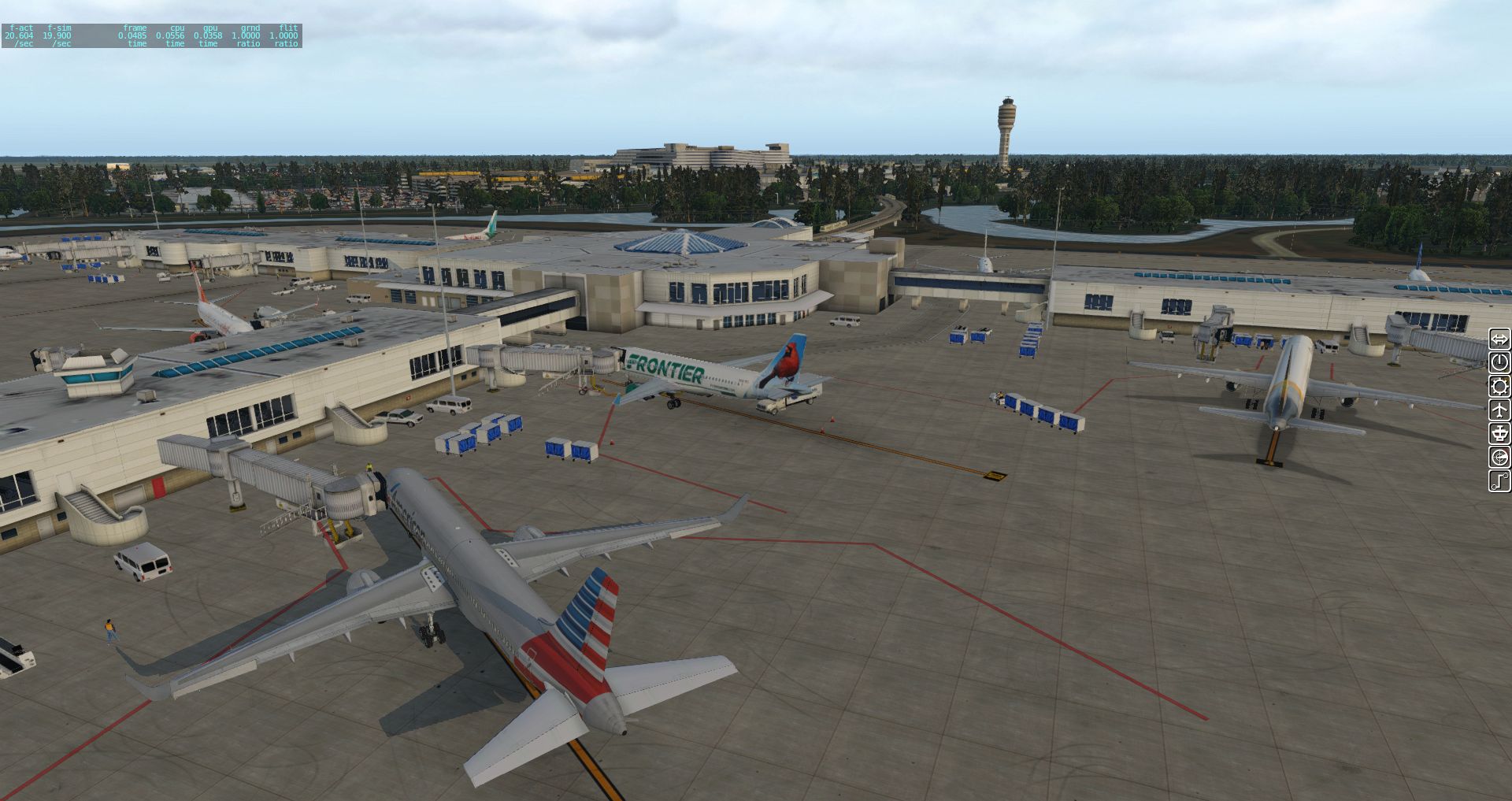 Insgesamt ein sehr abwechslungsreicher Flughafen mit zahlreichen Lichteffekten für X-Plane 11 der trotz vieler Details eine gute Performance an den Tag legt, denn auch hier sind zahlreiche Bodenfahrzeuge unterwegs und auch X-Life wird unterstützt.