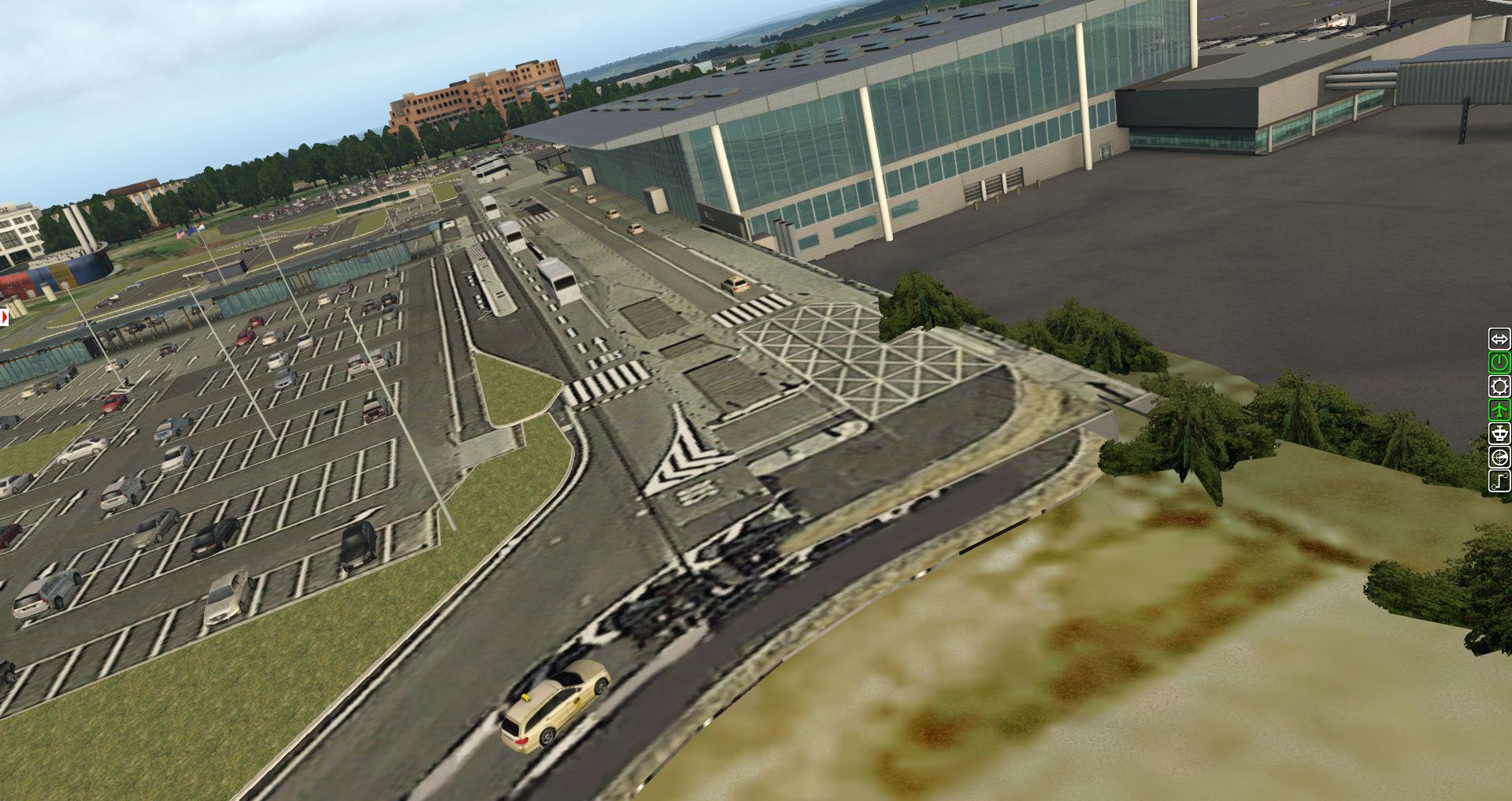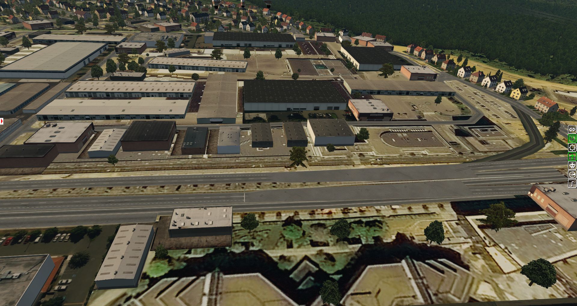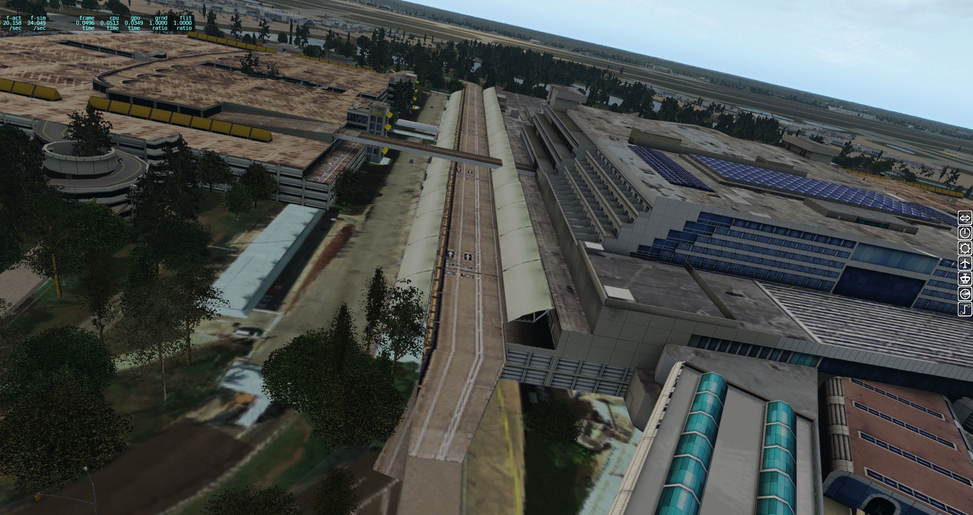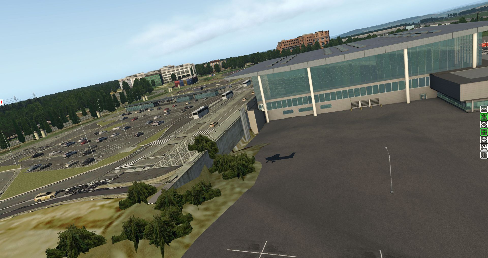 Wir erhalten einen ersten Überblick über die verschiedenen Texturen und wie der Flughafen in die Landschaft eingebettet wurde. Bis zu einer gewissen Grenze ganz OK, aber es gibt auch immer wieder Fehler.