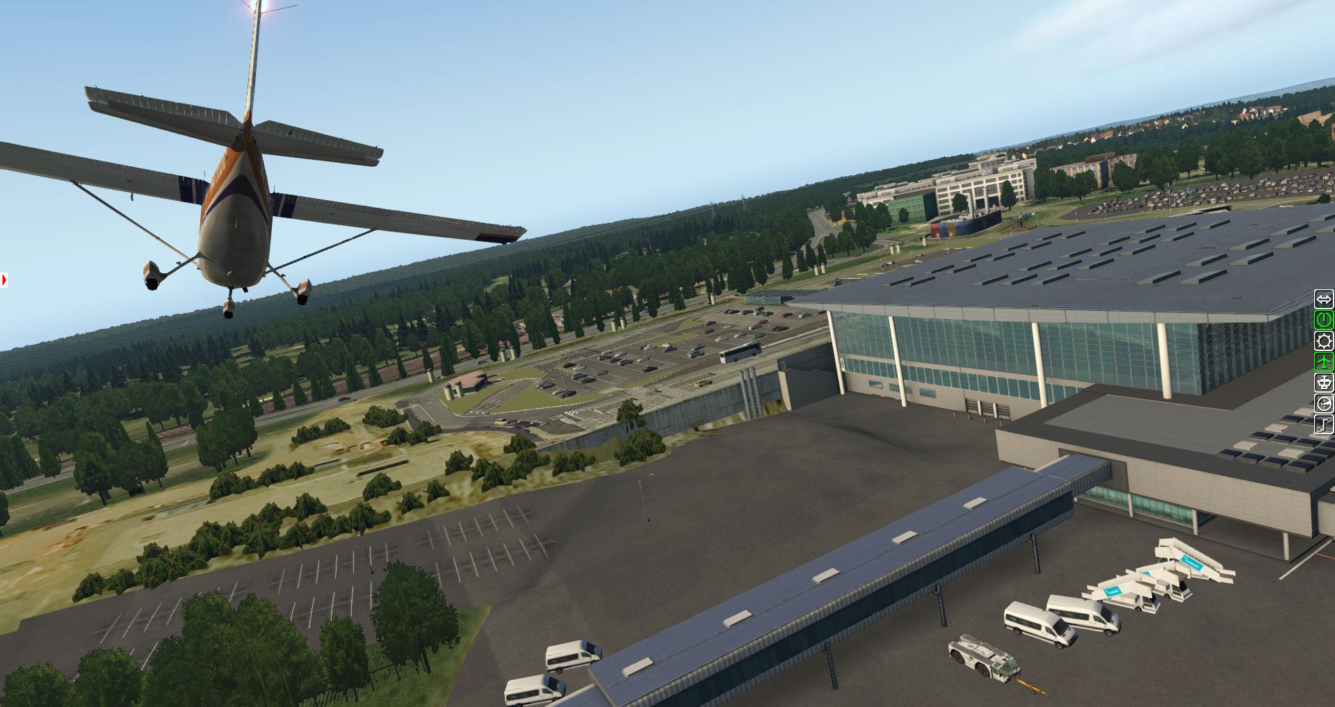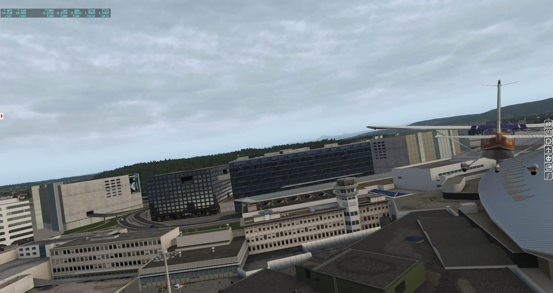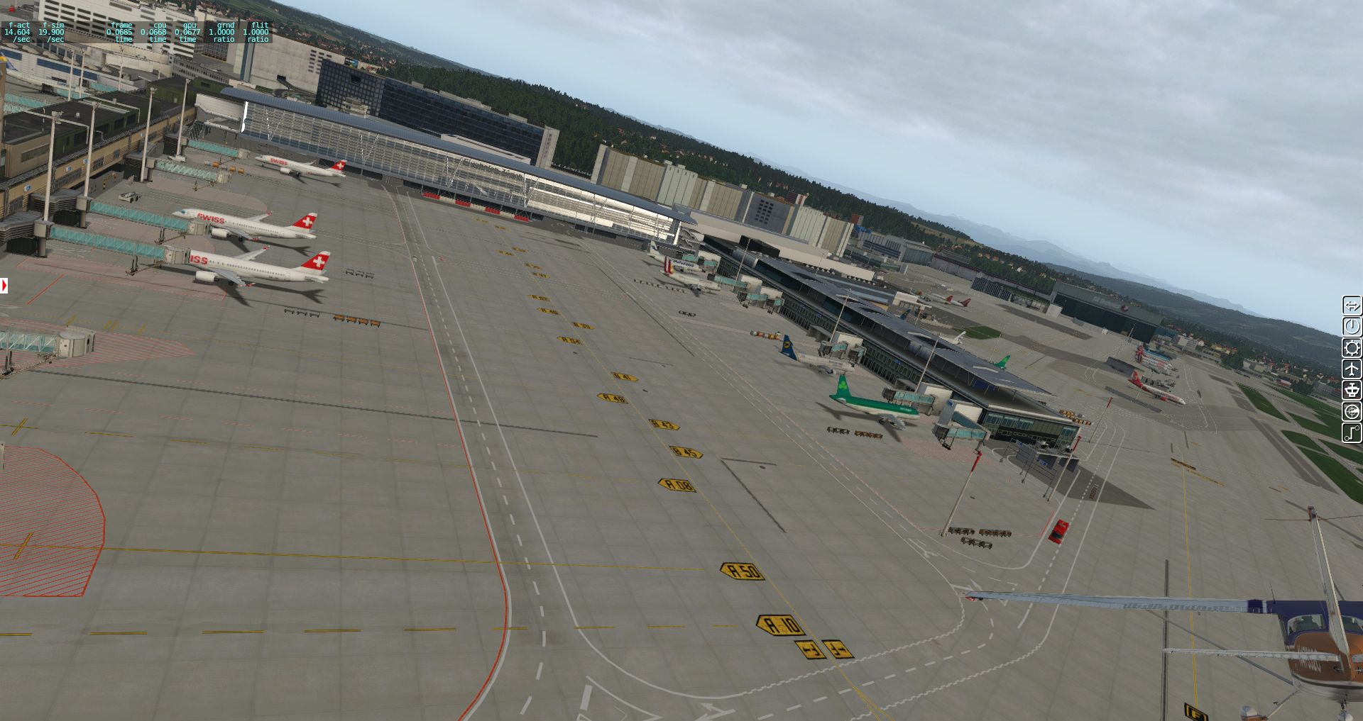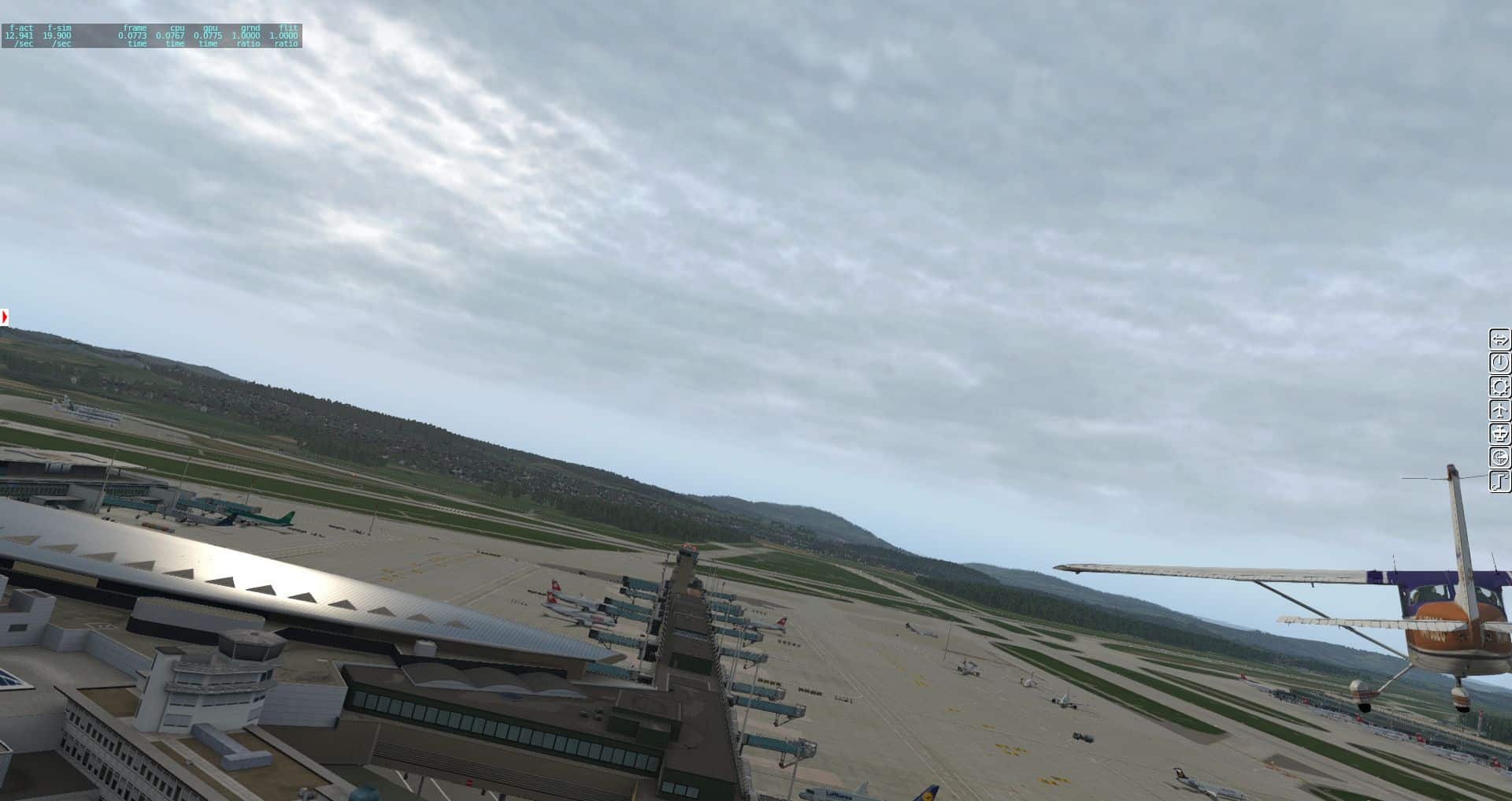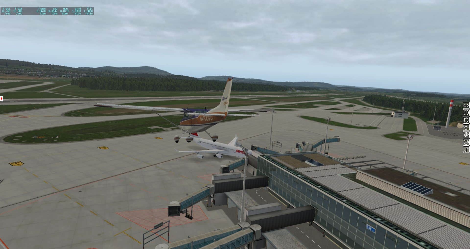 Wir erhalten einen ersten Überblick über die verschiedenen Texturen und wie der Flughafen in die Landschaft eingebettet wurde. Bis zu einer gewissen Grenze ganz OK, aber es gibt auch immer wieder Fehler.