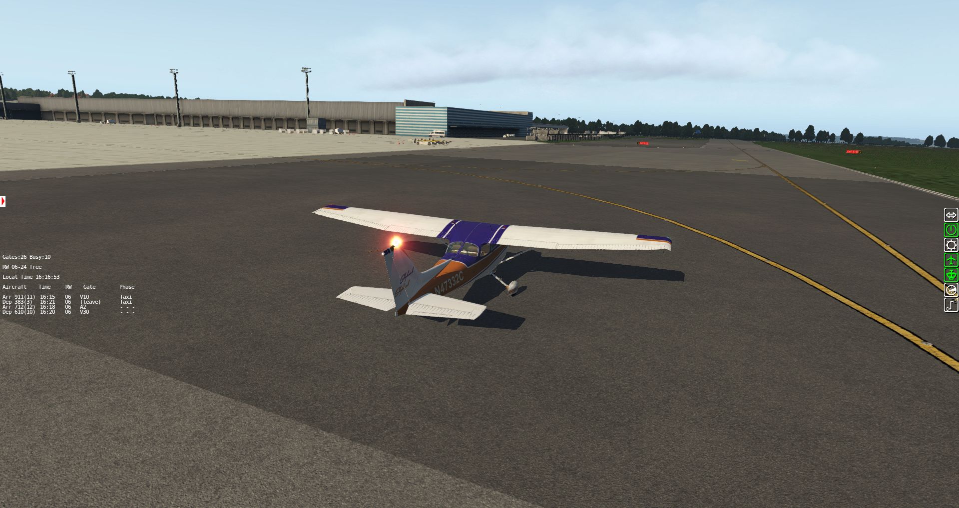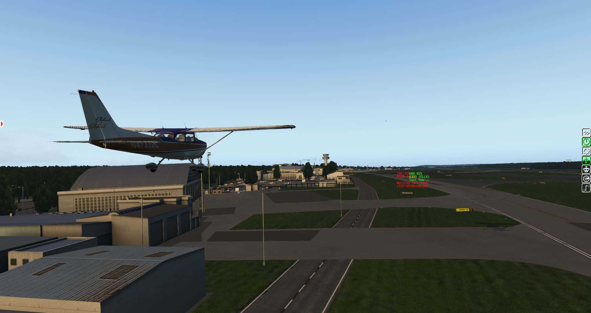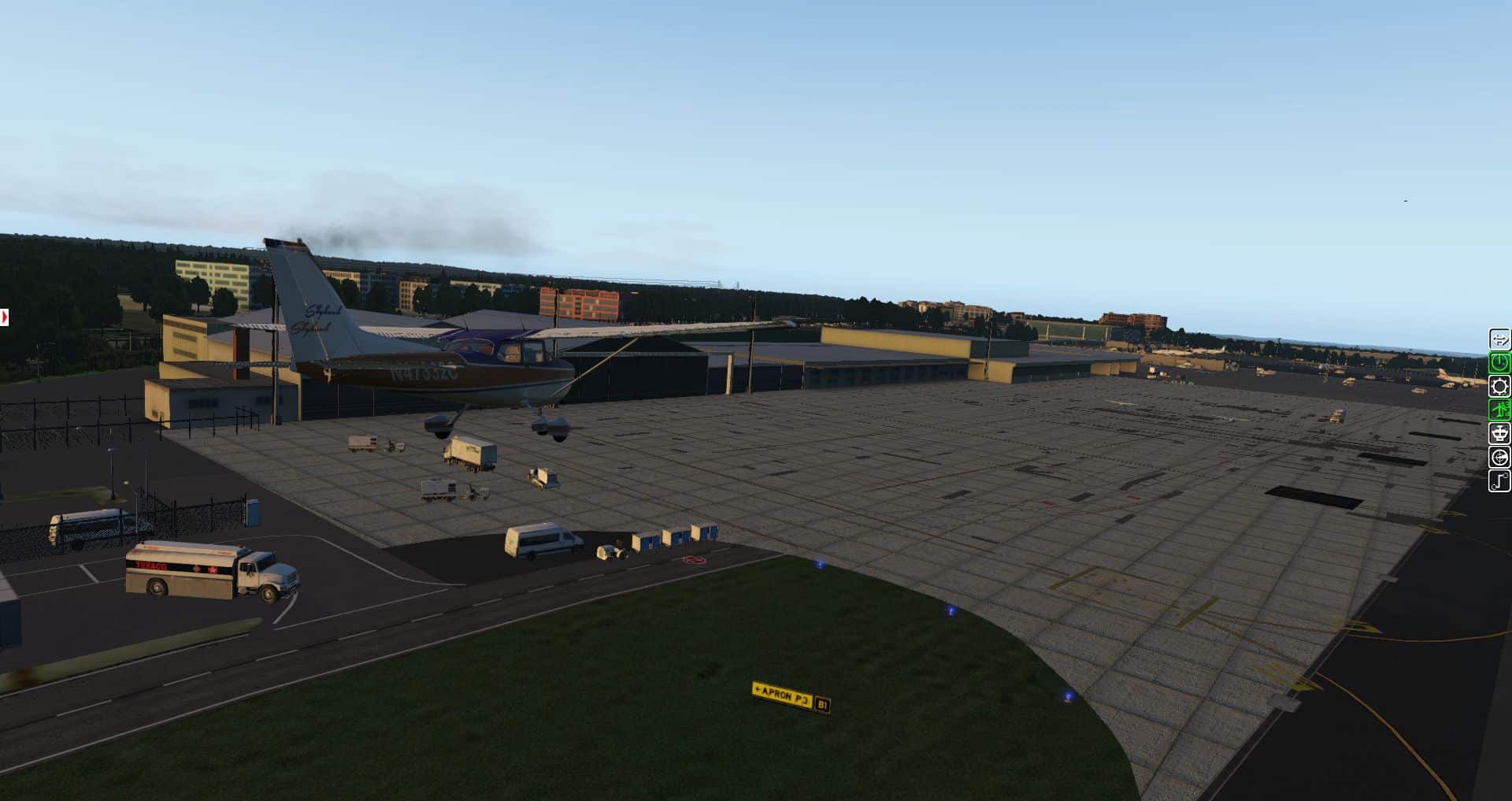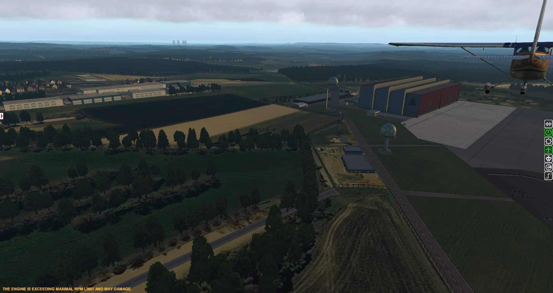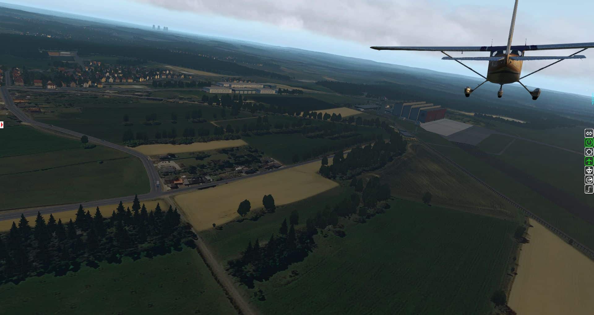 Hinter den Hangars hört die Szenerie auch schon auf. Die Kühltürme in der Ferne sind aus den VFR-Landmarks.