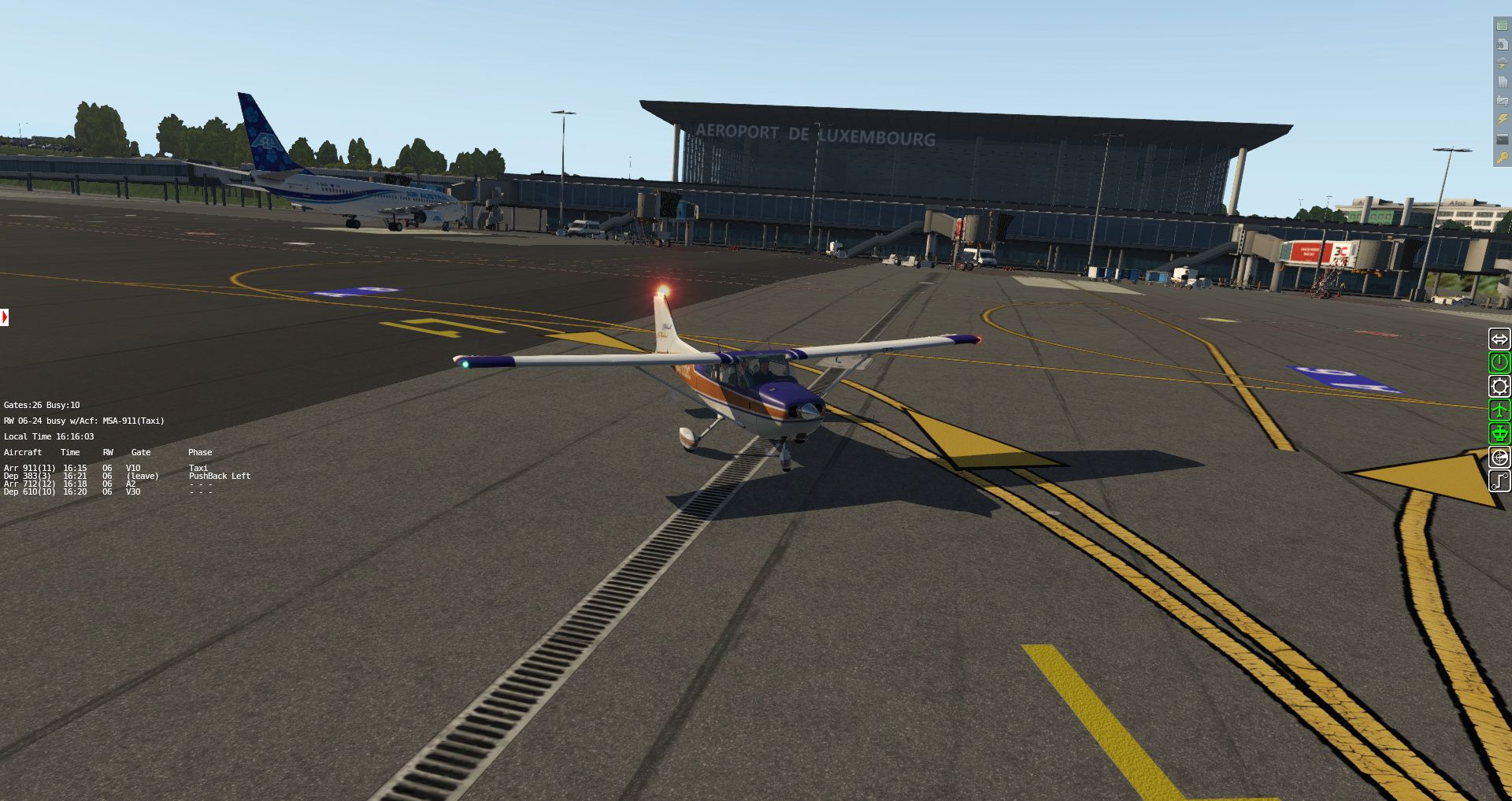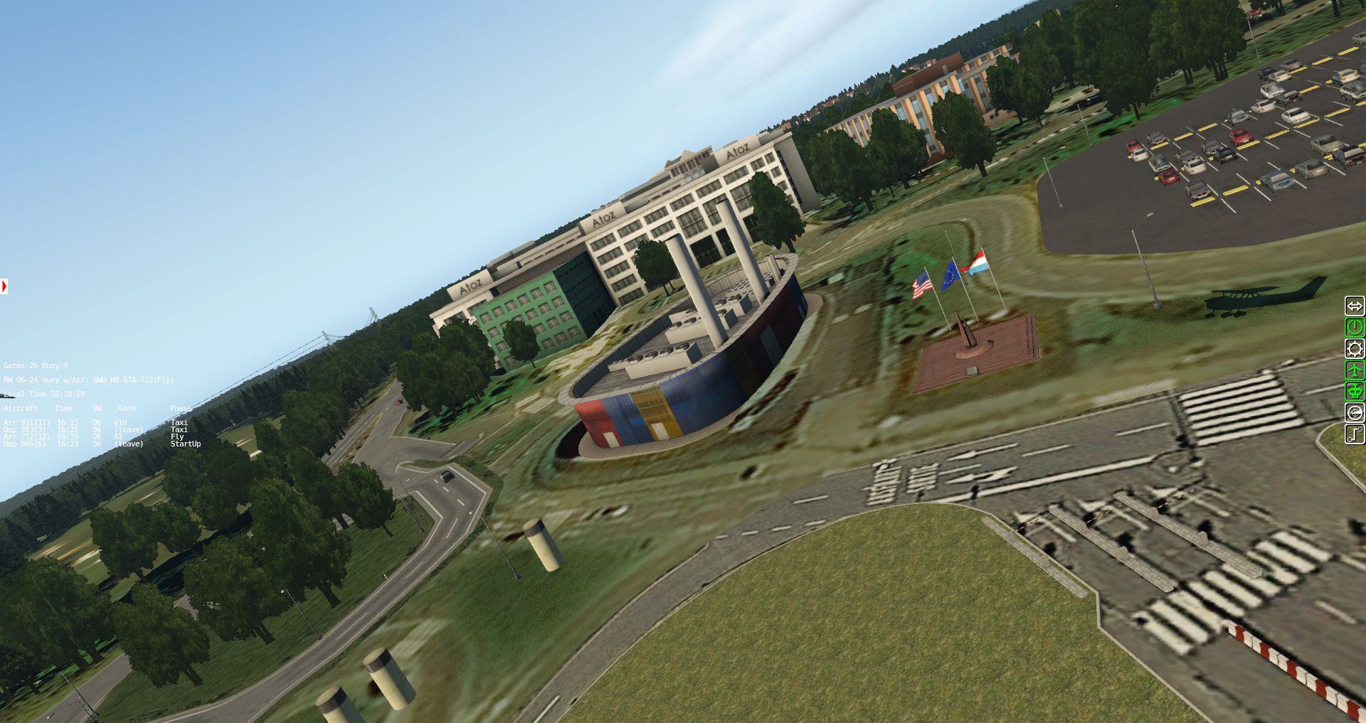 Eine recht interessante Anpassung des Flughafens an heutige Verhältnisse. Auf die Nutzung der Groundservices von X-Plane 11 hat man allerdings verzichtet, weil man bislang keine ausreichenden Möglichkeiten fand eigene Fahrzeuge in diese Dienste einzubinden.