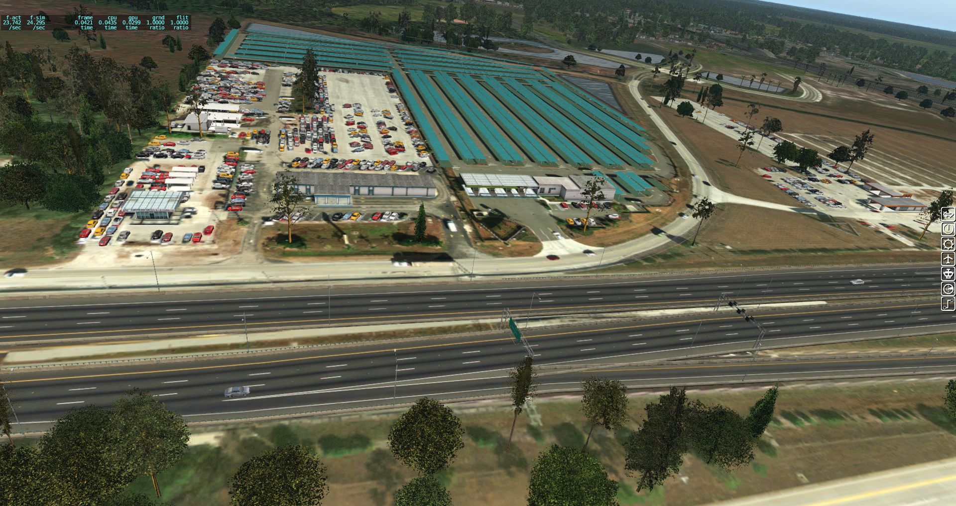 Etwas unter 20 FPS mit der Eclipse sind zwar nicht überragend aber für die Settings akzeptabel. Auch Servicefahrzeuge sind unterwegs und wie man an den kleinen Männchen sehen kann, auch hier tun AutoGates ihren Dienst.