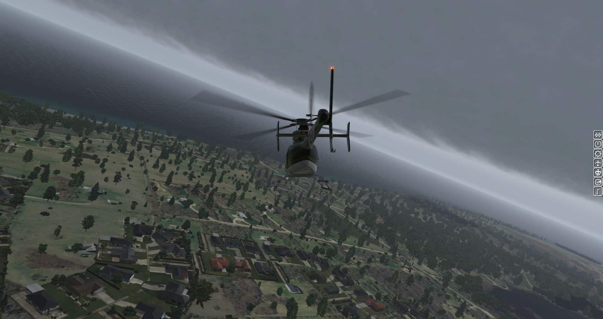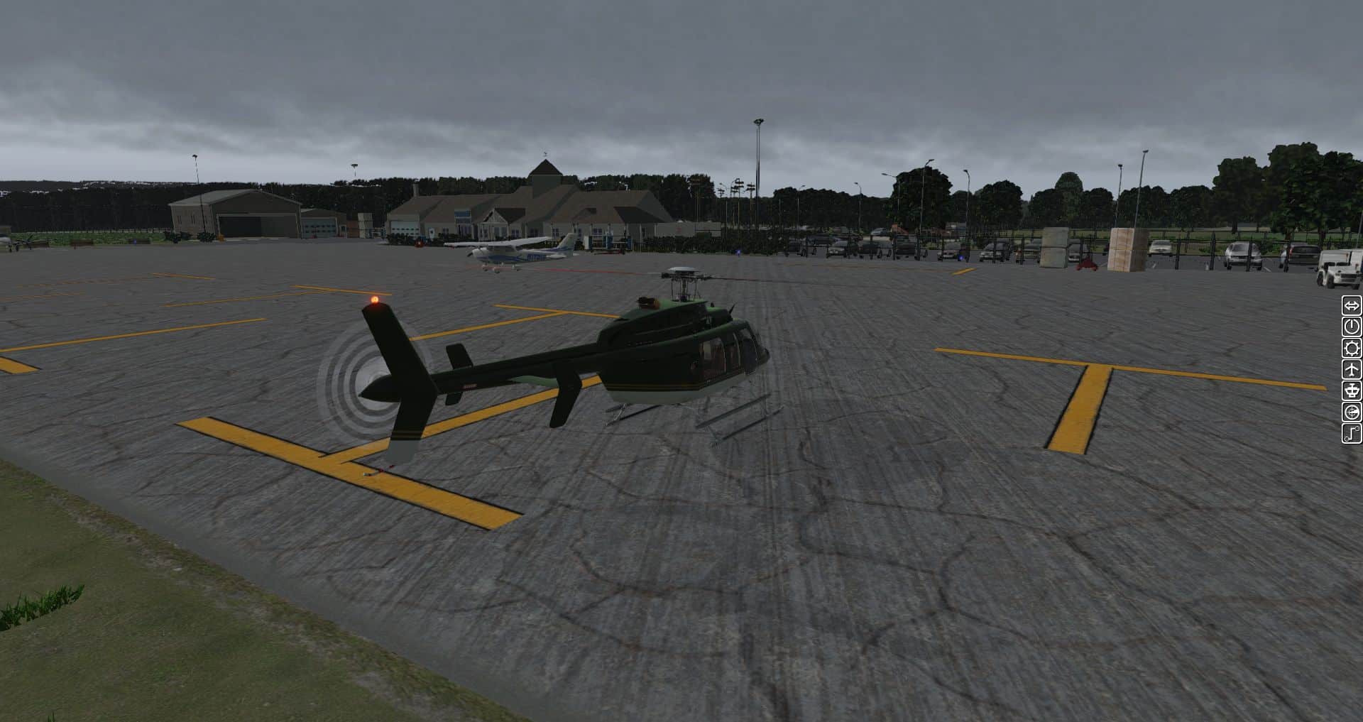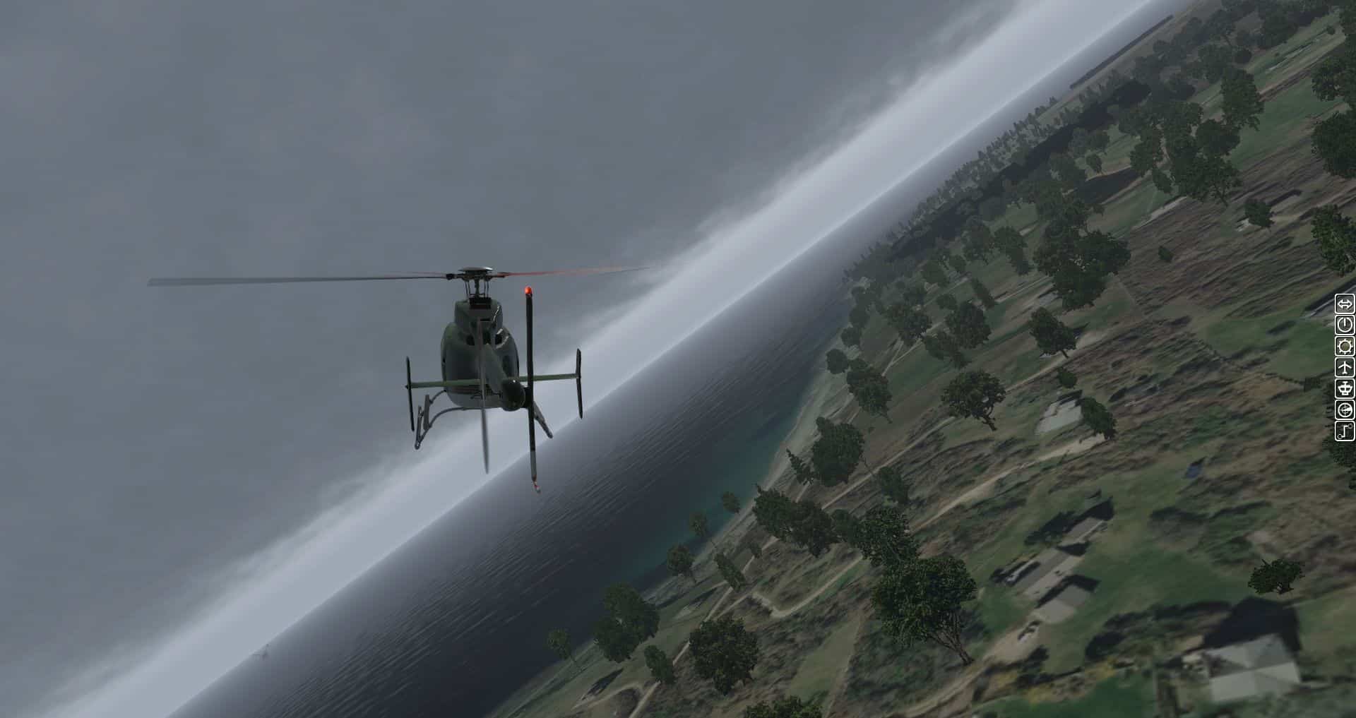 Und der Flug noch einmal als Video. Das unruhige Heck bitte ich zu entschuldigen. Der Testrechner hat bislang keine Ruderpedale zur Verfügung und die Z-Achse eines Joysticks ist bekanntlich etwas ungenau. Für bessere Helikopter sind Ruderpedale dringend anzuraten.