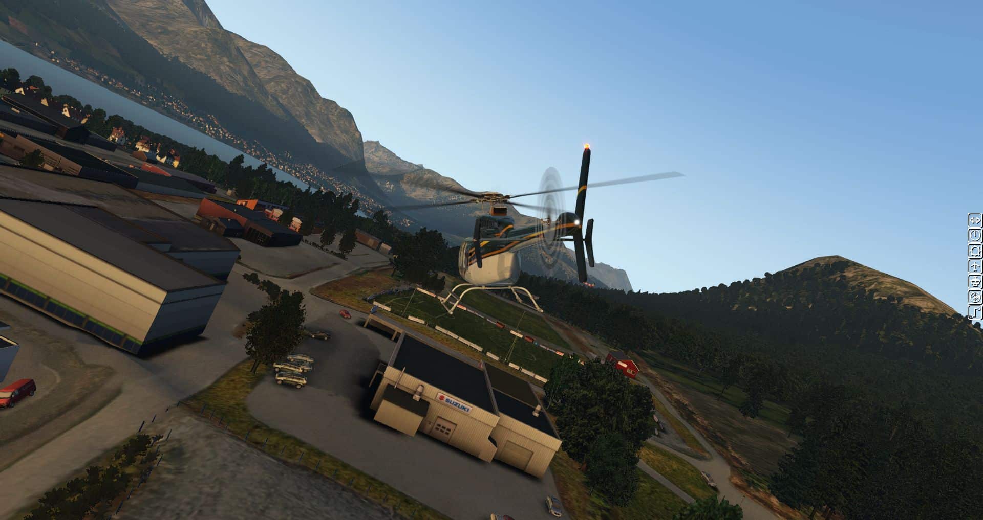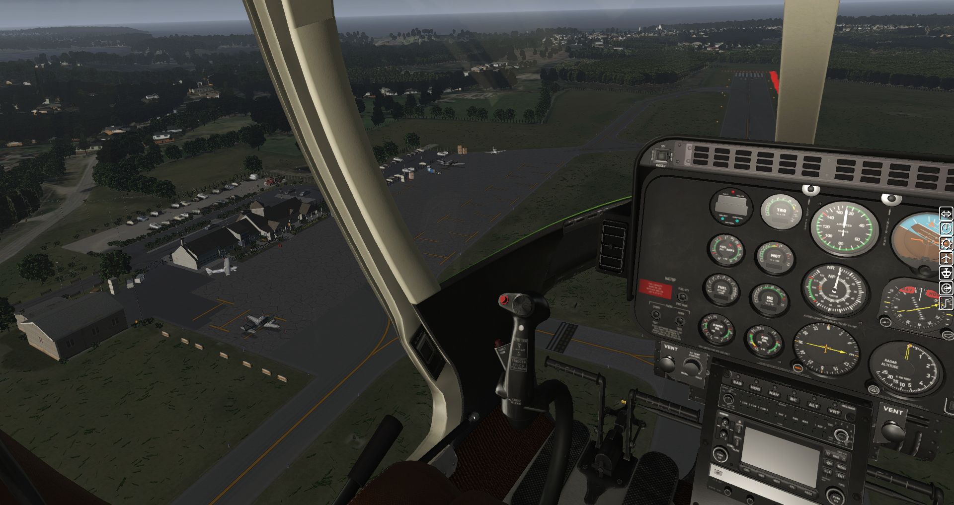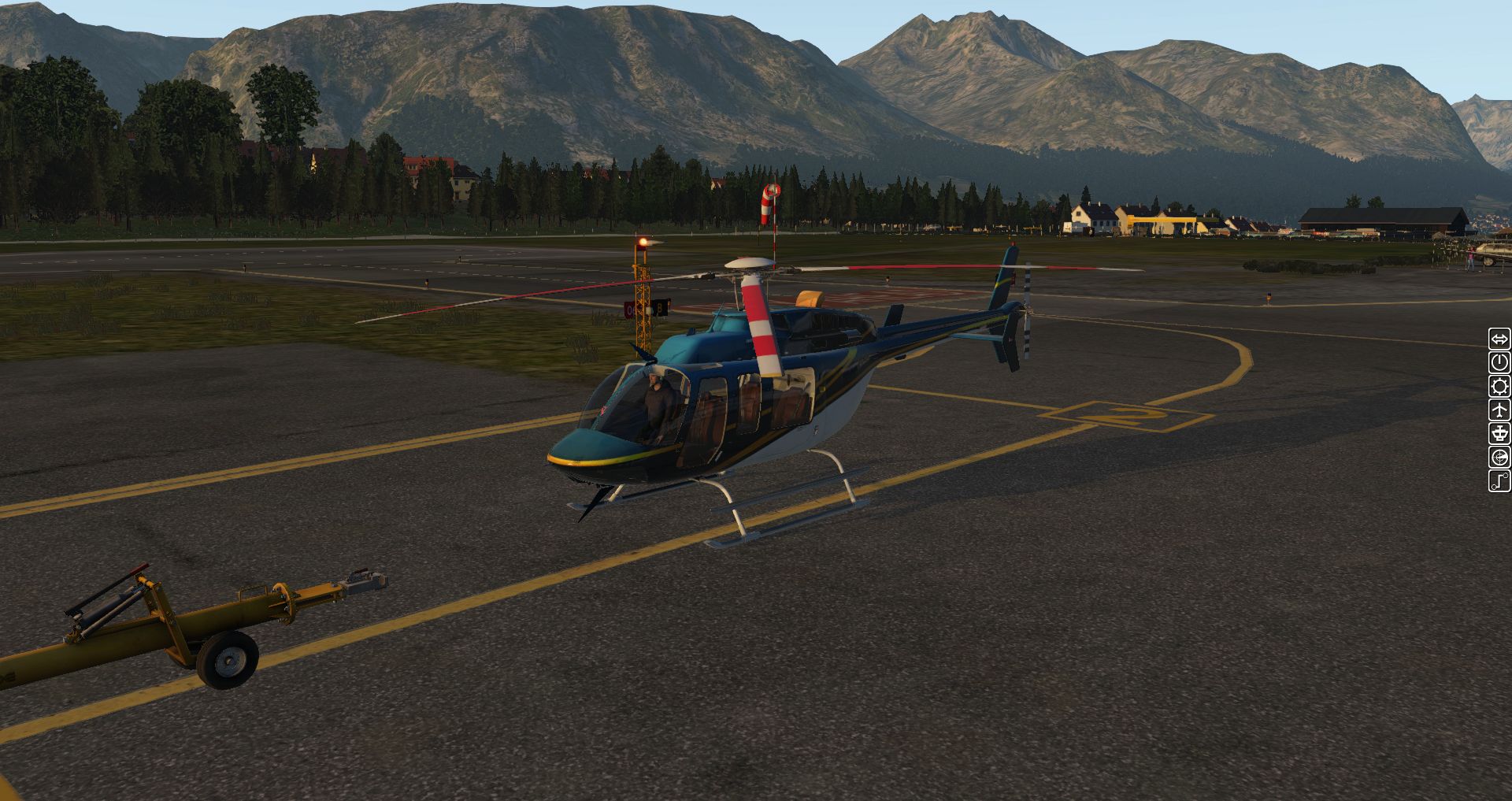 Wir starten wieder mit einer Bell 407. Die Bodentexturen sind mal wieder nicht die Stärke von Pilot Plus. Das Gras sieht ebenfalls nicht toll aus, ist aber immerhin performant.