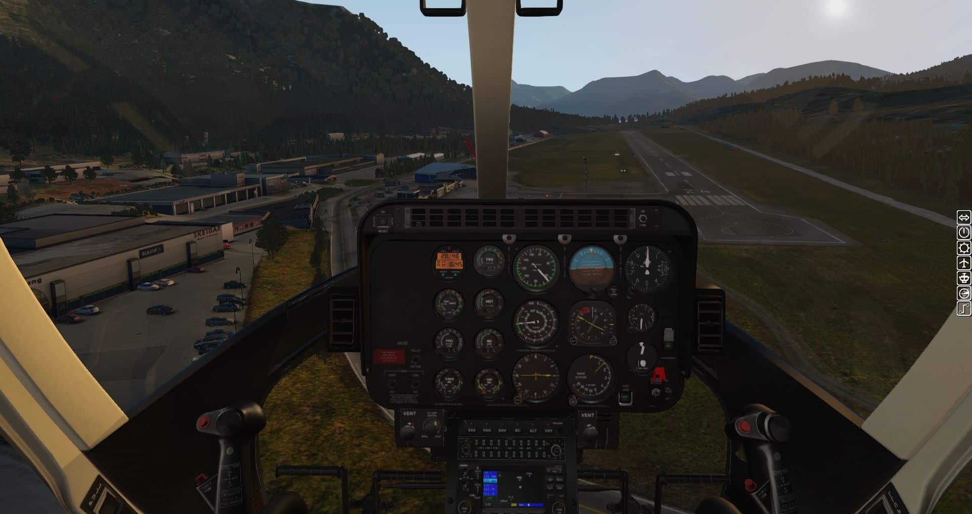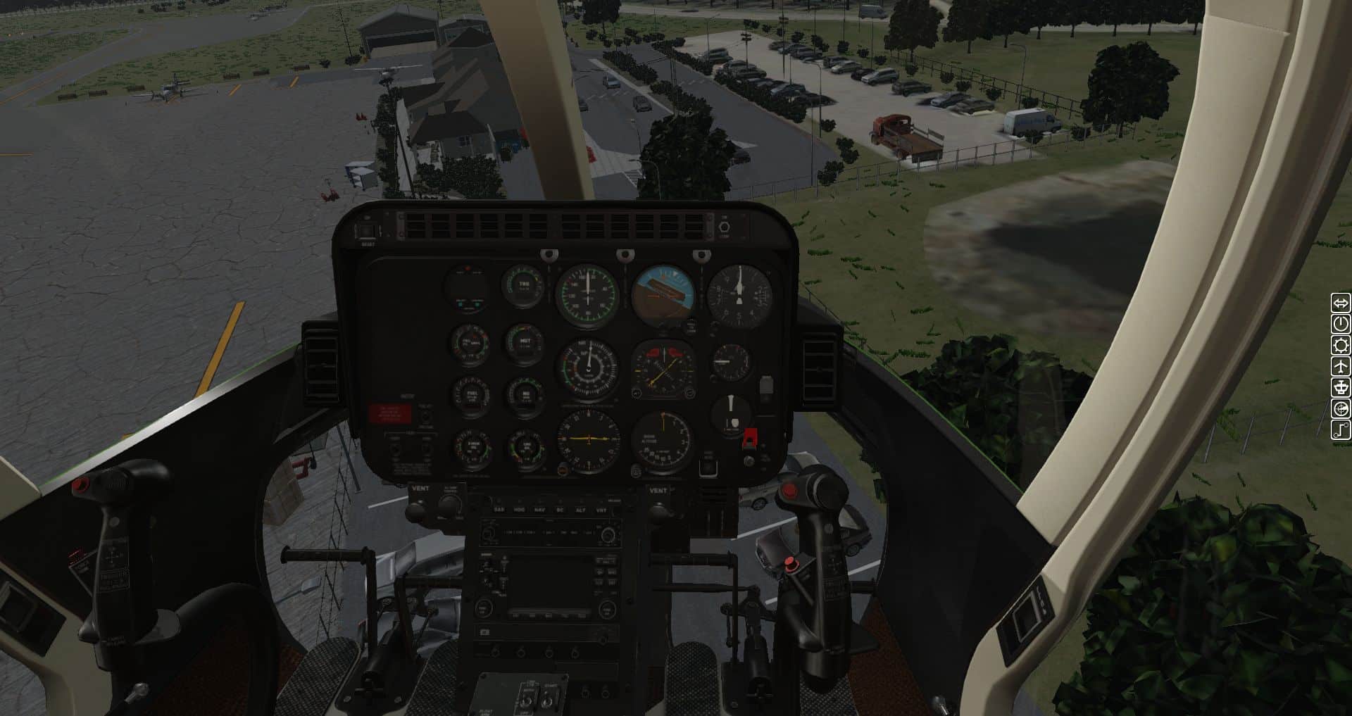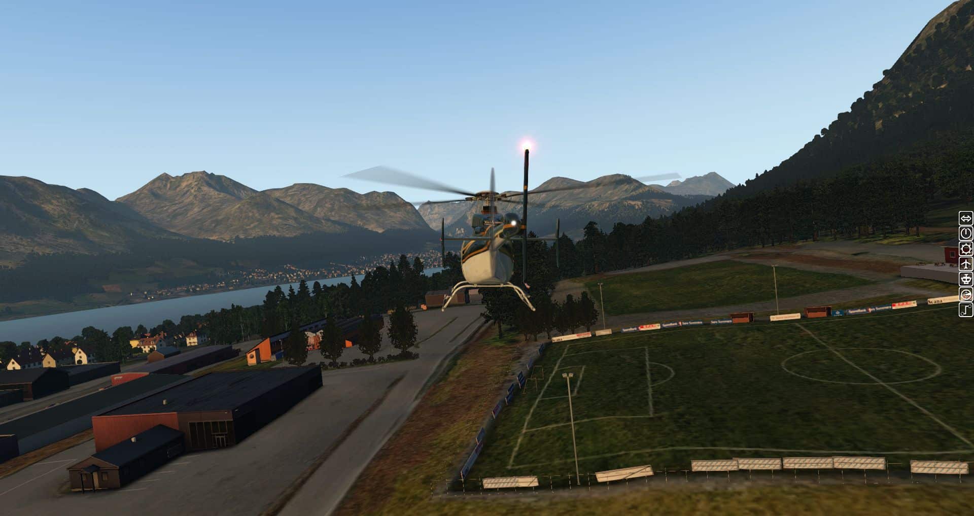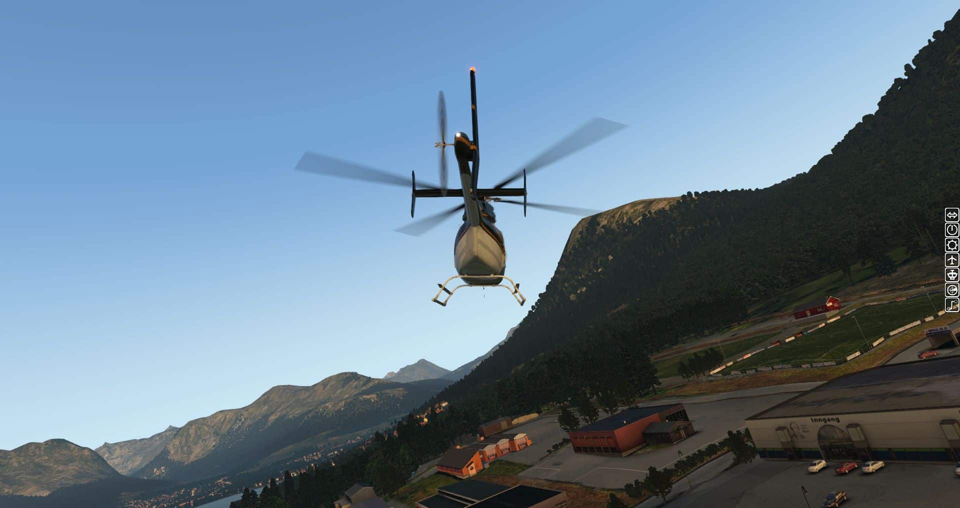 Wir starten wieder mit einer Bell 407. Die Bodentexturen sind mal wieder nicht die Stärke von Pilot Plus. Das Gras sieht ebenfalls nicht toll aus, ist aber immerhin performant.