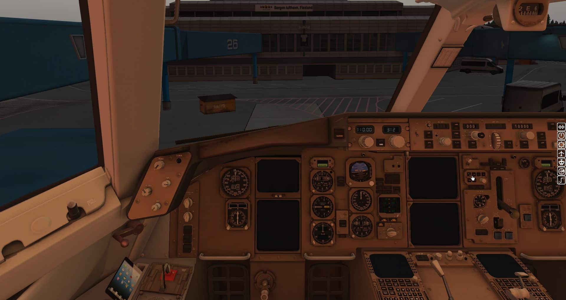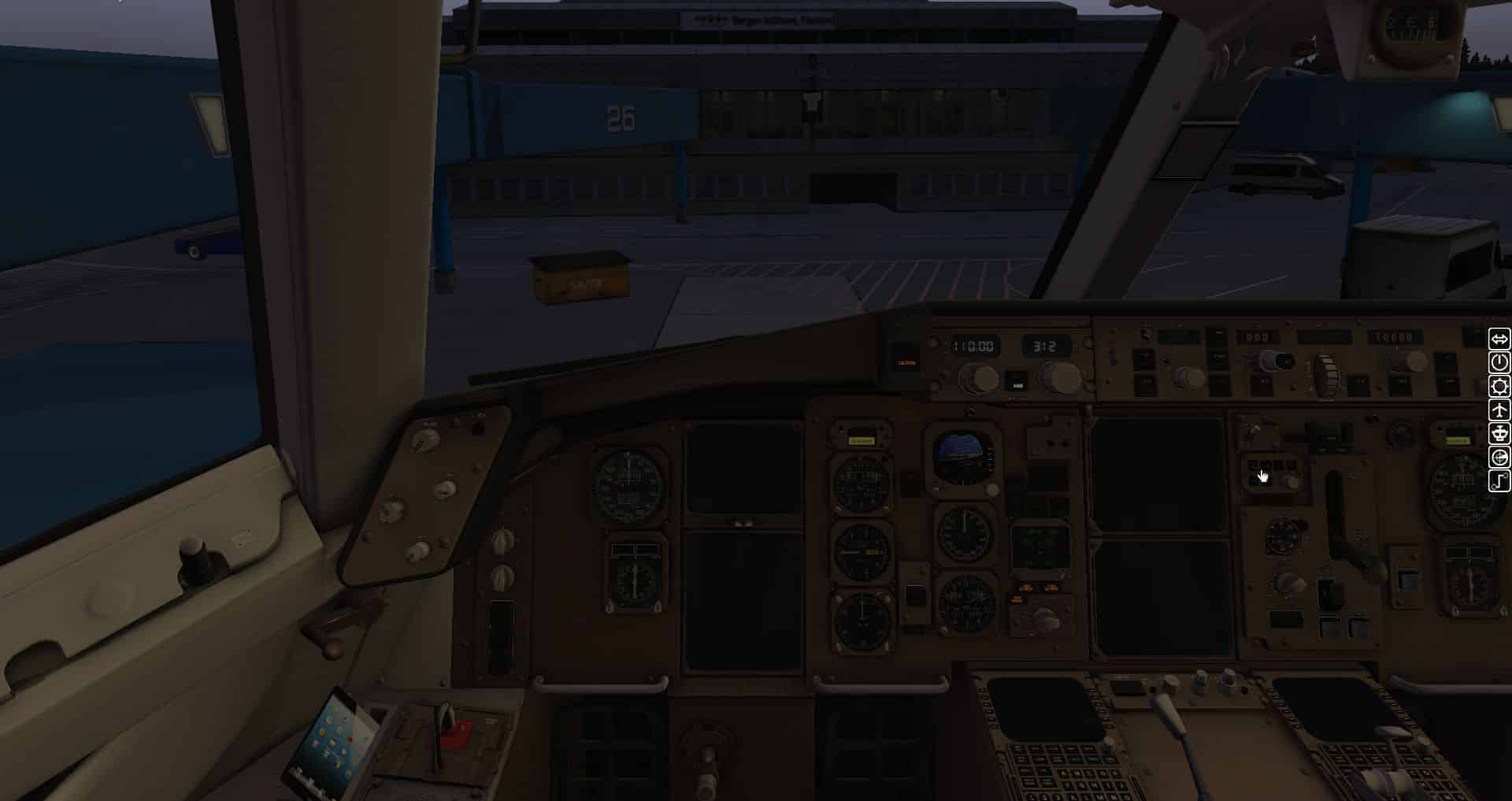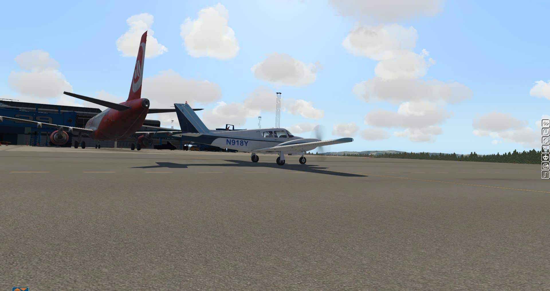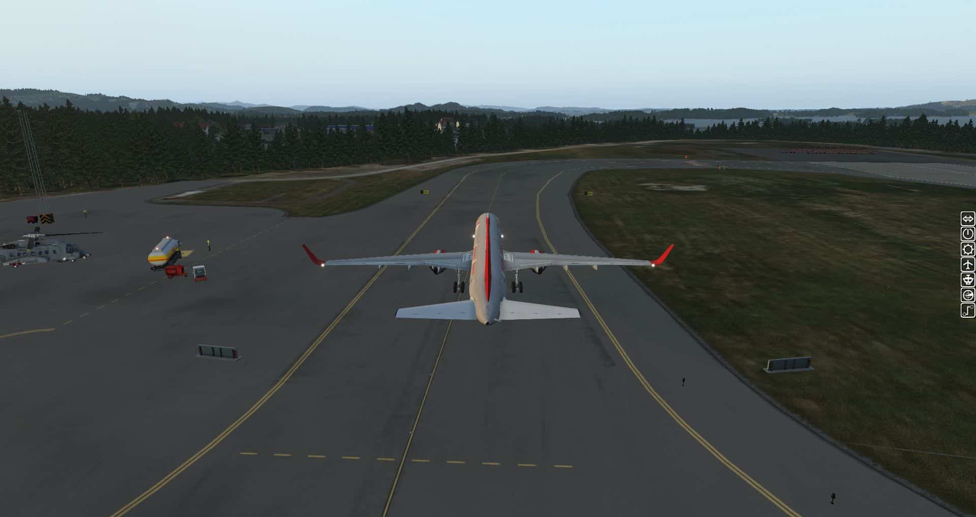 Wenn wir uns ein wenig auf dem Flughafen umsehen, bemerken wir die statischen Flugzeuge, die X-Plane 11 an den Standplätzen aufgebaut hat. Ebenso wie die üblichen Bodenfahrzeugen die ihre Runden fahren. Wie bei Oslo, gibt es auch hier ein Tool mit dem man zwischen lokalen und globalen Bodenfahrzeugen umschalten kann.