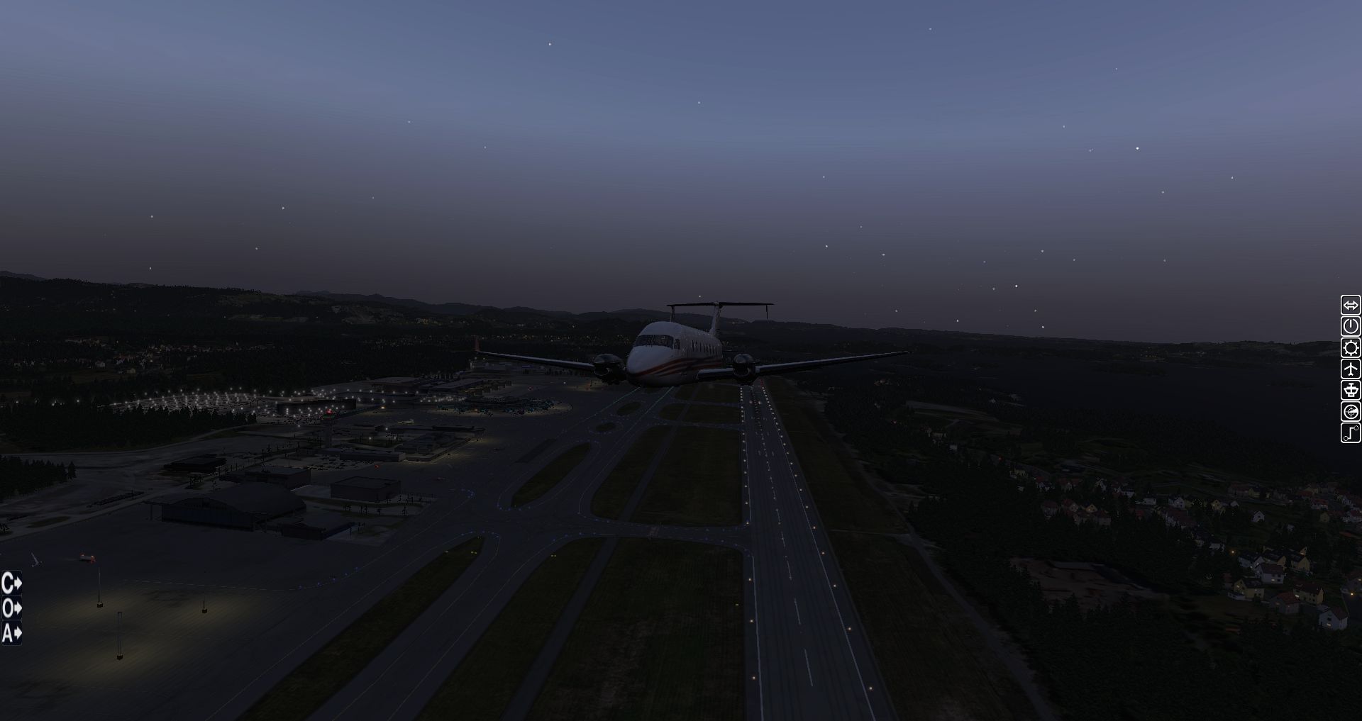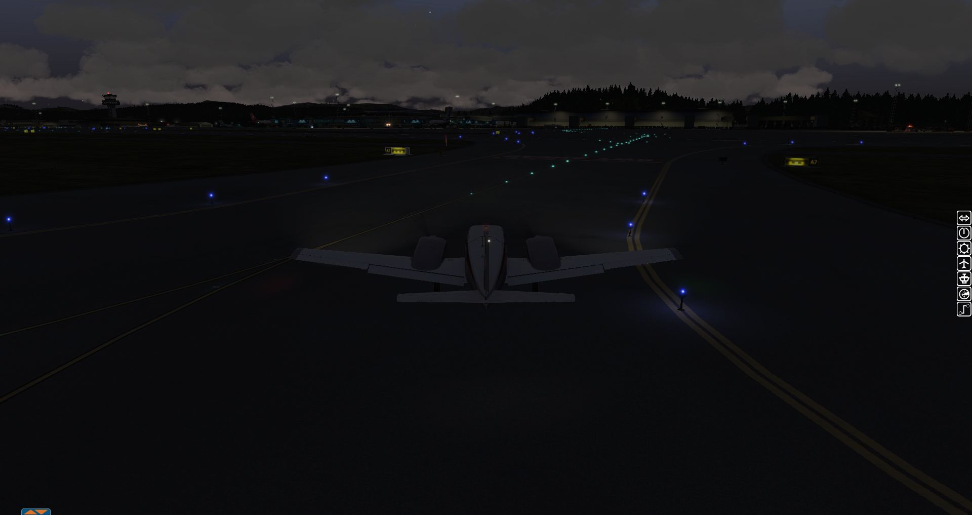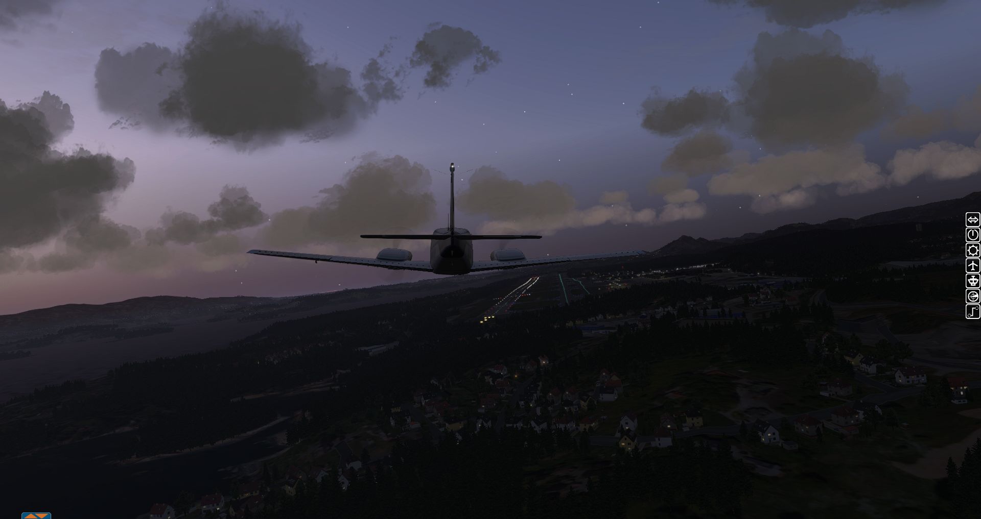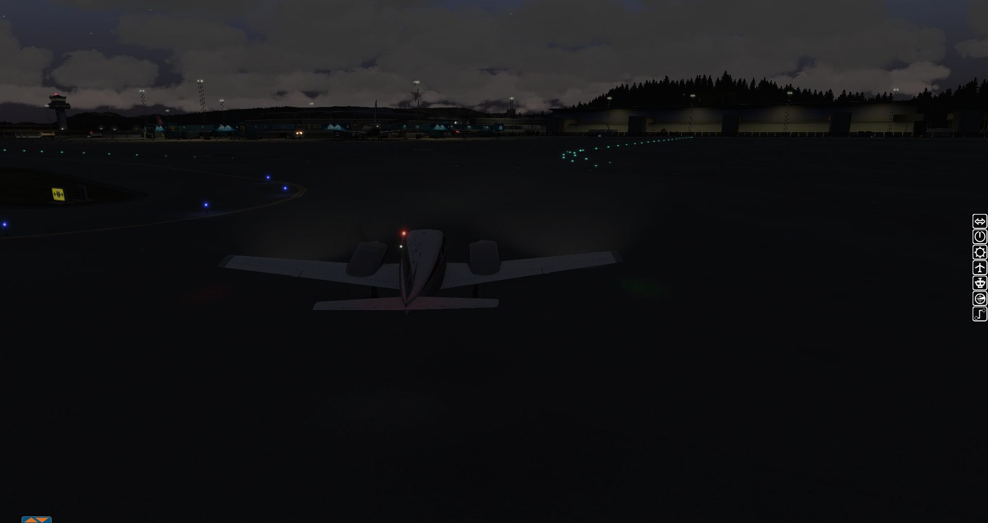 Der Flughafen Bergen wäre zwar ohne Einbußen auch unter X-Plane 10.50 schon einsatzfähig, doch auch er spielt mit den Lichtquellen, ohne damit die Performance zu schmälern.