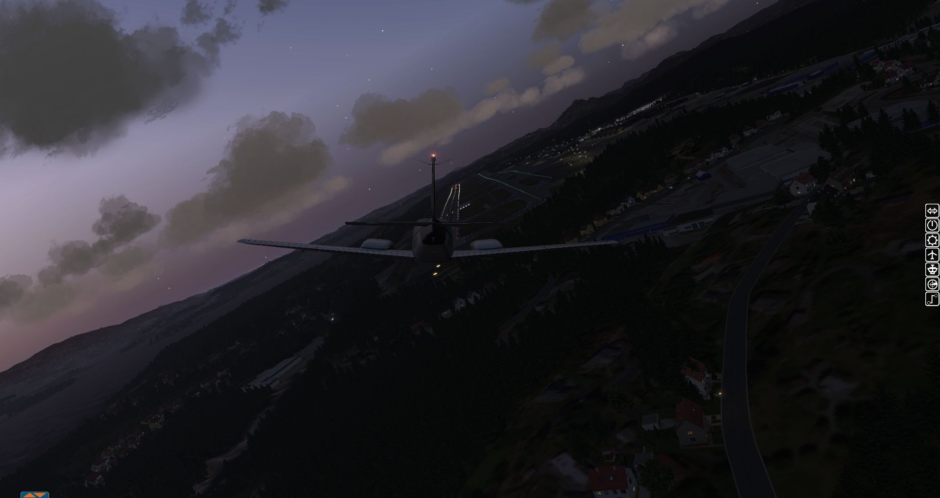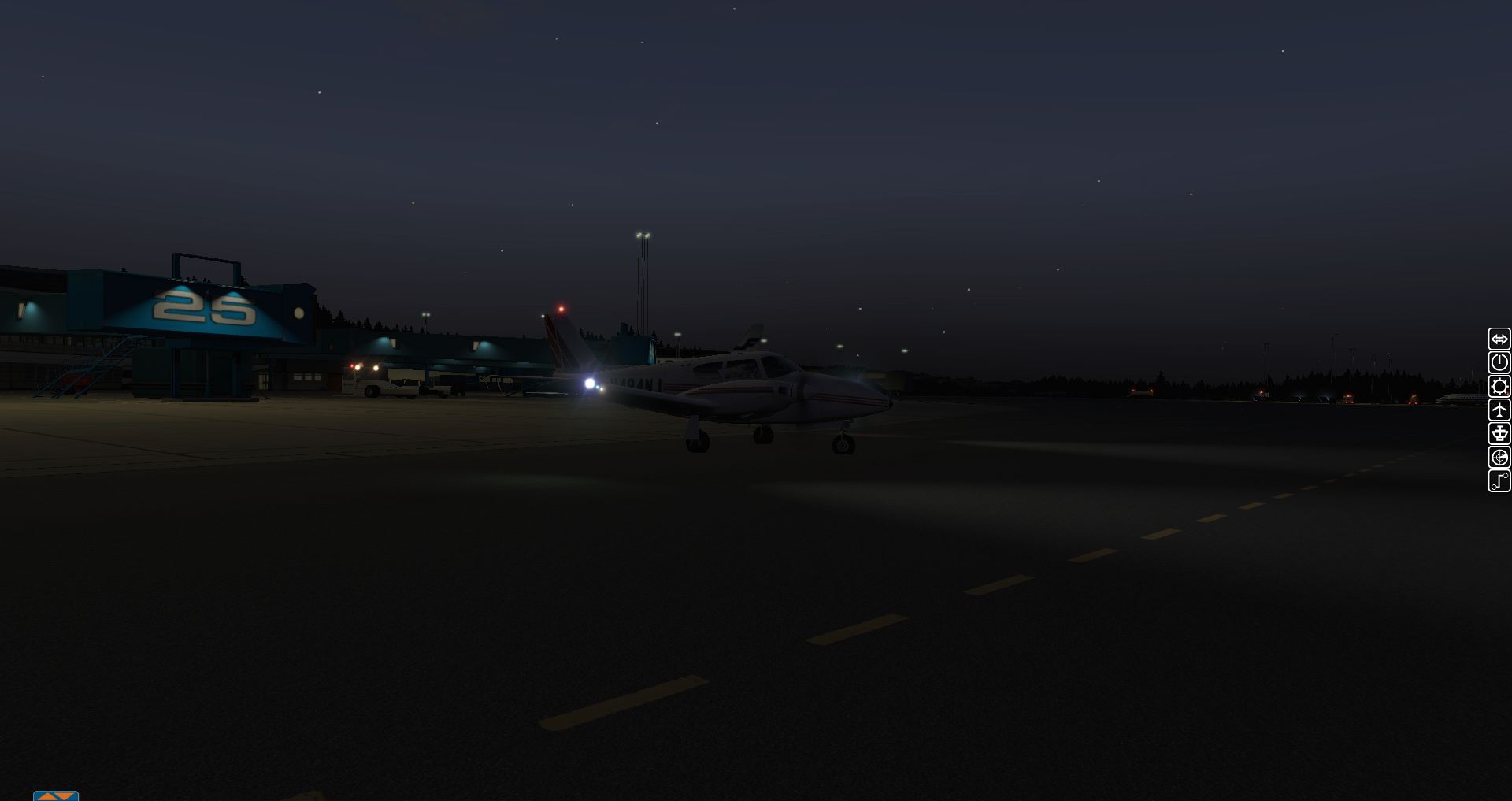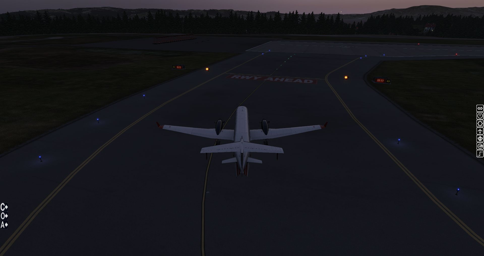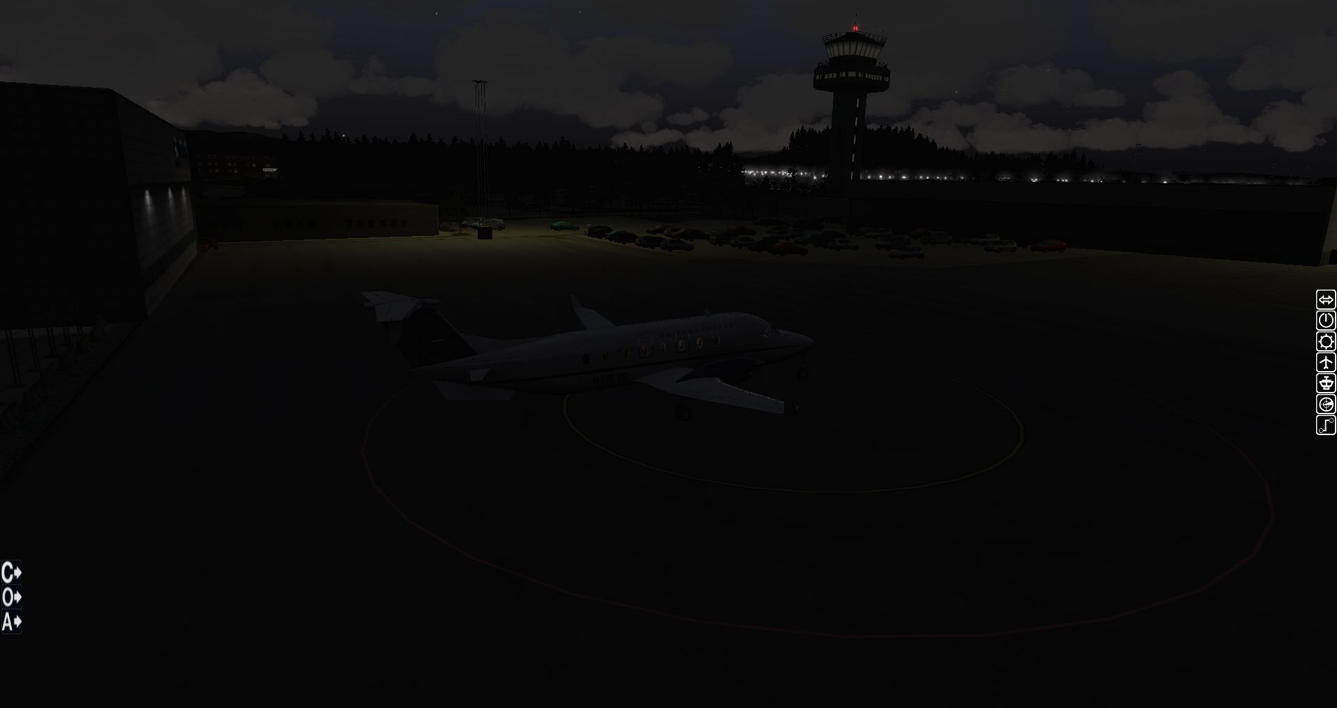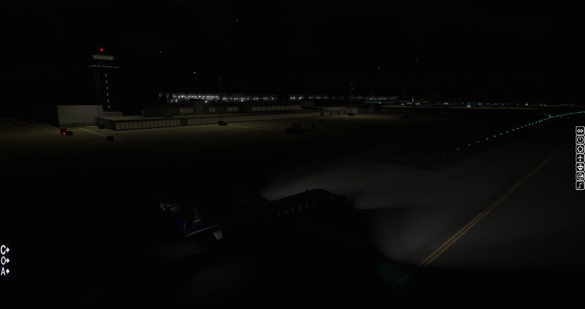 Der Flughafen Bergen wäre zwar ohne Einbußen auch unter X-Plane 10.50 schon einsatzfähig, doch auch er spielt mit den Lichtquellen, ohne damit die Performance zu schmälern.