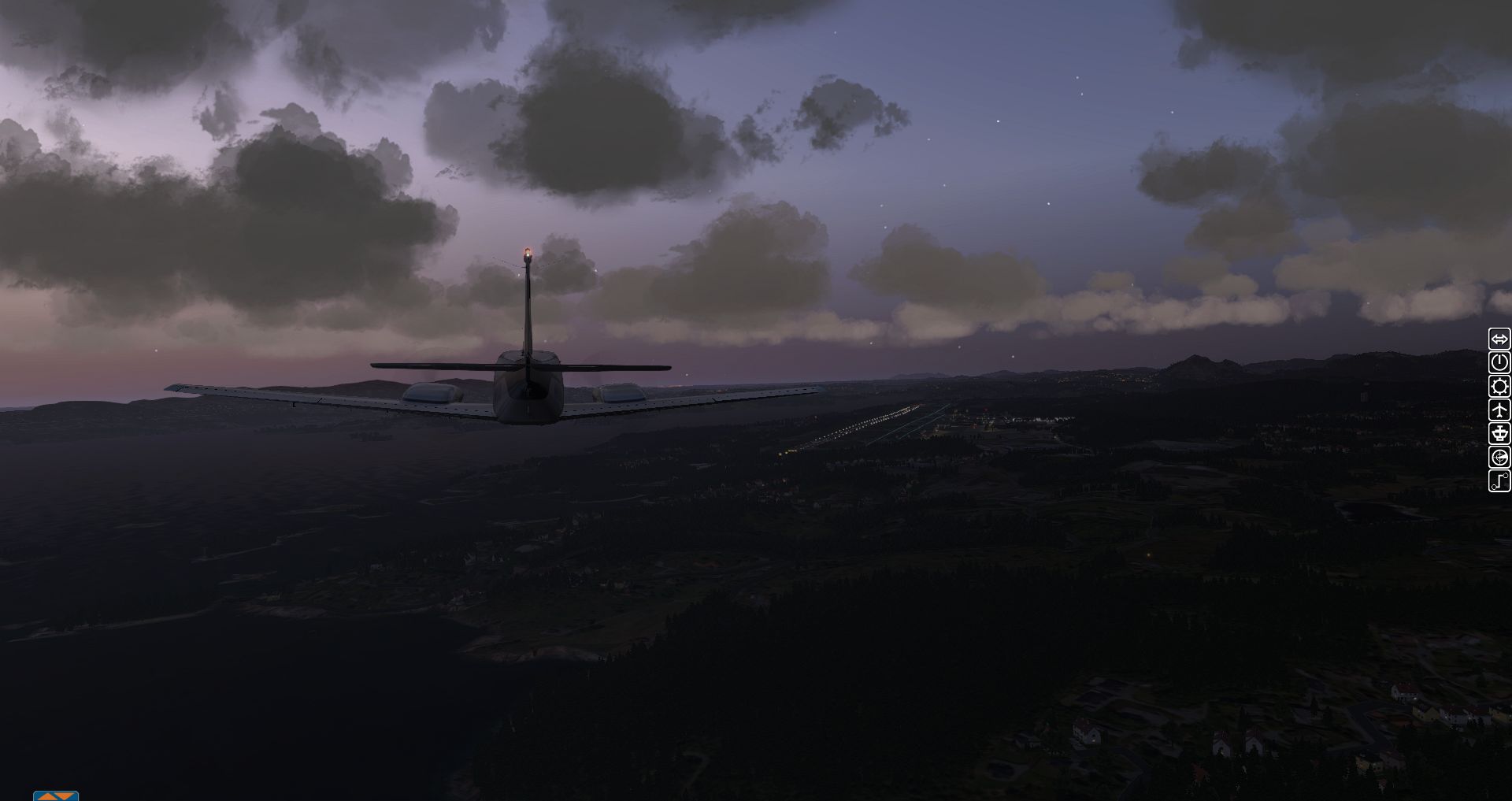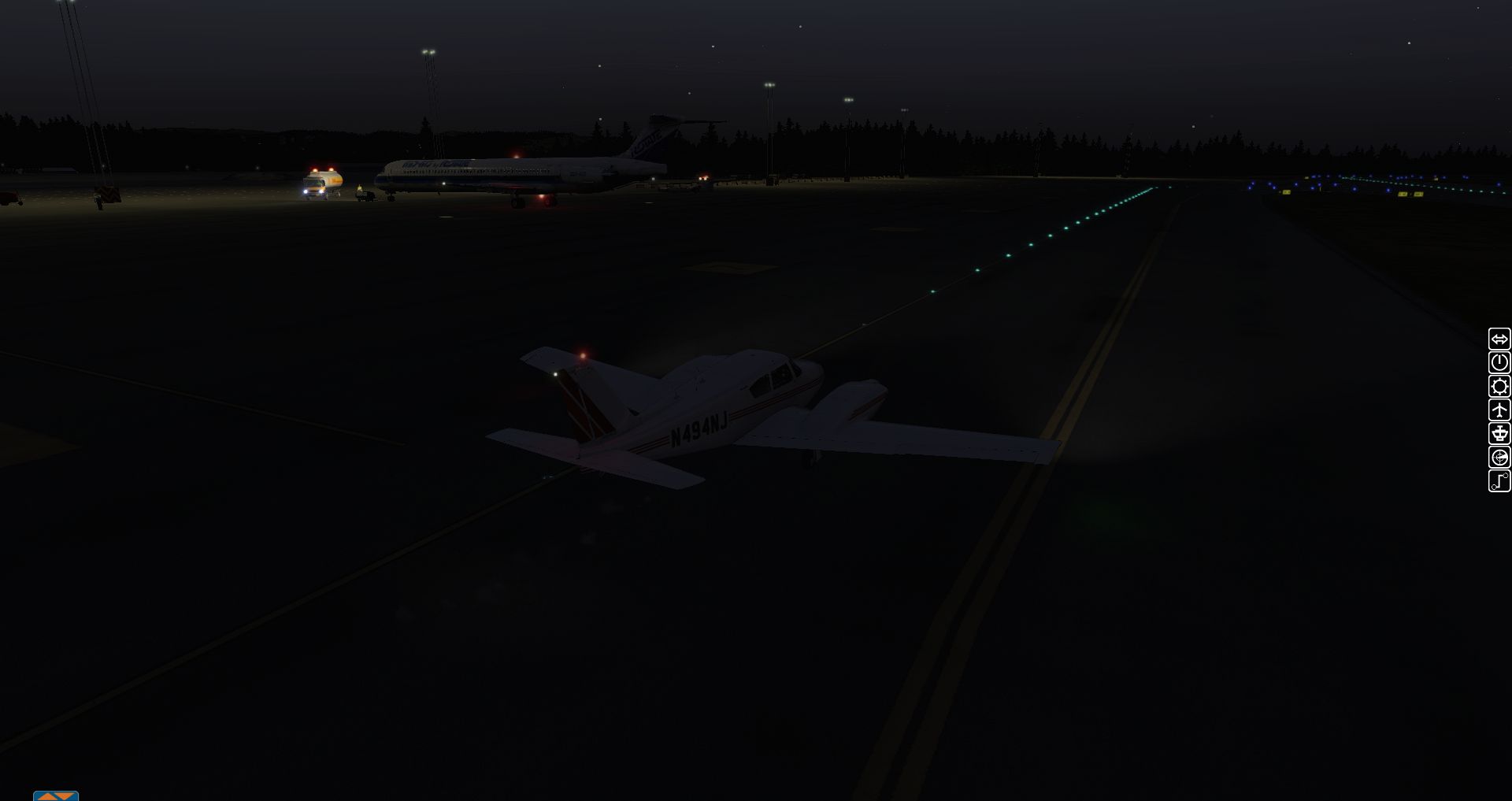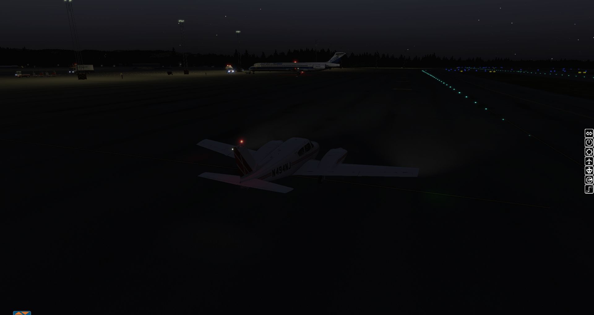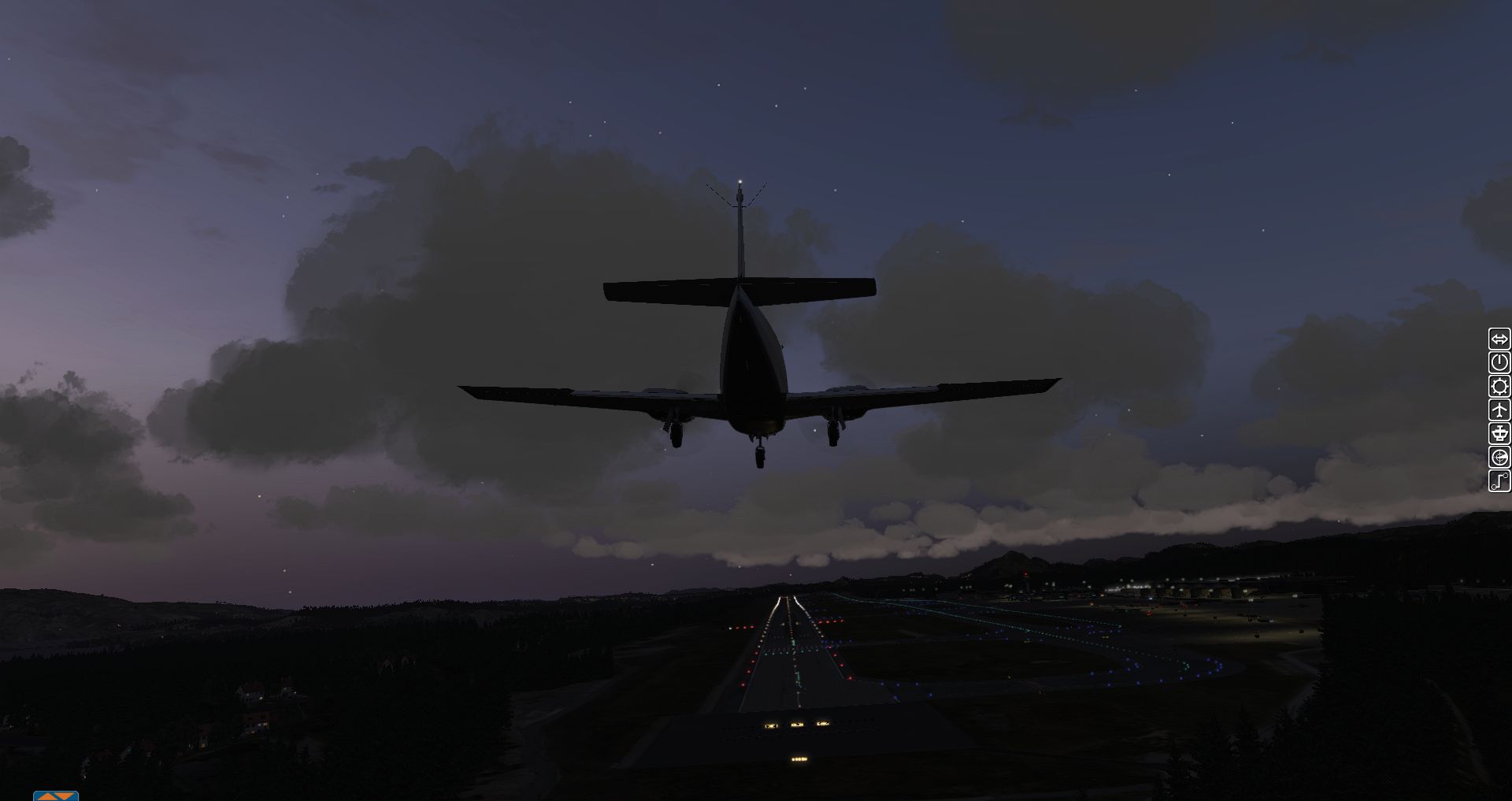 Der Flughafen Bergen wäre zwar ohne Einbußen auch unter X-Plane 10.50 schon einsatzfähig, doch auch er spielt mit den Lichtquellen, ohne damit die Performance zu schmälern.