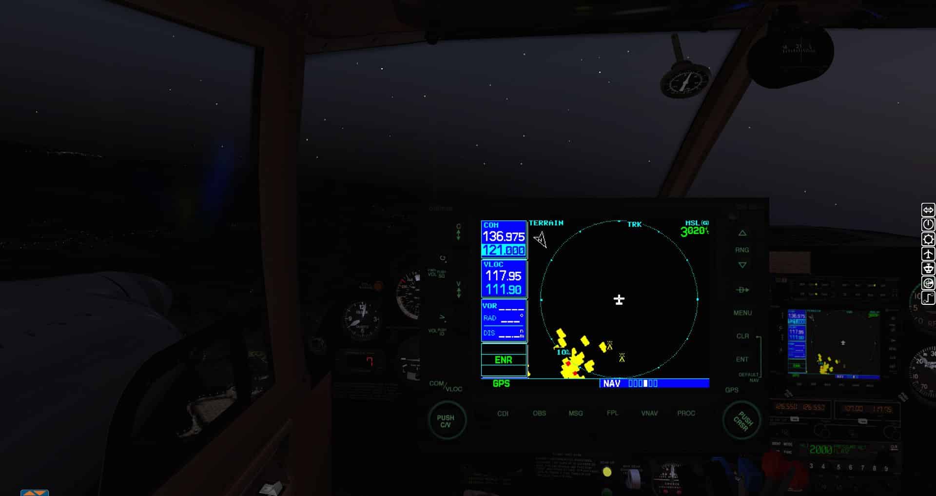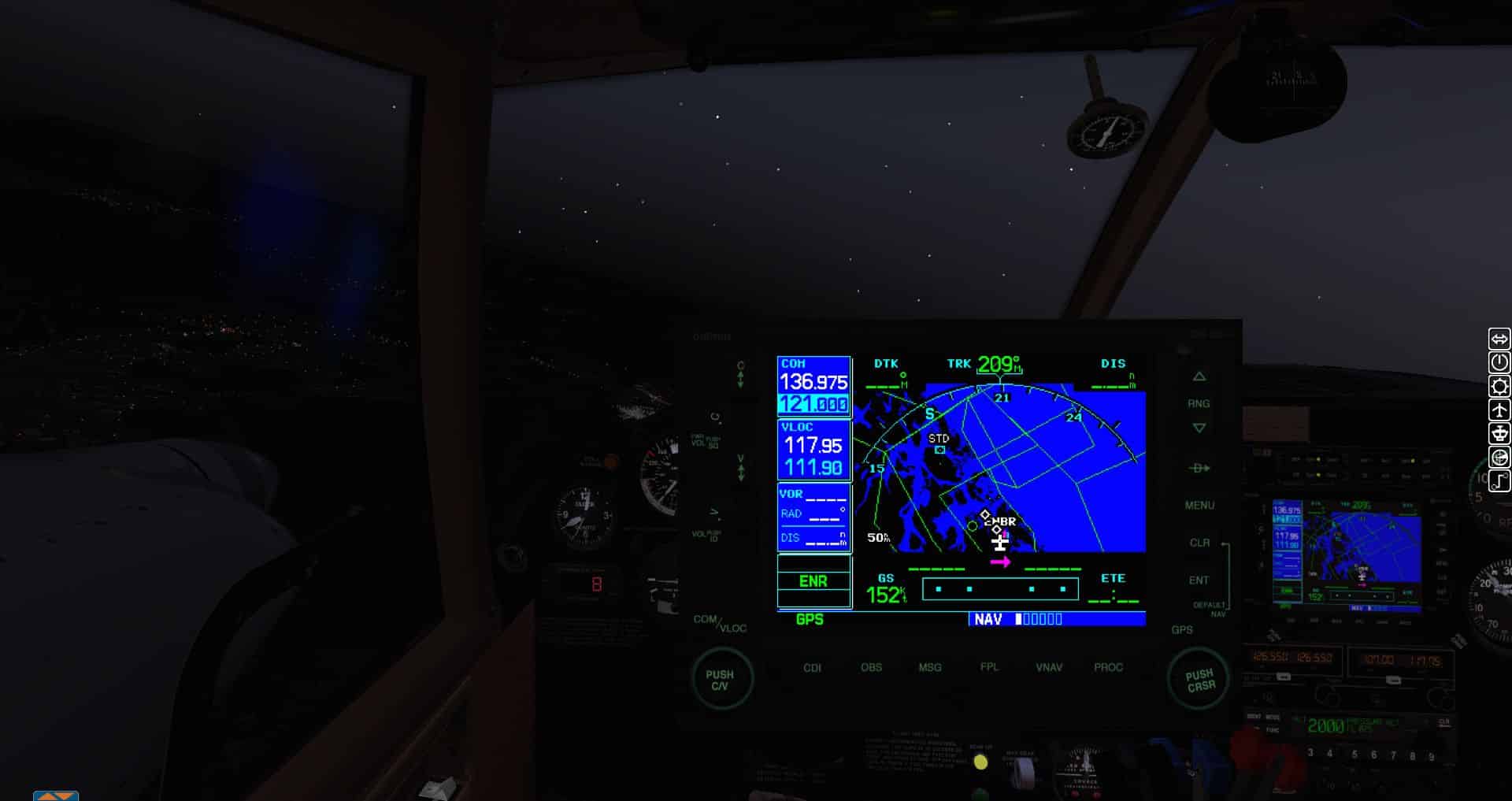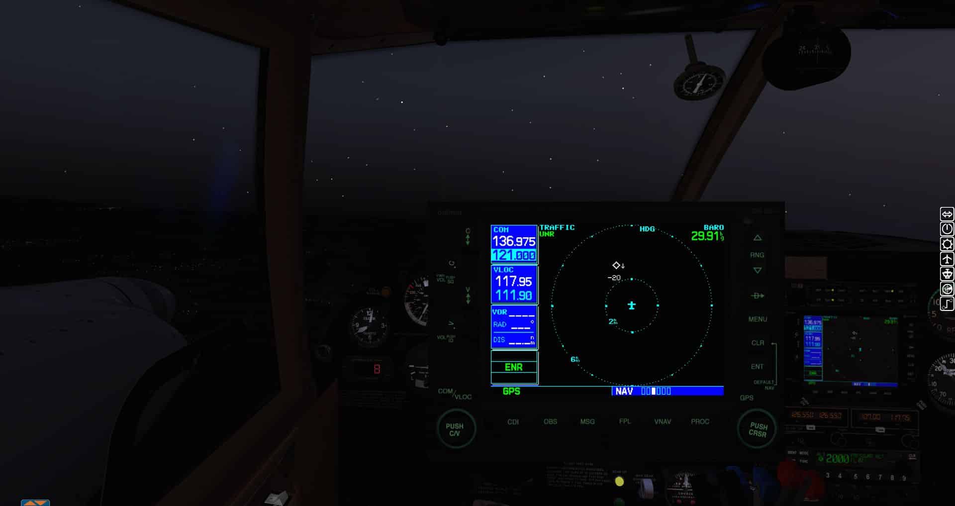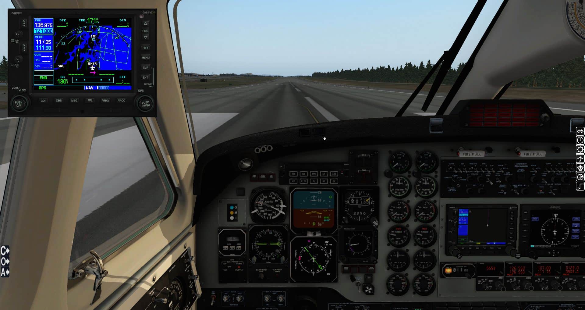 Und wie fast jedes andere Instrument in der Twin Comanche, kann man auch von diesen GPS durch einfaches Anklicken eine vergrößerte Darstellung bekommen, über die man das Instrument auch bedienen kann.